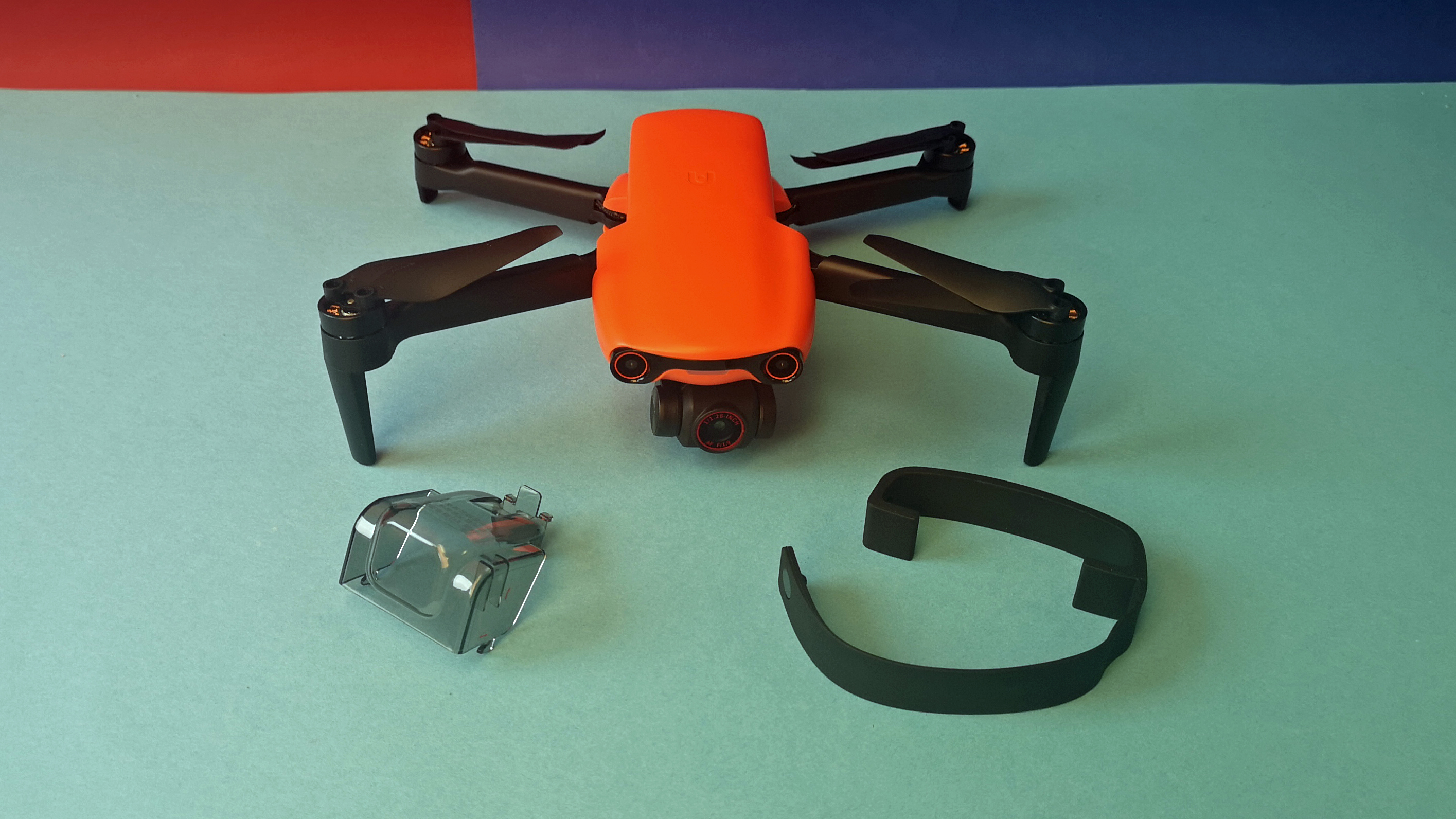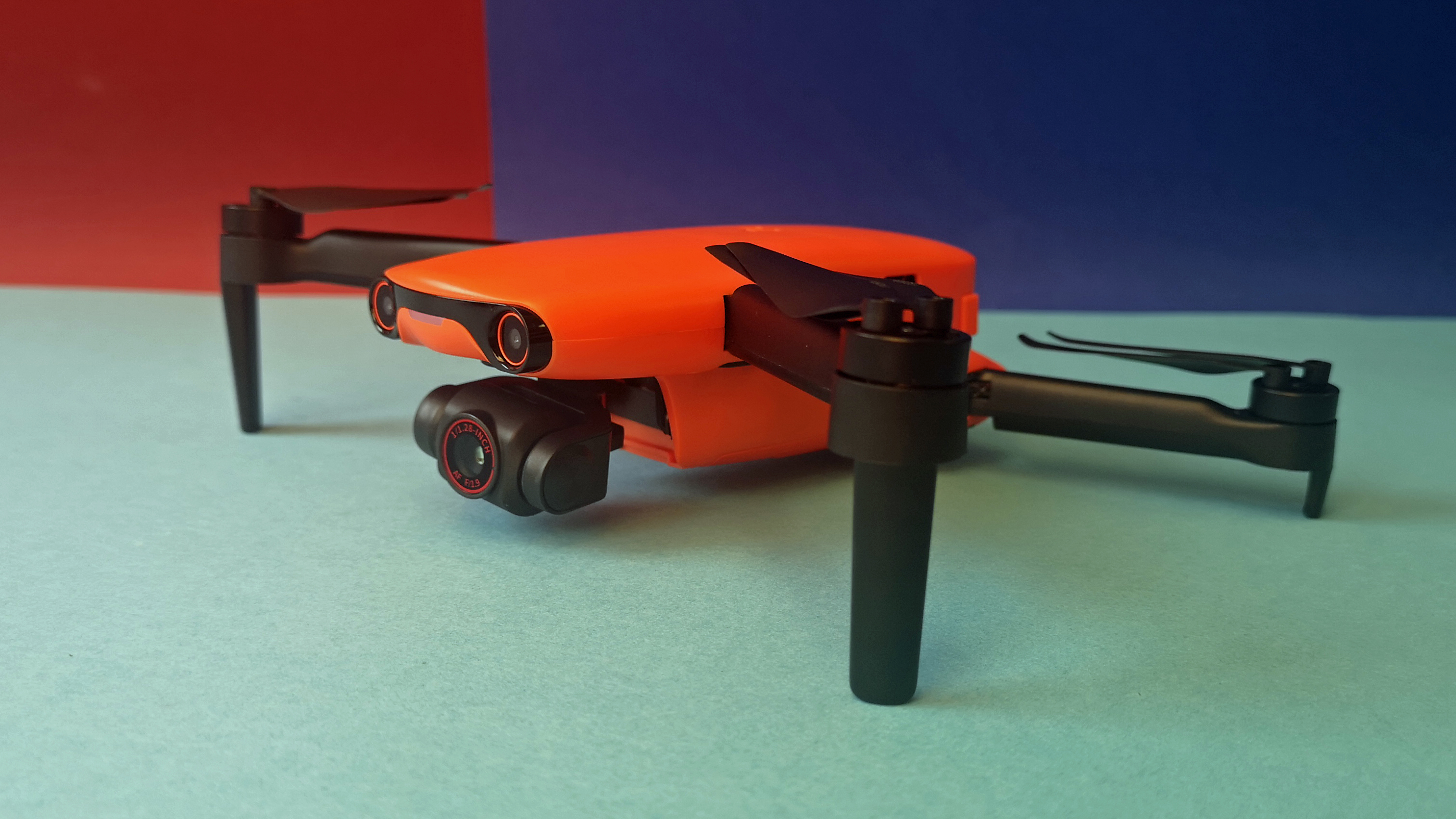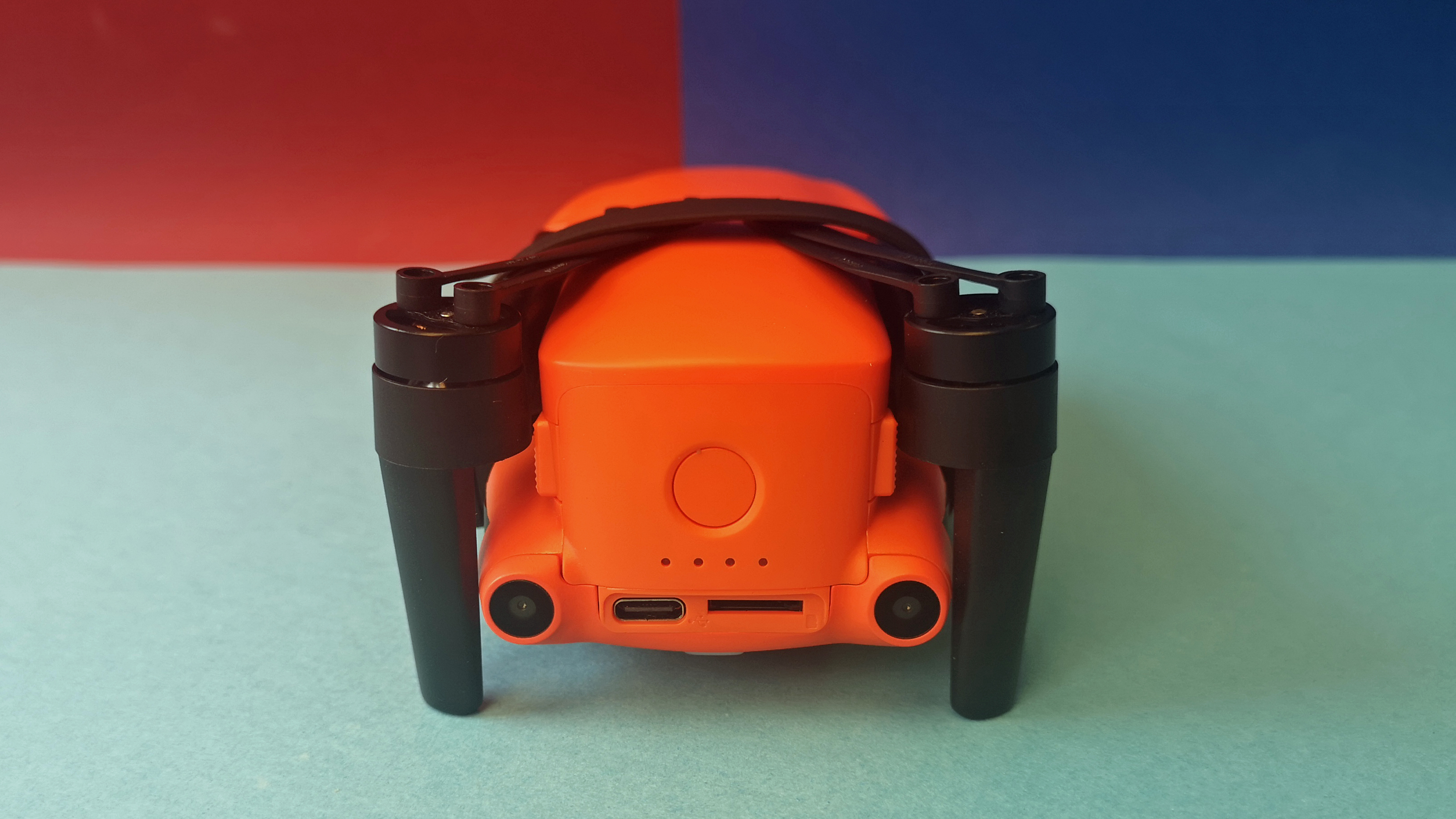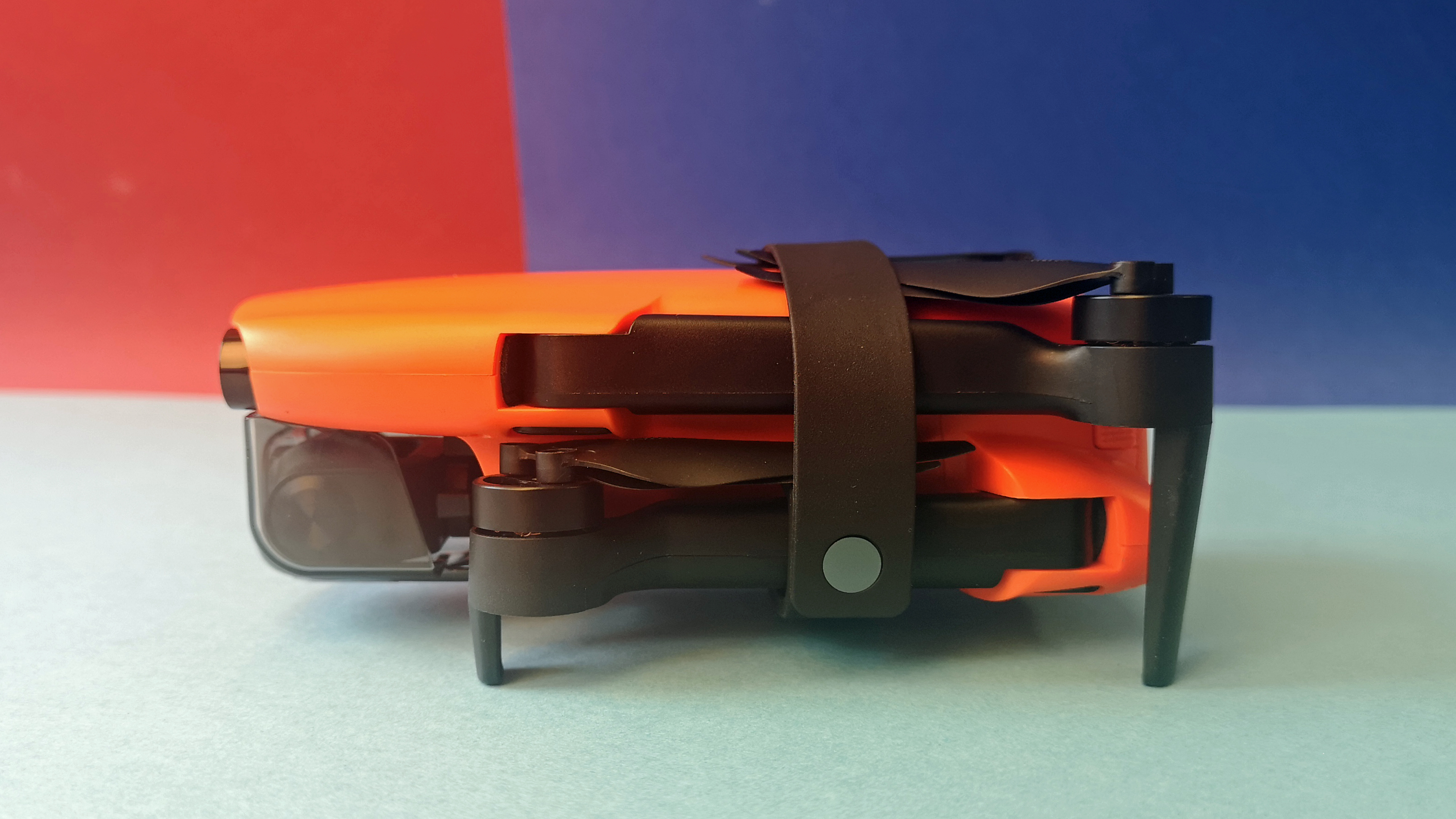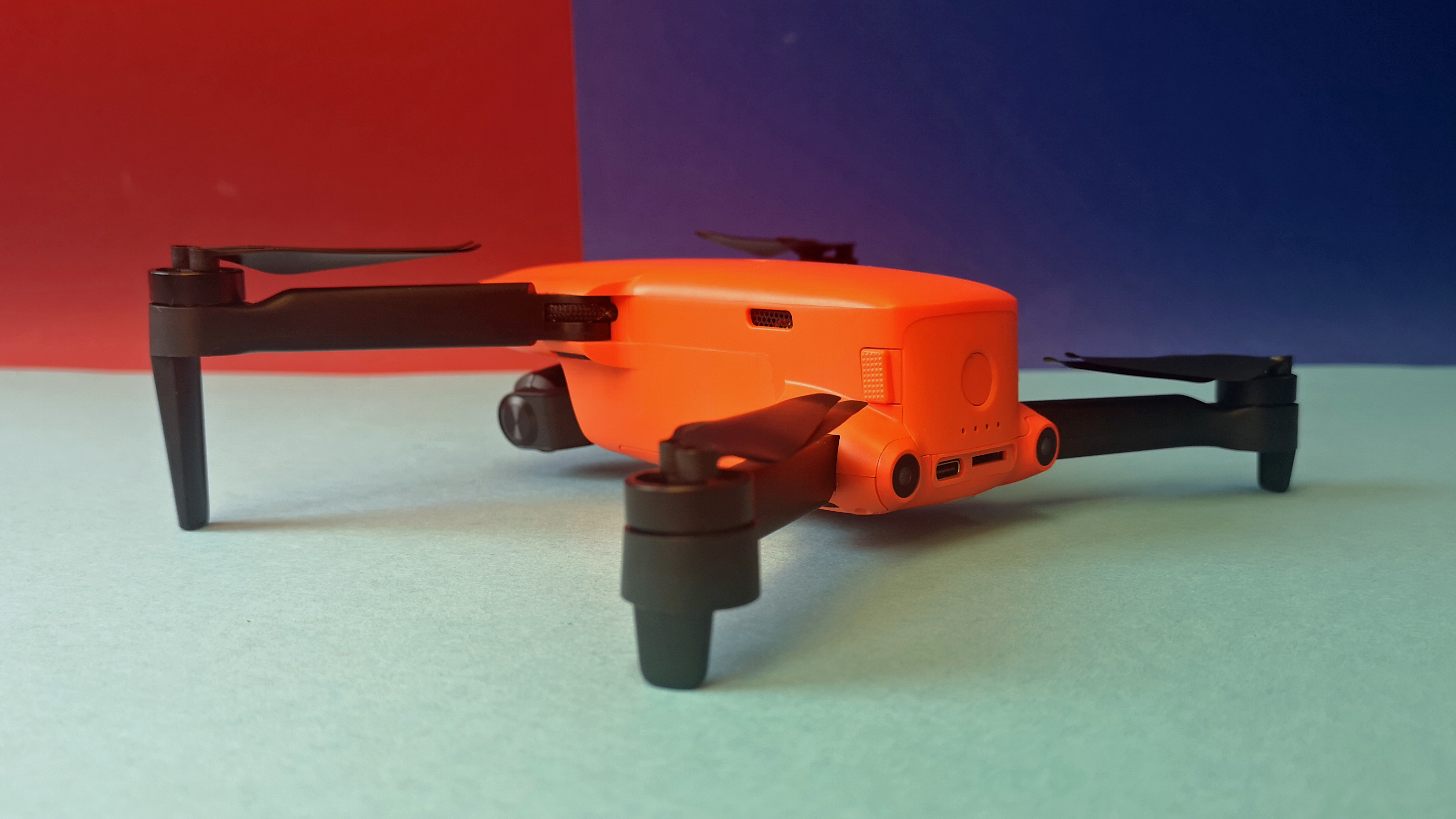 Zusammengefaltet misst die Evo Nano Plus gerade einmal 14 x 9 x 6 cm, auseinandergeklappt ist die Drohne dann knapp 26 x 33 x 6 cm groß und damit vergleichbar zur Mavic-Mini-Serie von DJI. Das Gewicht ist mit 249 g identisch zur Konkurrenz. Die Verarbeitung unseres Modells ist tadellos, das Modell ist zwar leicht und filigran, aber trotzdem stabil und verwindungssteif. Der glänzend glatte, orange Kunststoff wirkt im Vergleich zur rauen Oberfläche einer Mavic weniger hochwertig.