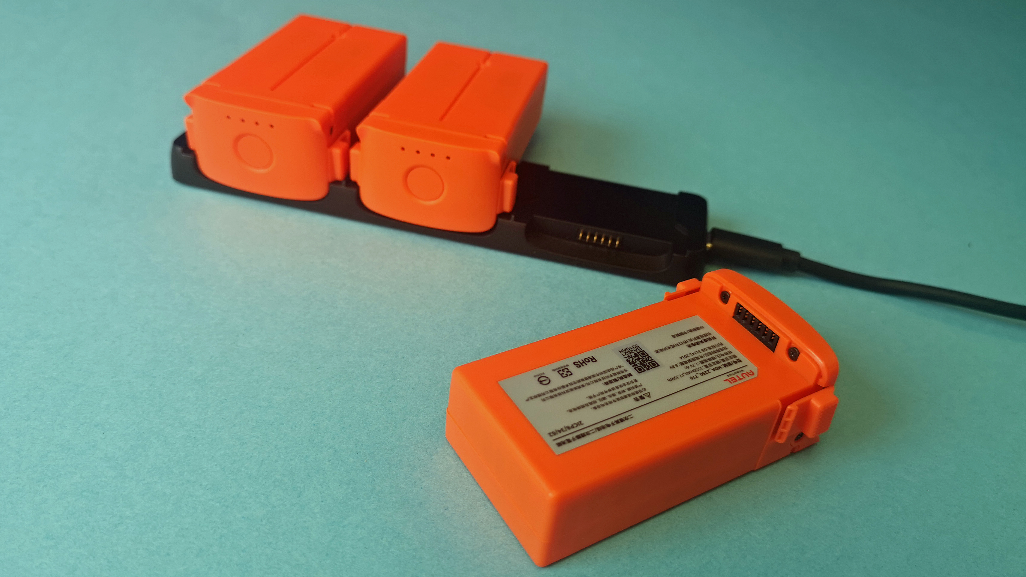 Die 2-Zellen-Lipos haben eine Nennkapazität von 2250 mAh (17,3 Wh) und eine Nennspannung von 7,7 Volt. Die maximale Flugdauer liegt laut Hersteller bei 28 Minuten. In der Praxis – mit leichtem Wind und einigen sportlichen Passagen – haben wir gute 18 Minuten Flugzeit erreicht, bevor sich die Evo Nano Plus zum ersten Mal auf den Heimweg machen wollte. Wer die Rückkehr abbricht und nicht sofort landet, erreicht Flugzeiten von etwa 23 Minuten. Damit liegt die Flugzeit etwa auf Augenhöhe mit Mini 2 oder Mini 3 von DJI.