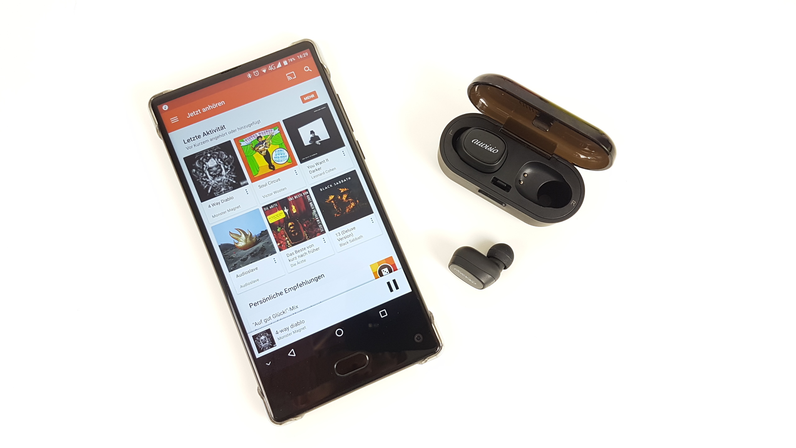 Mit ihrem geringen Gewicht und dem bestmöglich sitzenden Ohrpassstück lassen sich die Bluetooth-In-Ear-Stöpsel angenehm tragen. Und was den Klang angeht, ist das Headset von Auvisio schon eine andere Hausnummer als der nicht viel günstigere Hotgo TWS (True-Wireless-Kopfhörer im Test) . Das fängt damit an, dass es keine Störgeräusche gibt, die der Nutzer in stilleren Passagen oder bei pausierter Wiedergabe deutlich wahrnimmt. Auch hatten wir im Test keine Verbindungsabbrüche und mussten auch die Bluetoothverbindung nur ein einziges Mal herstellen – und die In-Ears nicht ab und an wieder neu verbinden. Außerdem ist die Verbindung zum Smartphone nach Herausnehmen aus der Box automatisch schnell wiederhergestellt. Und auch, was die Klangqualität angeht, besteht ein deutlich wahrnehmbarer Unterschied: Die Ohrstöpsel von Auvisio klingen nicht nur im Bass- und Mittenbereich satt aber auch differenziert und detailliert, auch die Höhen haben eine gute und nicht zu schrille Brillanz.