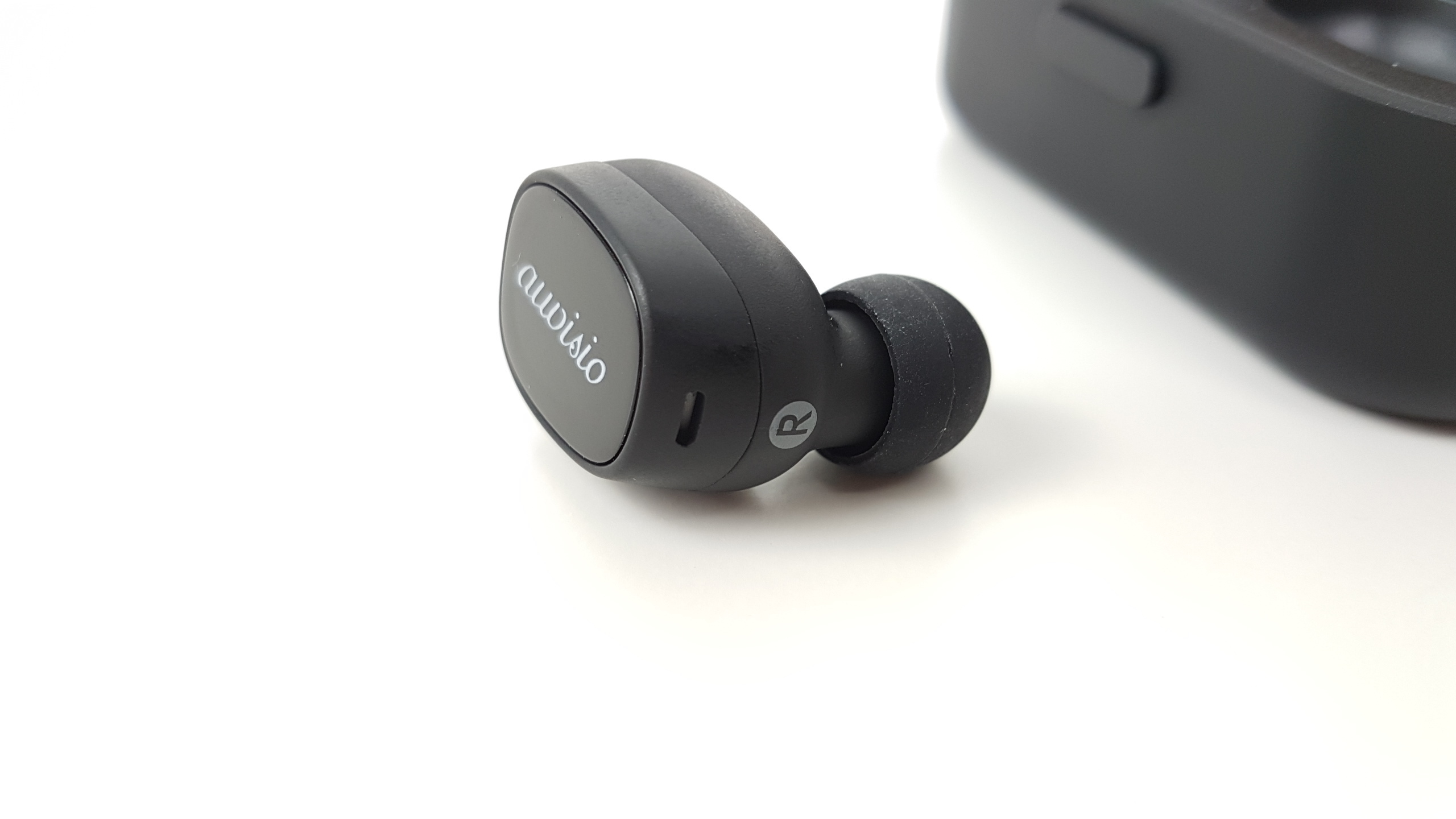 Auch die In-Ears sind zum großen Teil mit leicht gummiertem Material überzogen, nur ein Funktionstaster ist jeweils aus hochglänzendem schwarzen Kunststoff und mit dem Herstellerlogo bedruckt. Seitlich befinden sich die schon erwähnten Status-LEDs nebst Bezeichnungen für links und rechts. Die Ohrhörer haben die Abmessungen 24 x 17 x 22 und wiegen nur 5 Gramm, die Ladebox misst 69 x 30 x 30 und wiegt 29 Gramm. Die Verarbeitungsqualität von Headset und Etui ist gut.