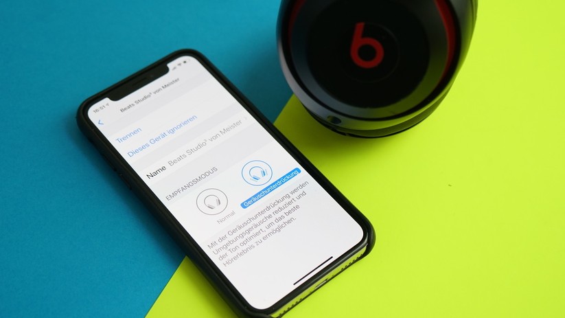 Obwohl es für die Studio 3 Wireless keine dezidierte App gibt, lässt sich die ANC-Funktion per Smartphone steuern: Auf dem iPhone wird dafür bei bestehender Verknüpfung einfach im Bluetooth-Menü beim Kopfhörer auf das Info-Icon getippt. Nun lässt sich der Geräuschunterdrücker an- oder ausschalten. Auch ein Name für die Kopfhörer kann hier eingetragen werden.