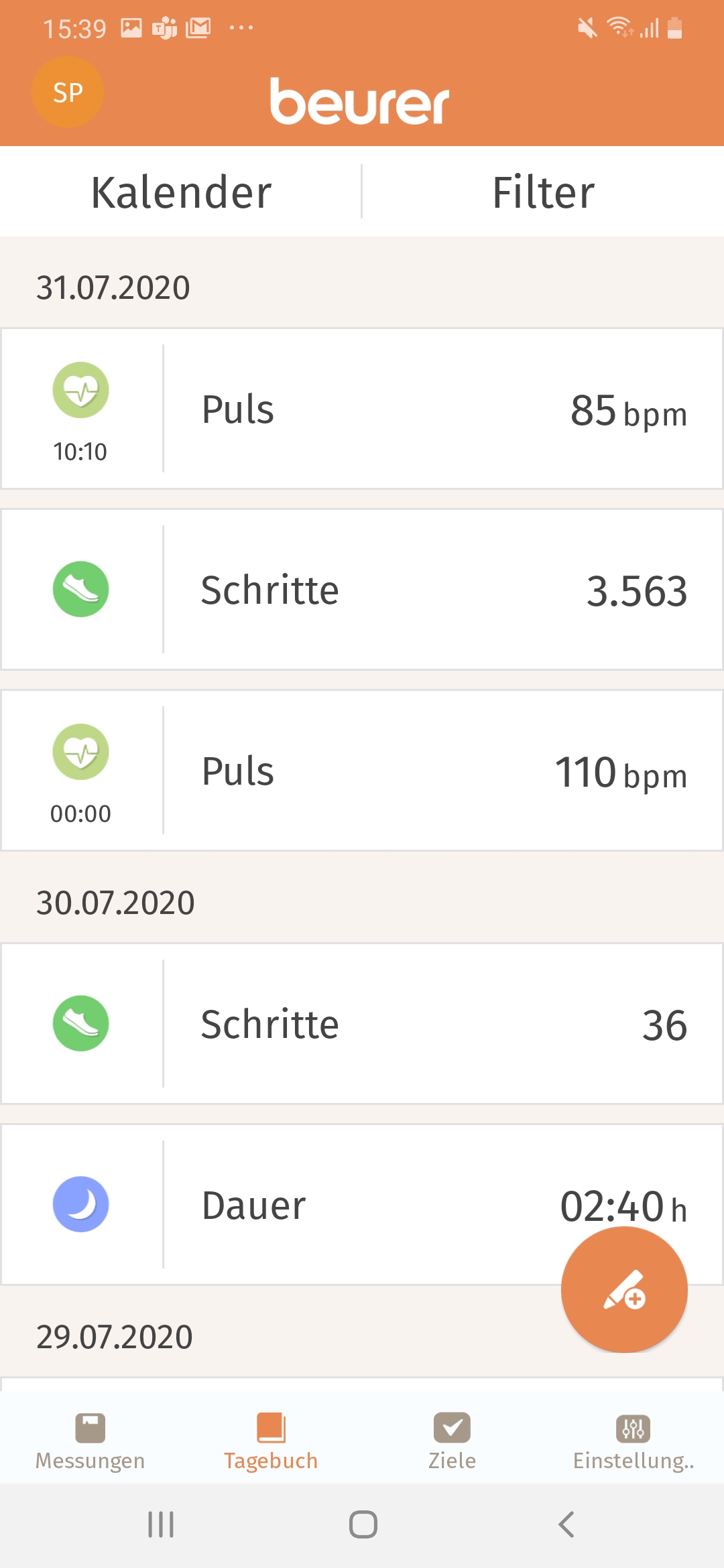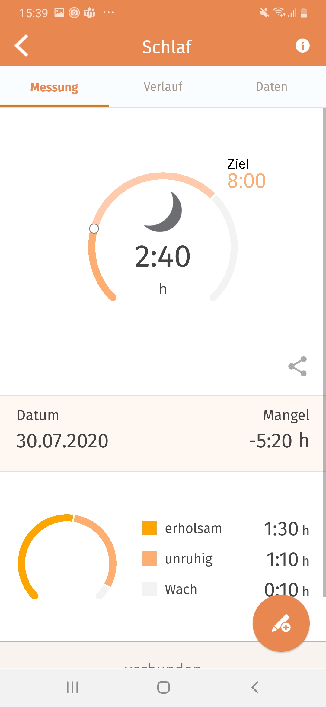 Ein wenig besser sieht es bei der Übersicht der anderen Daten aus. Die App zeigt zurückgelegte Schritte ebenfalls in einem Diagramm an und informiert uns, ob wir unsere Schrittziele erreicht haben. Dasselbe gilt für unseren Schlaf. Wir können die entsprechenden Ziele insgesamt und für jeden einzelnen Tag in der App festlegen. Der Reiter Tagebuch liefert dann eine Übersicht zu diesen Zielen und dem durchschnittlichen Puls jedes Tages.