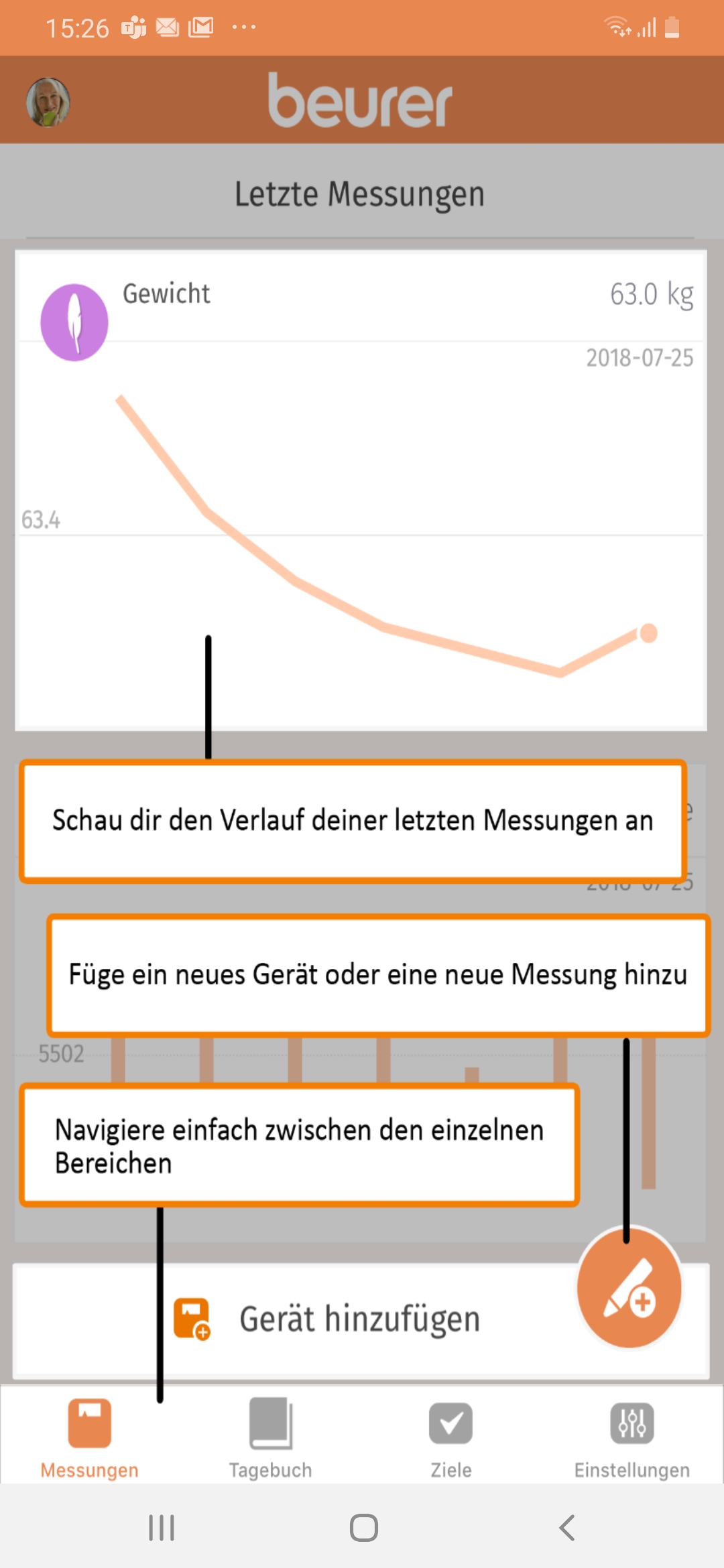 Schon beim ersten Starten der Beurer Healthmanager App fällt auf: Der Hersteller hat mit dem AS 99 und der zugehörigen Software eine eher ältere Zielgruppe im Blick. Die gesamte Benutzeroberfläche der App wirkt bieder und ist insgesamt sehr schlicht gehalten. Das muss zwar grundsätzlich nicht schlecht sein, in diesem Fall leidet aber der Informationsgehalt bei der Aufbereitung der mitgeschnittenen Daten. Beispiel Puls: Die App zeigt auf der Hauptseite im Bereich der Pulsmessung einen Wert von 68 auf einer Linie an. Ein Diagramm gibt dann die jeweiligen Pulswerte des aktuellen Tages aus, aber ohne Zeitangabe oder weitere konkrete Werte. Lediglich der durchschnittliche Puls prangt oben rechts im Bereich "Puls". Klicken wir den Tab an, zeigt uns die App zwar in drei Untermenüs den aktuellen Puls, den detaillierten Verlauf und die einzelnen Messungen für jeden Tag, allerdings mangelt es auch hier an Übersicht und Details, weil die App bei den gemessenen Werten im Diagramm keine konkreten Zahlen angibt. Wer sich einen Überblick über die eigene Herzfrequenz verschaffen will, muss sich durch eine Vielzahl an nichtssagenden Diagrammen wühlen, deren Nutzen uns im Test eher fragwürdig erschien.