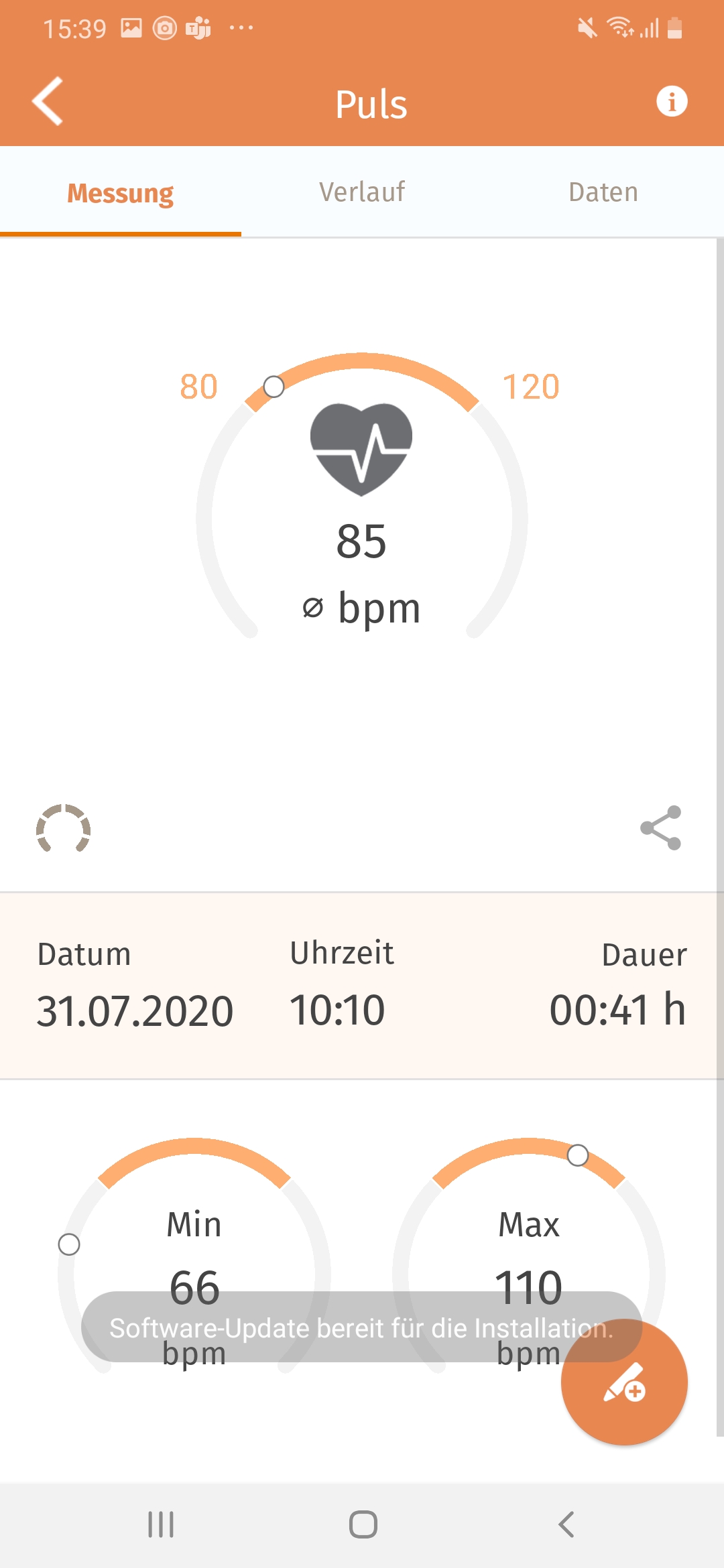 Beurer vermarktet den AS 99 als Aktivitätssensor, der Bewegung und erreichte Herzfrequenz messen soll. Letzteres funktioniert am Handgelenk mithilfe eines optischen Sensors. Die Pulsmessung lieferte dabei in unserem Test brauchbare Werte mit leichten, aber verschmerzbaren Schwankungen. Der AS 99 musste sich nach dem Anlegen kurz kalibrieren, gab dann aber passende Werte aus, die die meiste Zeit nur im einstelligen Bereich vom Ergebnis unseres Kontrollgeräts (Polar Pulsgurt H9) abwichen.