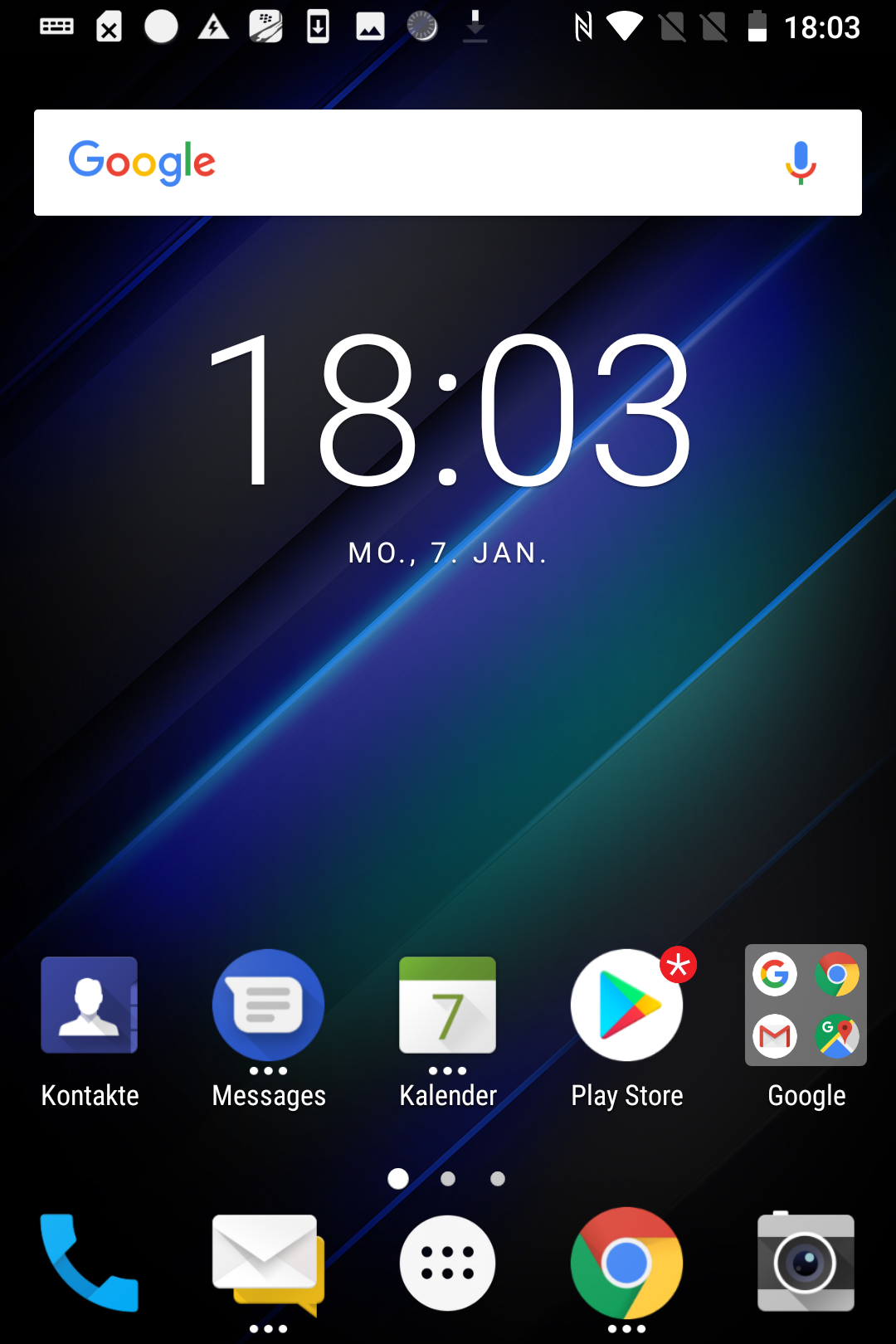 Das Display des Key2 LE ist 4,5 Zoll in der Diagonalen groß und löst 1620 [×] 1080 Pixel im Bildverhältnis von 4:3 auf – also weniger als Full-HD, was aber dem Seitenverhältnis geschuldet ist. Die Bildschärfe mit einer Pixeldichte von 450 ppi reicht vollkommen aus. Was dem Nutzer eines Key2 LE auffällt, ist der durchgehend vorhandene Blaustich. In den Einstellungen lassen sich die Farben etwas wärmer einstellen, doch verschwindet der gefühlt zu hohe Blauanteil nicht ganz.