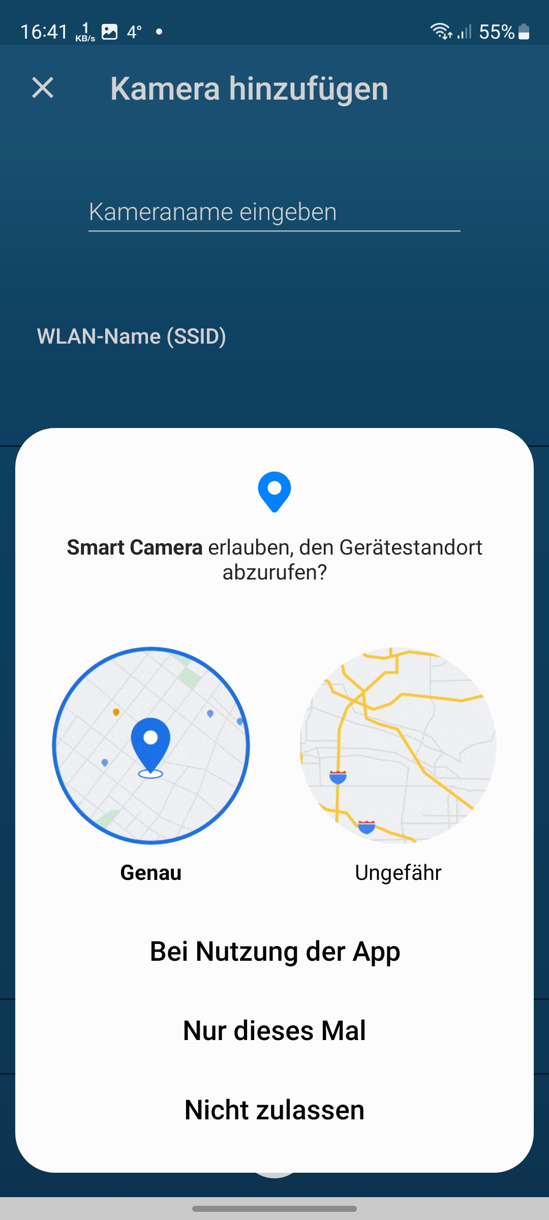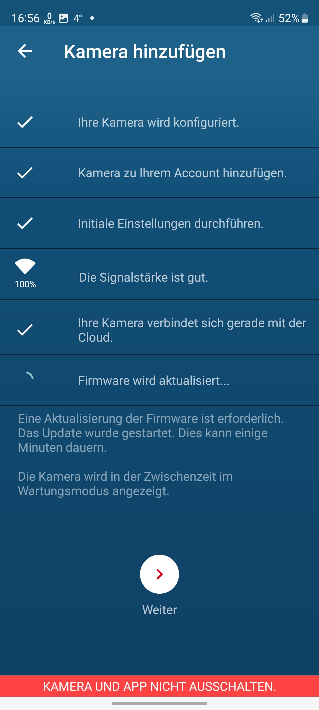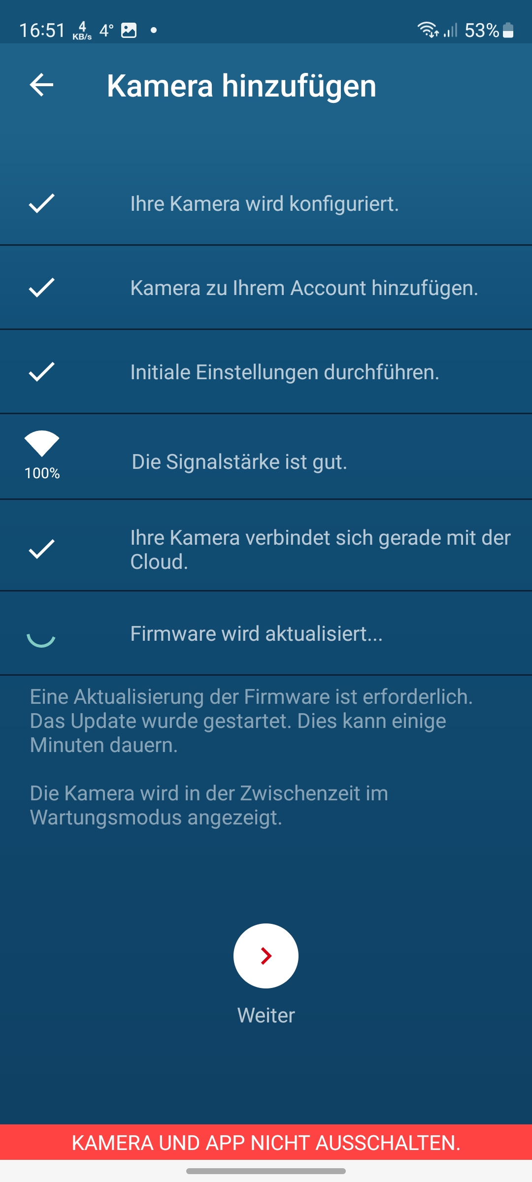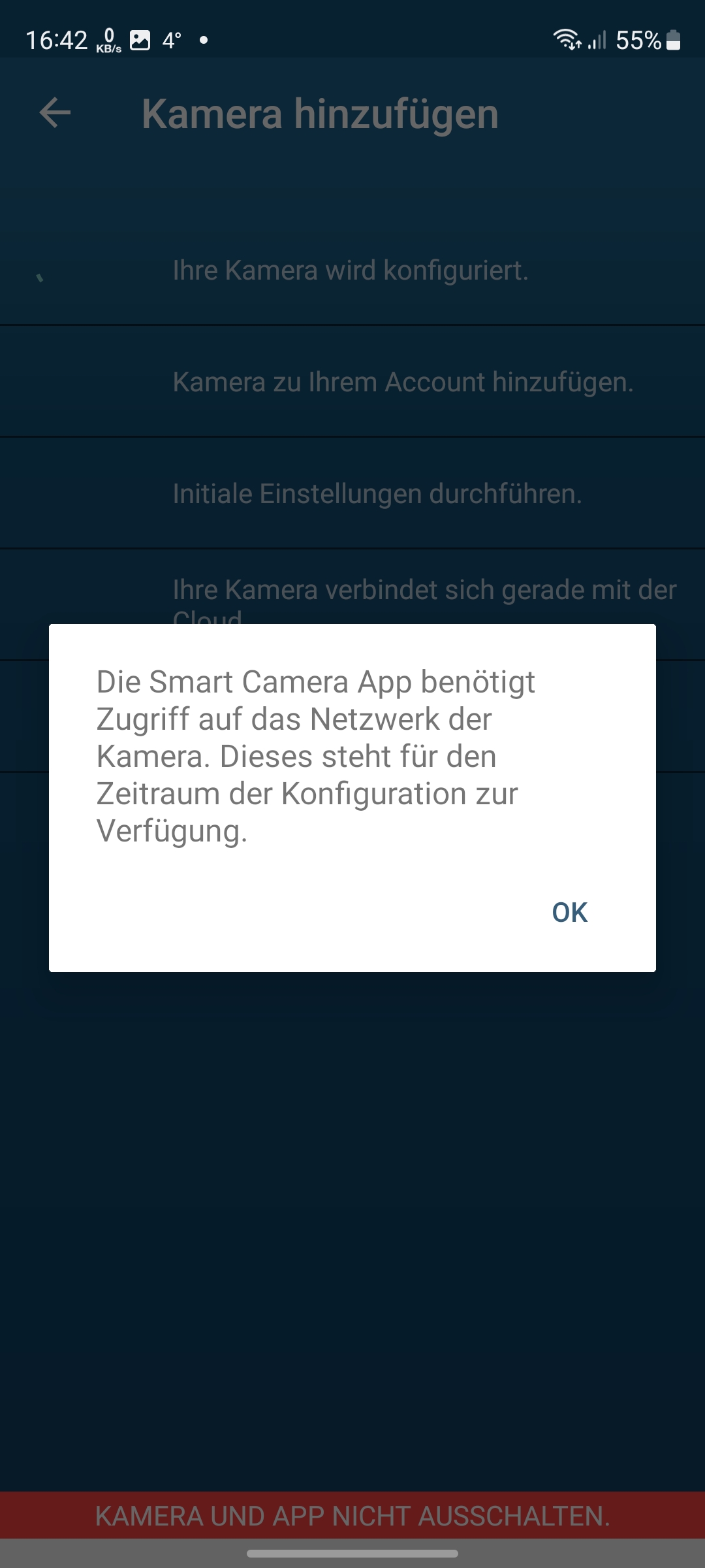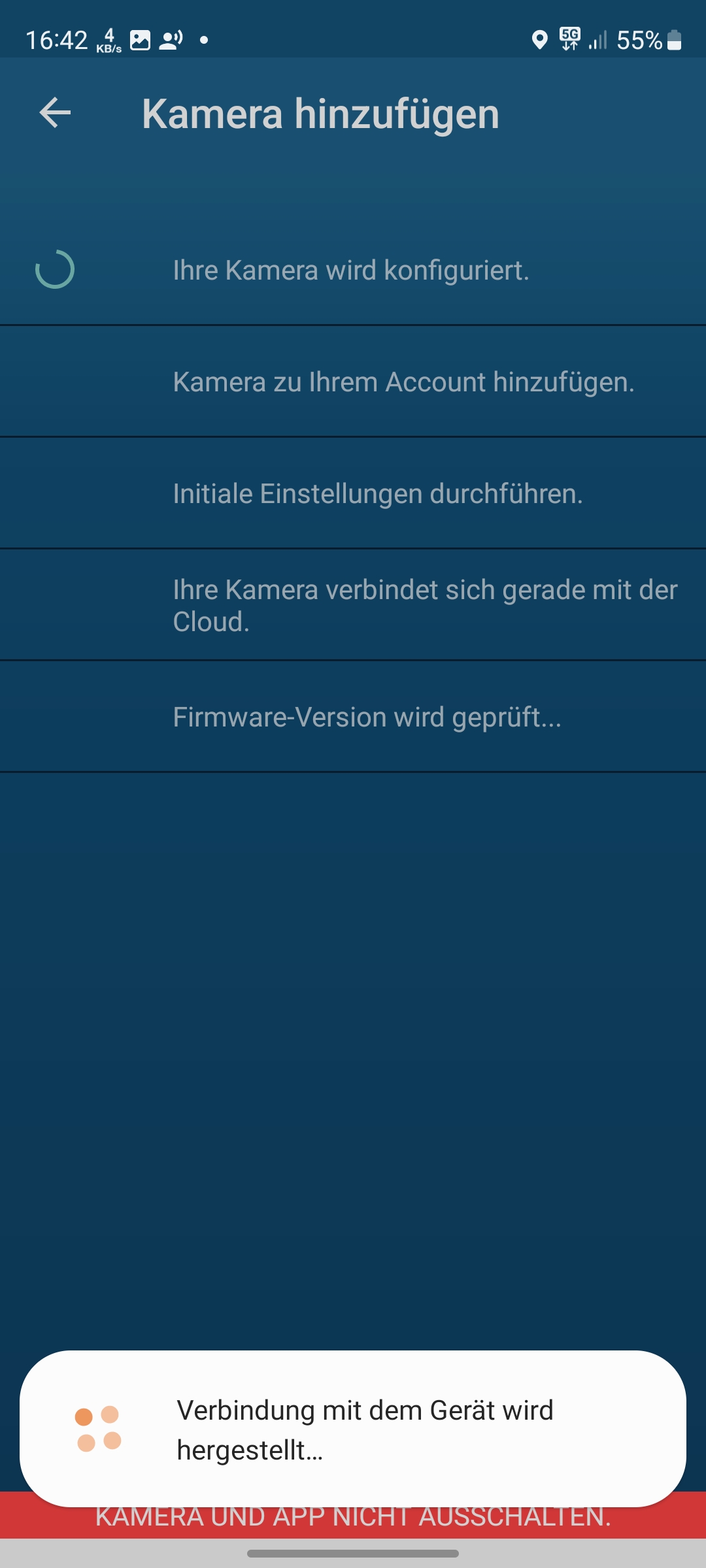 Die Einrichtung der Bosch Eyes Innenkamera II mit der App verläuft über das Einscannen des an der Unterseite der Kamera befindlichen QR-Codes und anschließenden Koppelung mit dem heimischen WLAN unproblematisch (siehe auch Bildergalerie). Allerdings unterstützt die Kamera nur 2,4-GHz-Netze.