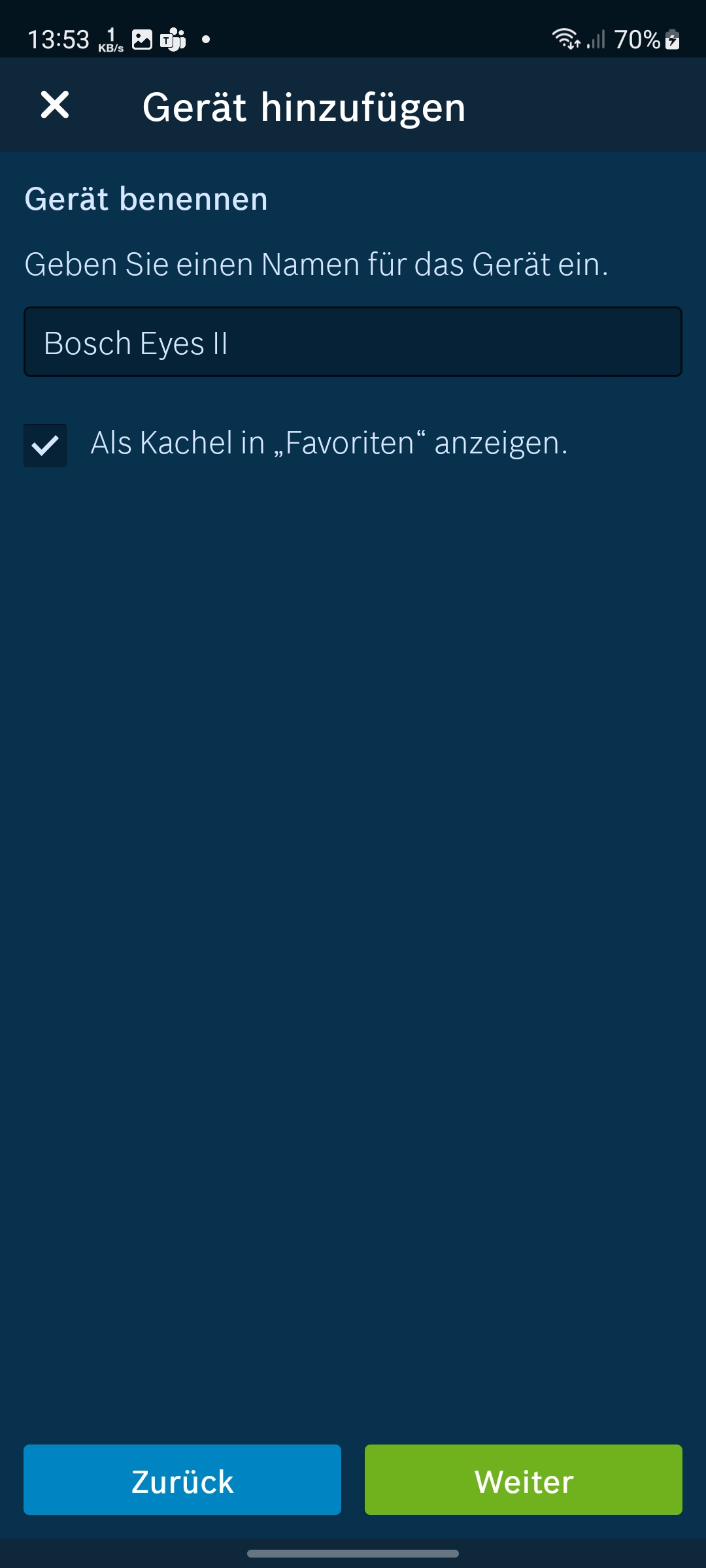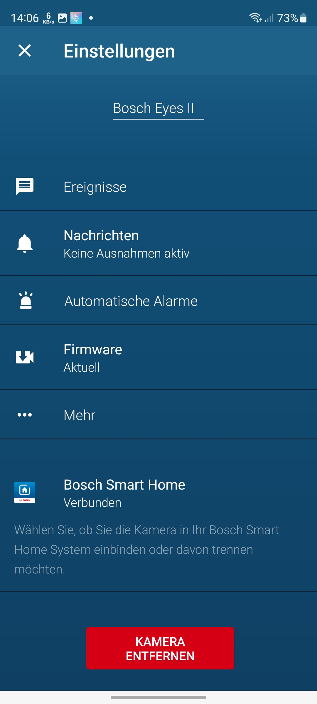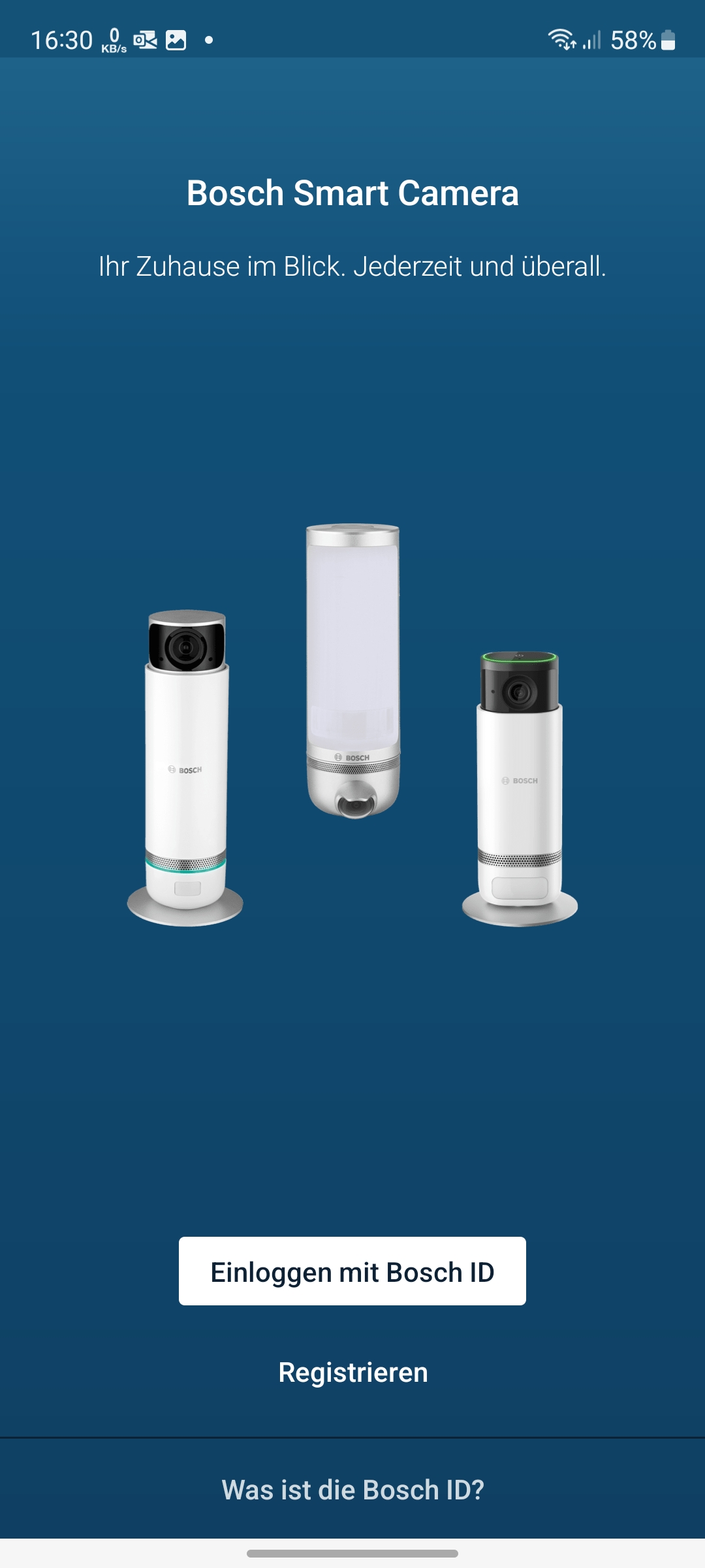 Eingerichtet wird die Bosch Eyes Innenkamera II mit der App Bosch Smart Camera, die eine Registrierung voraussetzt. Unter Android heißt die App aber nur Smart Camera. Wer also nach Bosch in der App-Übersicht sucht, findet sie nicht, während sie unter iOS mit dem Suchbegriff Bosch aufgelistet wird. Das ist zwar nicht schlimm, aber intuitiv auch nicht. Apropos App: Unter Android ist die App auch für Tablets optimiert, während iPad-Nutzer mit einer lediglich hochskalierten iPhone-App vorliebnehmen müssen.