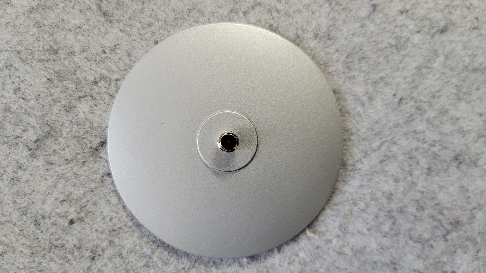 Ein aus Aluminium gefertigter und in Teilen gummierter Standfuß mit einem Durchmesser von 7,2 Zentimeter und einem Gewicht von 77 Gramm sorgt für einen stabilen Halt der Kamera, die auf ein Gesamtgewicht von 250 Gramm kommt. Der ausfahrbare Gehäuseteil mit Kameraoptik ist in Schwarz gehalten, sodass es ein schöner Kontrast zum weißen Hauptgehäuse entsteht.