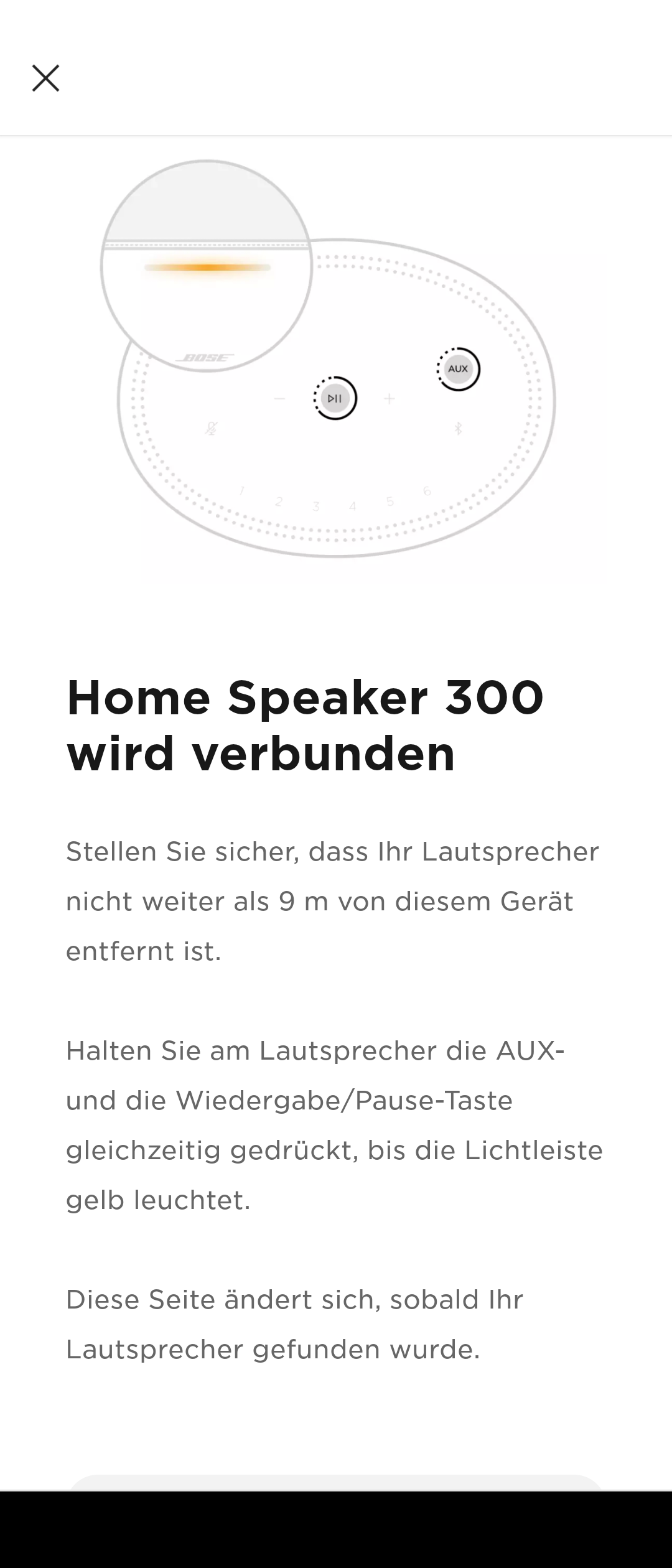 Multiroom-Betrieb ist bei Bose nicht nur mit weiteren Smart Speakern möglich, sondern auch mit Bose Soundlink Bluetooth-Lautsprechern, Soundbars wie der Bose Smart Soundbar 900 und bestimmten drahtlosen Bose Kopfhörern. Auf der Rückseite des Lautsprechers ist neben dem 24-V-Anschluss noch die 3,5-mm-Klinkenbuchse für den AUX-Eingang zu finden. Weitere Anschlüsse oder Bedienelemente gibt es nicht – alles andere läuft über die App.
