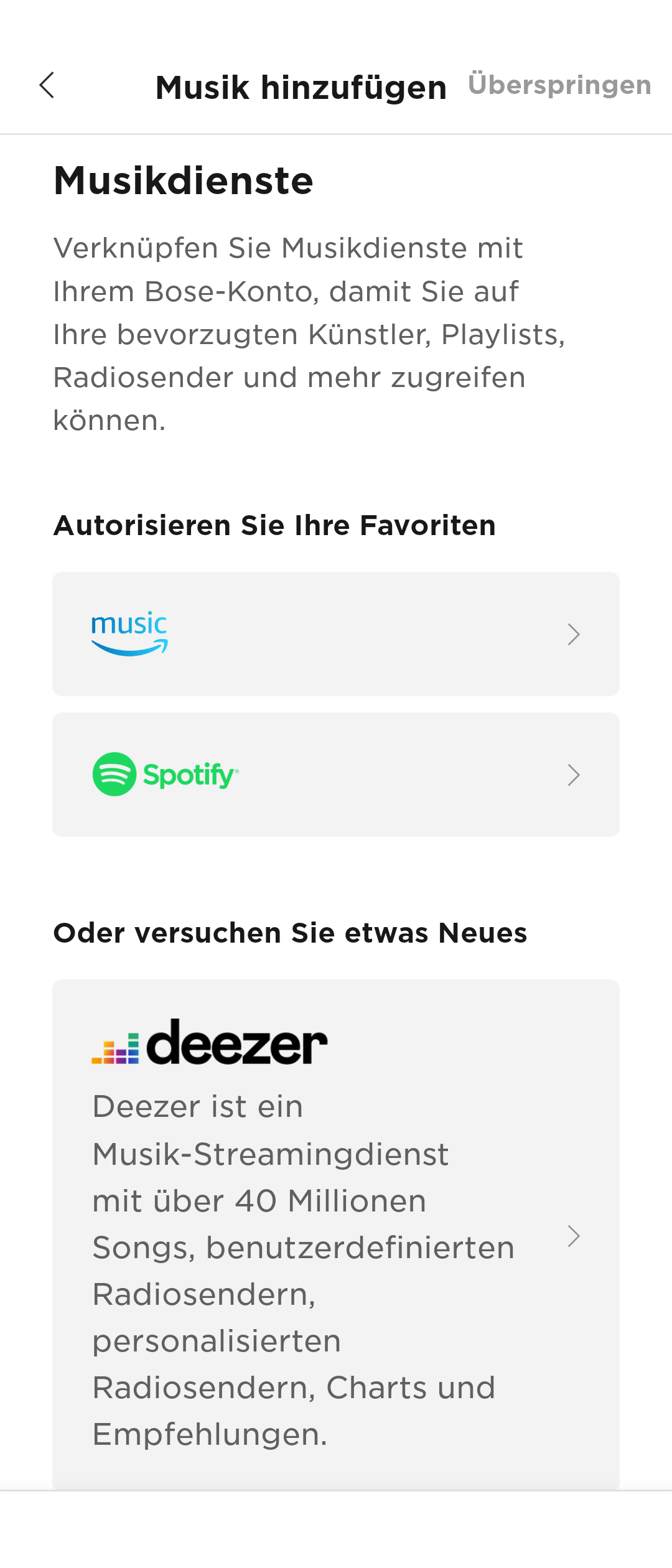 Die Einrichtung des Lautsprechers erfolgt über die Bose Music App. Wenn schon ein Bose-Lautsprecher angemeldet ist, geht es leichter, sonst ist es nicht so simpel: Man muss zunächst bei Bose ein eigenes Konto samt Passwort anlegen und in diesem seinen Lautsprecher wählen. Dann wird er auch im WLAN eingerichtet und kann verwendet werden. Nach einer Weile erfolgt dann ein Firmware-Update, das sich nicht unterbrechen lässt und auch angeboten wird, wenn der neue Lautsprecher up to date ist und nur ein Update eines älteren anderen noch aussteht. Das kann lästig werden. Auch das schnellere 5-GHz-WLAN kann genutzt werden. Für Apple-User steht Airplay zur Verfügung.