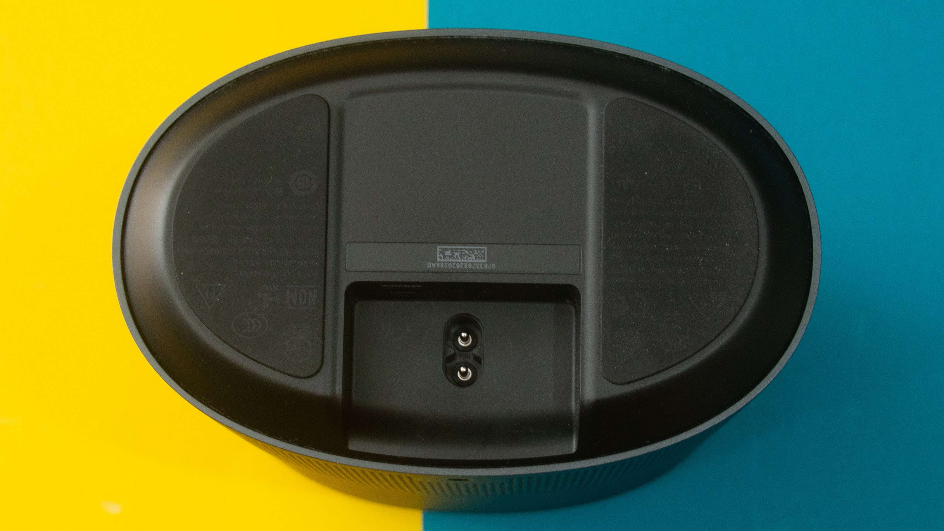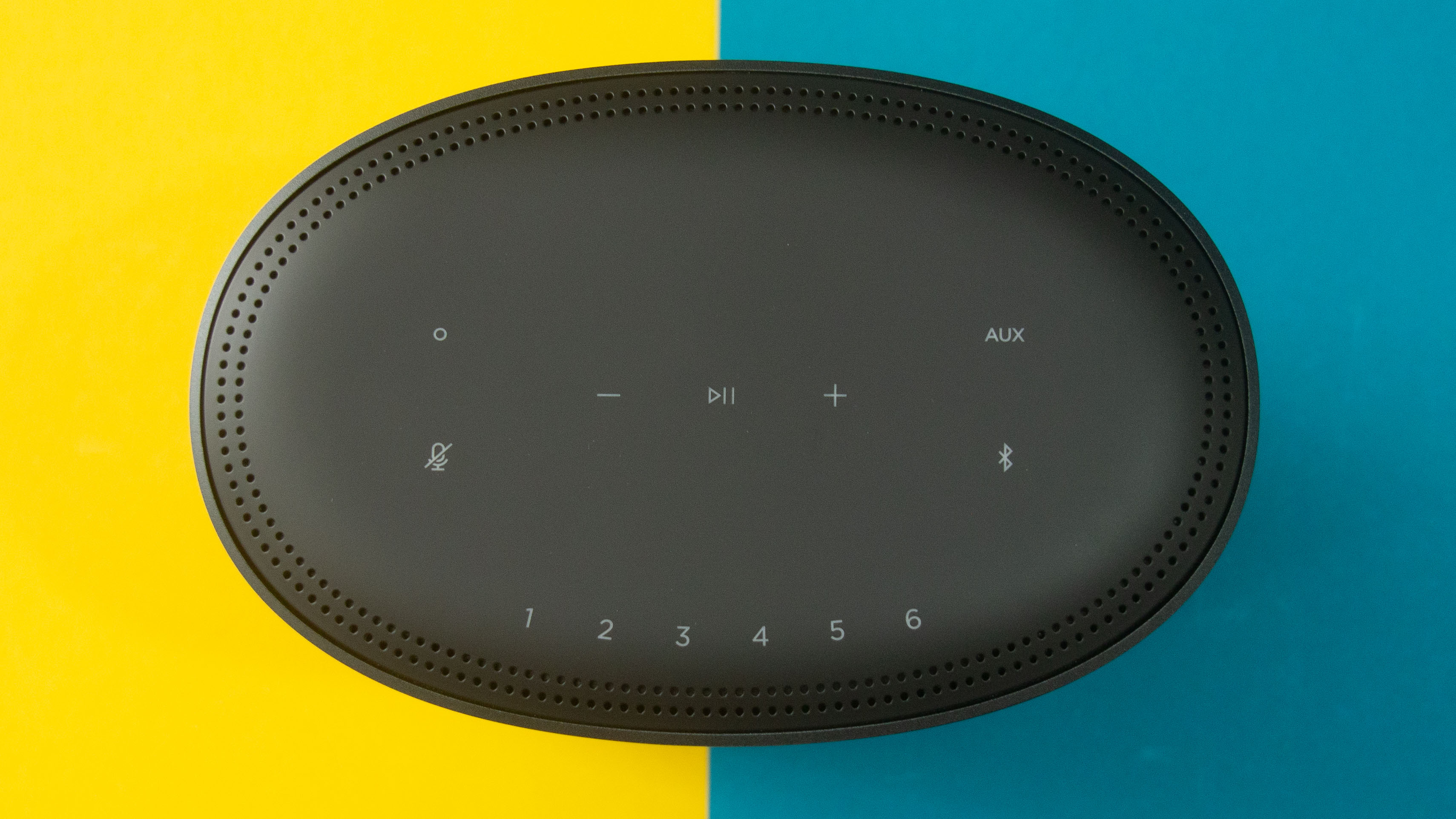 Multiroom-Betrieb ist bei Bose nicht nur mit weiteren Smart Speakern wie dem Home Speaker 300 und dem Bose Portabel Smart Speaker (Testbericht) möglich, sondern auch mit einigen Bose Soundlink Bluetooth-Lautsprechern und bestimmten drahtlosen Bose Kopfhörern. Auf der Rückseite des Lautsprechers ist die 3,5-mm-Klinkenbuchse für den AUX-Eingang zu finden. Weitere Anschlüsse oder Bedienelemente gibt es nicht – alles andere läuft über die App.