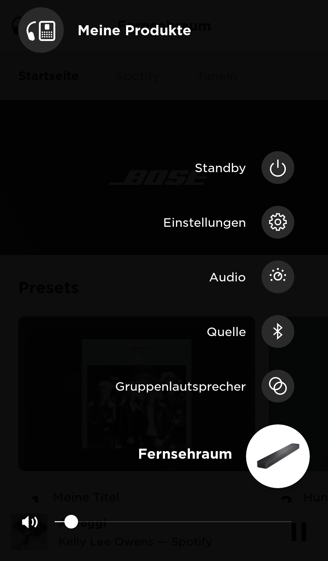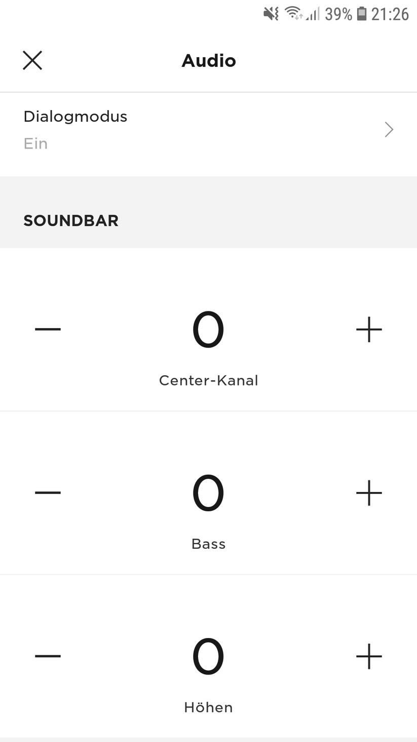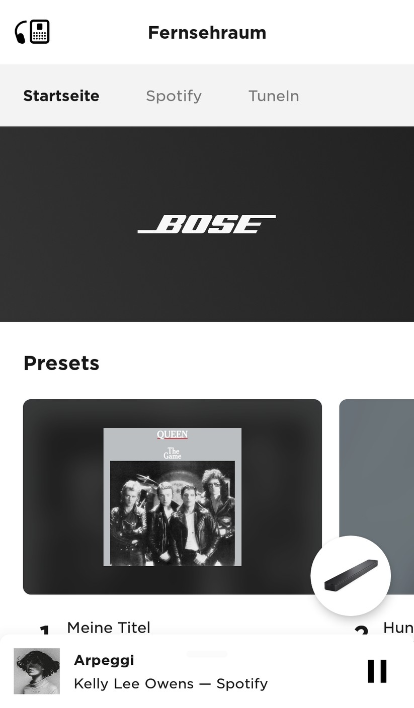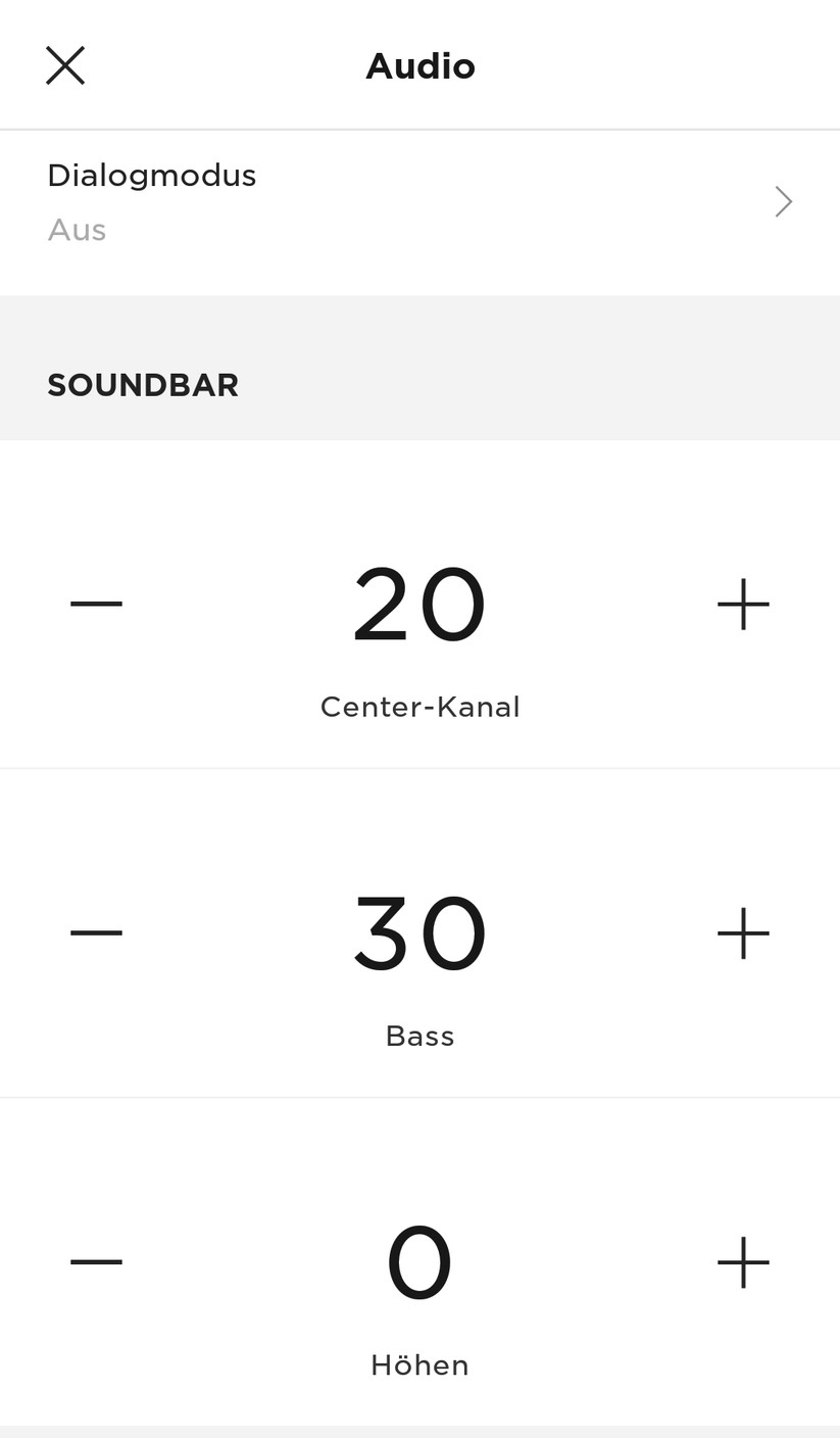 In puncto Musik kann die Soundbar ebenfalls gut mithalten. Die hauseigene Music App greift auf Spotify und Co. und mimt dabei die Benutzeroberfläche der Original-App nach, bleibt dabei aber minimalistisch und auf wesentliche Funktionen reduziert. Da die Music App nicht einmal Songlänge, Albumname, Warteschlange oder Verlauf anzeigt, ist der Wechsel in die Original-App doch meist zielführender. Dafür bietet die Bose Music App ein paar Equalizer-Optionen, um den Sound nach den eigenen Wünschen zu gestalten. So lassen sich Center-Kanal, Bass sowie Höhen in zehn Stufen regulieren und in bis zu sechs Presets speichern.