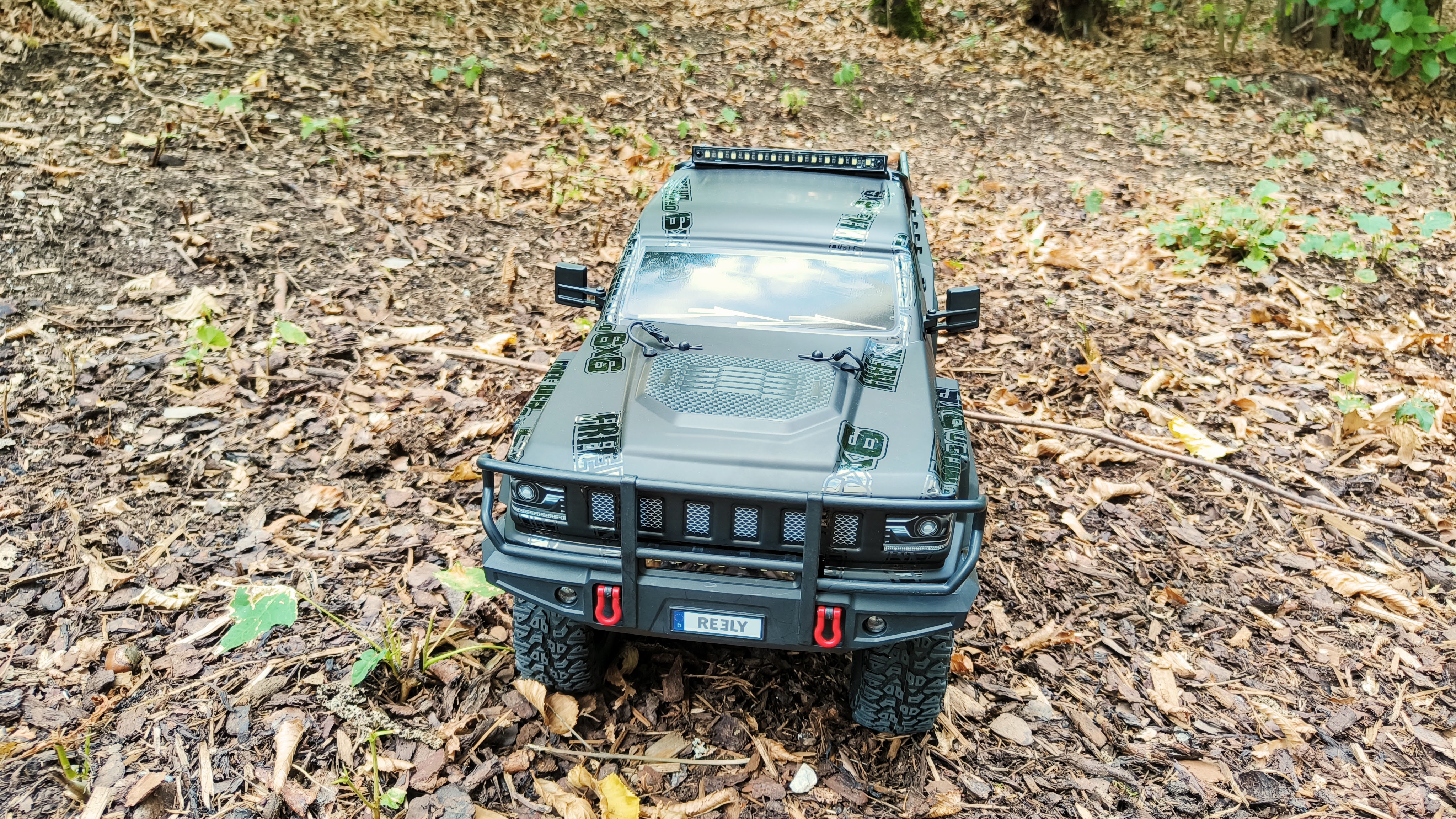 Wem auch ein Fahrzeug mit zwei Achsen reicht, sollte sich den günstigeren Reely Free Men 2.0 (Testbericht) ansehen, der ebenfalls über ausgeprägte Klettereigenschaften verfügt. Wer lieber mit hohem Tempo über Wiesen und Schotter flitzt, wirft einen Blick auf den Reely Rat MX XL (Testbericht). Diese wirkt besonders martialisch durch die an den Endzeitfilm „Mad Max“ angelehnte Optik.