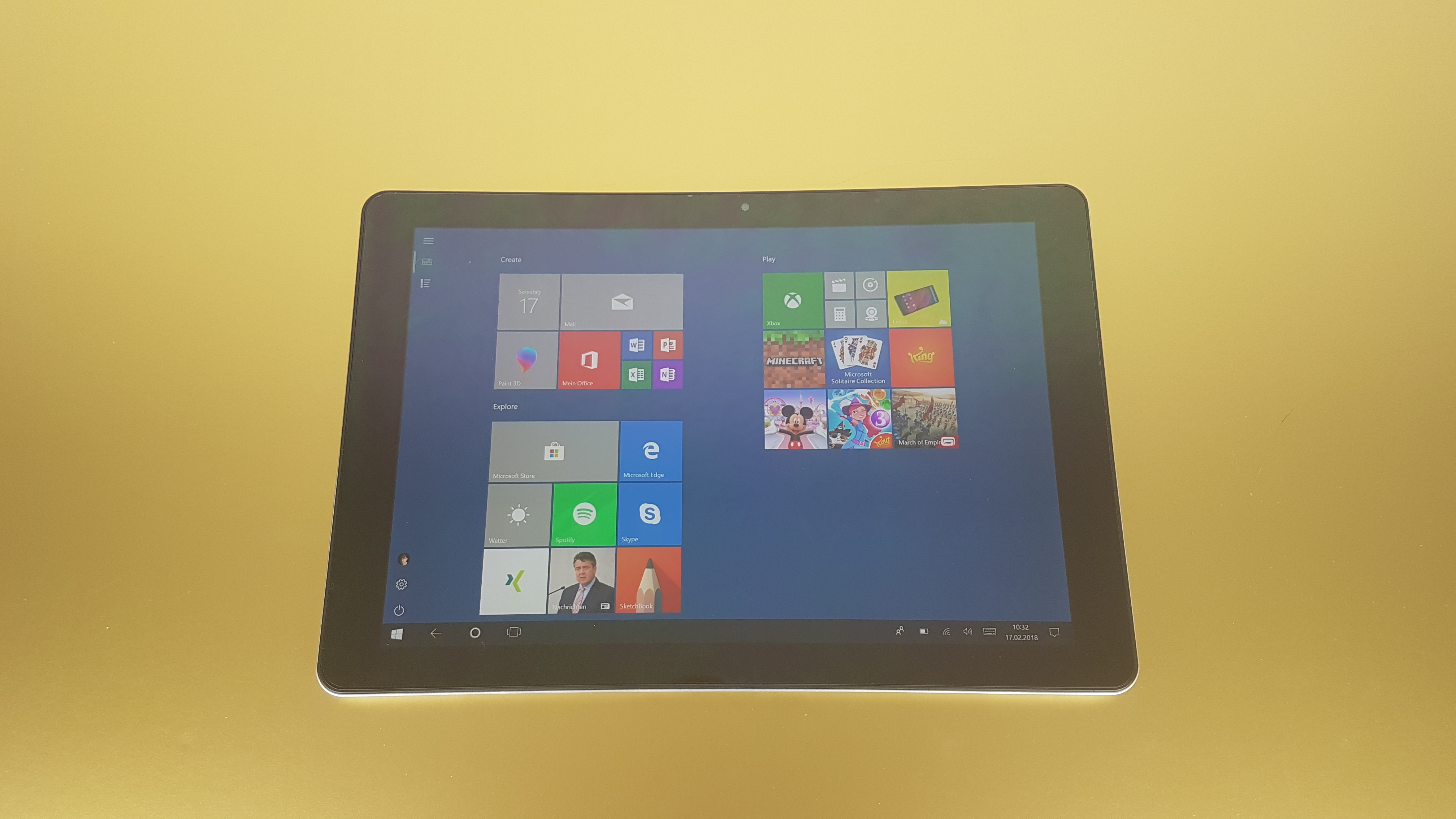 Auf dem Surbook Mini 10.8 ist ein aktiviertes Windows 10 Home installiert. Beim ersten Start gilt es, das Tablet zunächst in englischer Sprache in Betrieb zu nehmen. Sobald es eingerichtet ist, lässt sich das System in den Systemeinstellungen über das Windows Update problemlos auf Deutsch umstellen. Im Vergleich zu anderen günstigen China-Tablets und -Laptops ist die installierte Windows-Software recht aktuell: Wir mussten lediglich das letzte größere Update installieren.