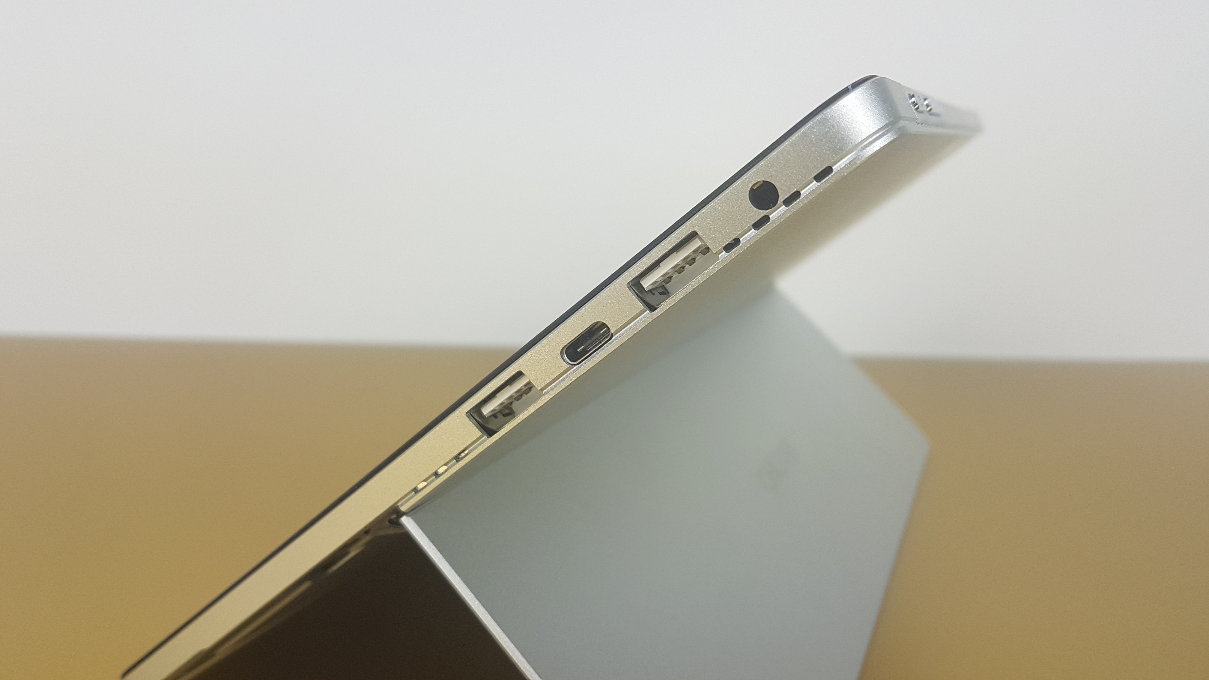 Das Gerät empfängt WLAN nach 802.11 a, b, g, n und ac im 2,4- und 5-GHz-Frequenzband sowie Bluetooth 4.0. Außerdem stehen die schon erwähnten USB-3.0-Anschlüsse bereit und ein USB-Type-C-Port, der auch zum Aufladen des Gerätes dient. Die Kapazität des fest verbauten Akkus beträgt 27 Wh.