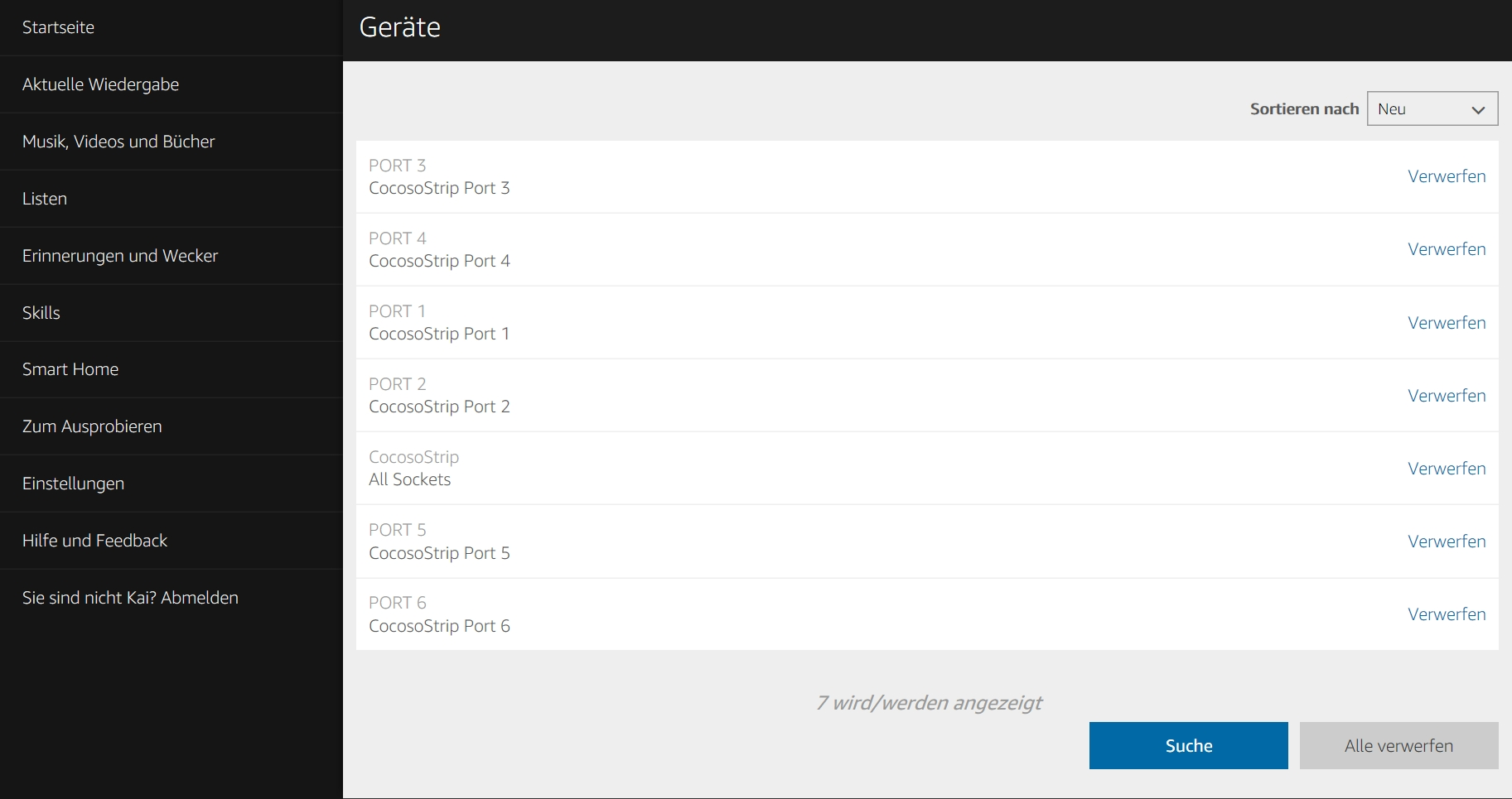 Nach der Einrichtung schaltet der Sprachbefehl „Alexa, schalte Cocoso Strip ein/aus“ die gesamte Steckdosenleiste oder einzelne Steckdosen („Alexa, schalte Port 4 ein/aus“). Wer Missverständnisse vermeiden möchte, sollte aber das ganze Gerät umbennenen. Ansonsten kommt es zu Antworten wie „Ich habe KoKos-Soße nicht gefunden.“ Außerdem tendiert die deutsche Alexa dazu, den englischen Begriff „Port“ als „Part“ zu verstehen und übernimmt den Befehl dann nicht korrekt, die Lösung dieses Problems ist allerdings denkbar einfach und darüber hinaus ohnehin sinnvoll: Die Einzelsteckdosen werden in der Alexa-App einfach nach den jeweils angeschlossenen Geräten wie Fernseher, Lautsprecher oder Lampe benannt. Das ist viel einfacher, als sich die Nummer des jeweiligen Steckplatzes zu merken.