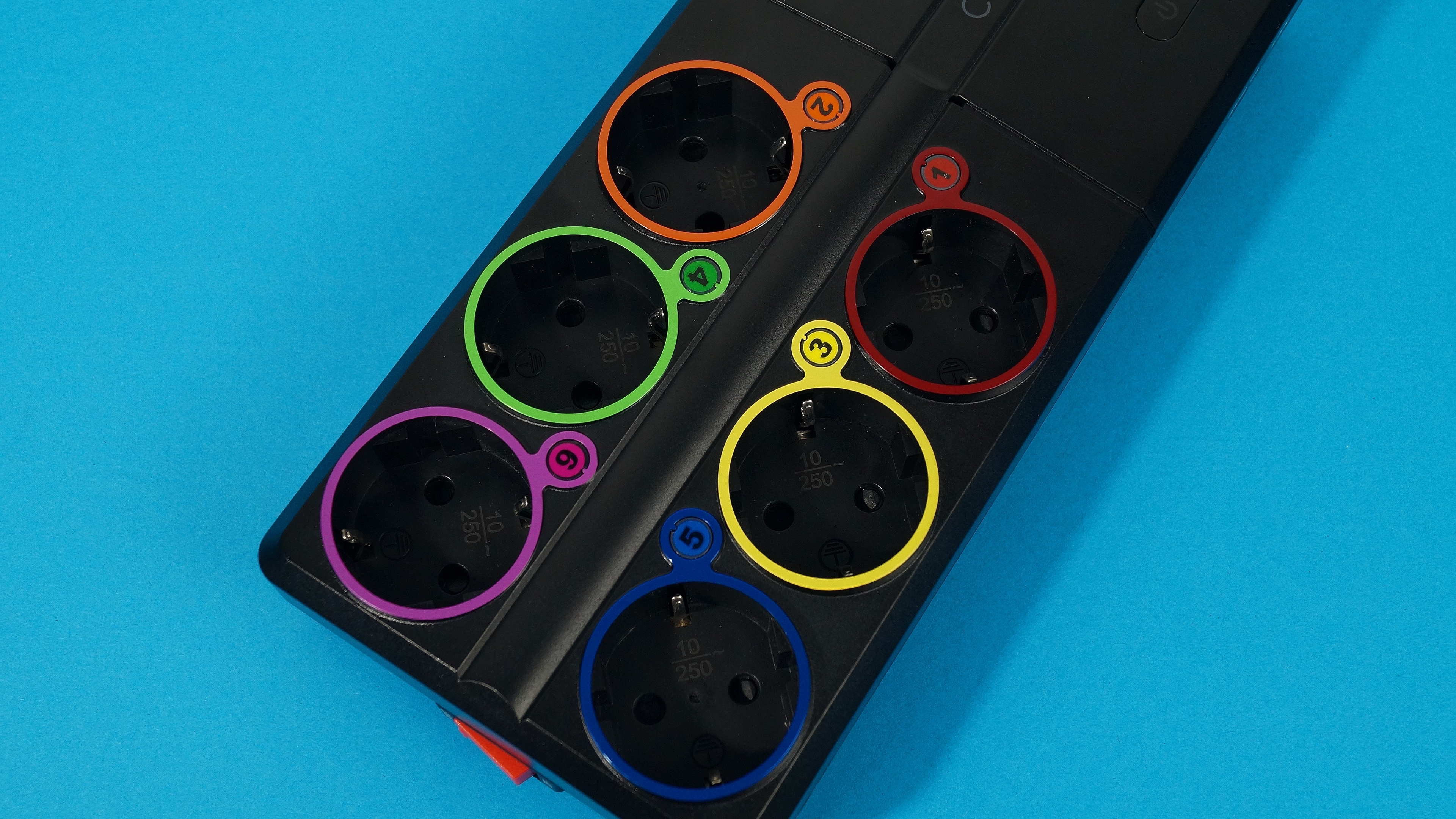 Angeschlossene Verbraucher dürfen sich laut Herstellerspezifikation nicht mehr als 2300 W genehmigen (10 A im 230-V-Netz). Gerade weil sich hier bis zu sechs Geräte anschließen lassen, hätten das ruhig etwas höher dimensioniert sein dürfen; die meisten Zimmer-Steckdosen in Deutschland sind mit 16 A abgesichert. Auf unsere Nachfrage hin sagte uns der Hersteller, dass die Steckdose auch höhere Lasten verkrafte, man aber bei der Angabe bewusst etwas konservativer vorgehe. Das führe zu kritischen Konstellationen, wenn Kunden beispielsweise mehrere Steckerleisten in Reihe schalten. Davon raten wir ohnehin ab, zumindest, wenn nicht vorher genau der Verbrauch der angeschlossenen Geräte sowie die Belastbarkeit der Steckerleisten überprüft wird.