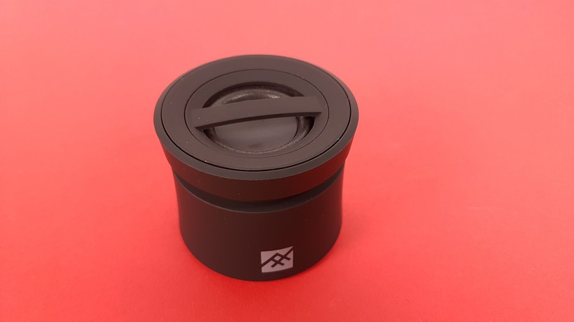Schnuckelig, der kleine Coda Wireless Speaker. Mit seinem Durchmesser von knapp 6 und seiner Bauhöhe von knapp 5 Zentimetern könnte man ihn sich eigentlich an den Schlüsselbund hängen. Das Gehäuse ist mit einem leicht gummierten Material überzogen, oben schaut der Lautsprecher heraus. Die Bedienelemente sind auf der Unterseite, umrandet von einem rutschfesten Gummiring. Neben dem microUSB-Anschluss zum Aufladen sitzen eine LED für Ladestand und Bluetooth-Status und ein Mikrofon.