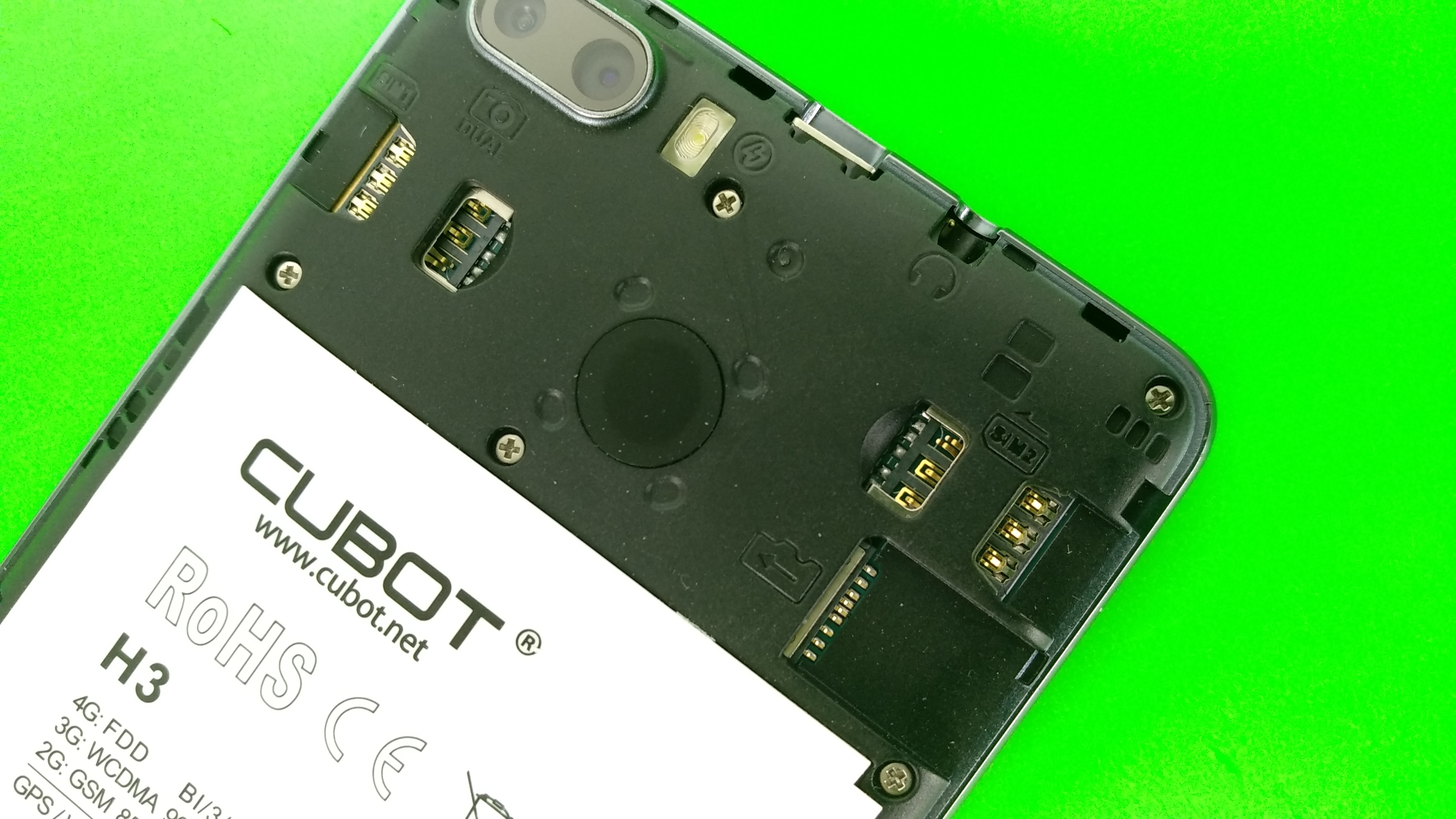 Als Antrieb gibt es beim Cubot H3 einen Quadcoreprozessor des Herstellers Mediatek (MT6737) mit einem Maximaltakt von 1,3 GHz. Der Arbeitsspeicher ist 3 GByte, der interne Speicher 32 GByte groß. Zur Erweiterung steht ein microSD-Kartenslot zur Verfügung. Ins mobile Internet geht das Handy auf Wunsch mit zwei SIM-Karten und LTE-Geschwindigkeit inklusive Band 20. WLAN unterstützt das Smartphone nach 802.11 b, g und n im 2,4-GHz-Band, 5-GHz-WLAN fehlt. Obligatorisch gibt es dann noch Bluetooth 4.0 und GPS.