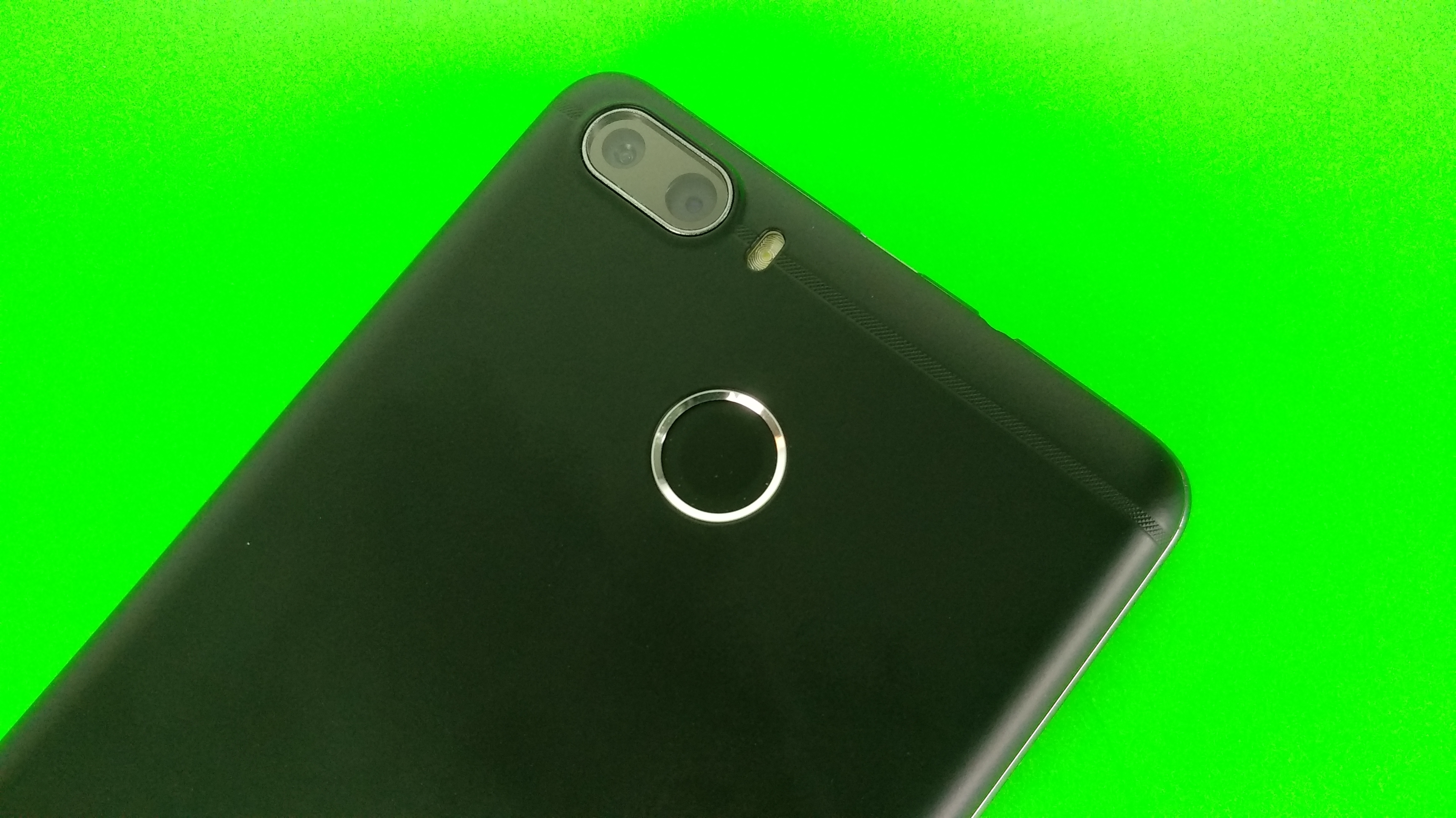Der Micro-USB-Anschluss zum Aufladen und für den Datenaustausch ist ungewöhnlicherweise oben mittig untergebracht, direkt daneben sitzt der Kopfhörerausgang. Unten findet sich hinter dem rechten Gitter der Lautsprecher für die Medienwiedergabe. Auf der Rückseite links im oberen Eck sitzt eine kaum aus dem Gehäuse herausstehende Dual-Kamera nebst Blitz, mittig ein Stück darunter der Fingerabdrucksensor. Unter der abnehmbaren Kunststoffrückseite kommt der leider nicht herausnehmbare Akku zum Vorschein, außerdem gibt es zwei SIM-Karten-Schächte und einen Steckplatz für eine microSD-Karte.
