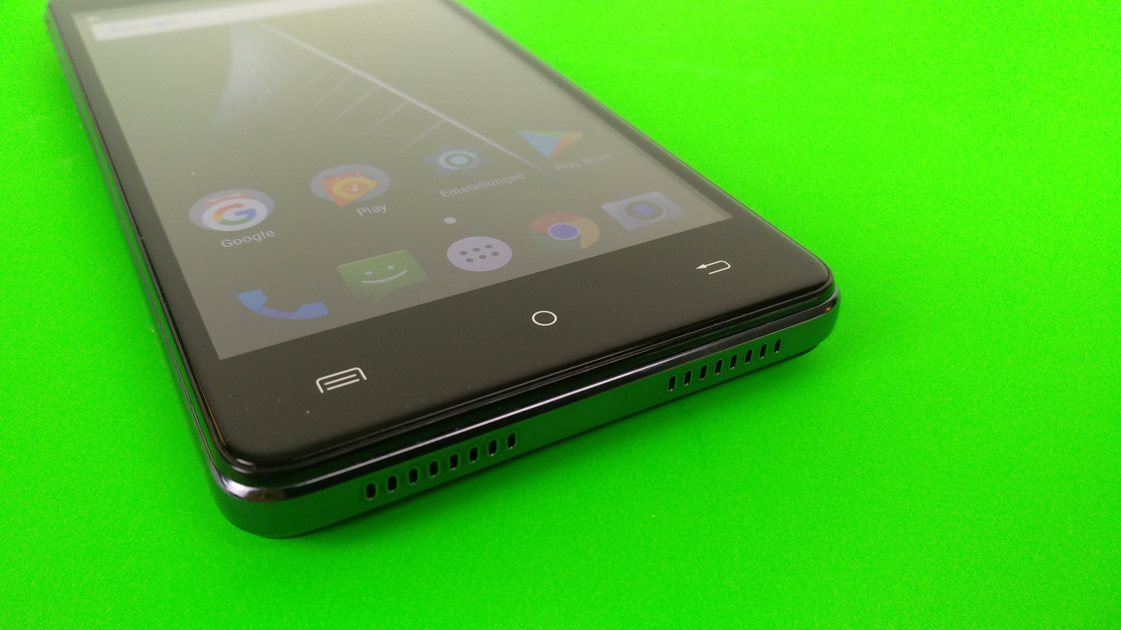 Das 5 Zoll große Display löst 1280 × 720 Pixel auf. Es kommt somit auf eine Pixeldichte von 294 ppi und bietet zwar keine gestochene, aber eine ausreichende Schärfe – vor allem, wenn man den Preis zugrunde legt. Auch die Farbwiedergabe ist gut, ebenso die Blickwinkelstabilität.
