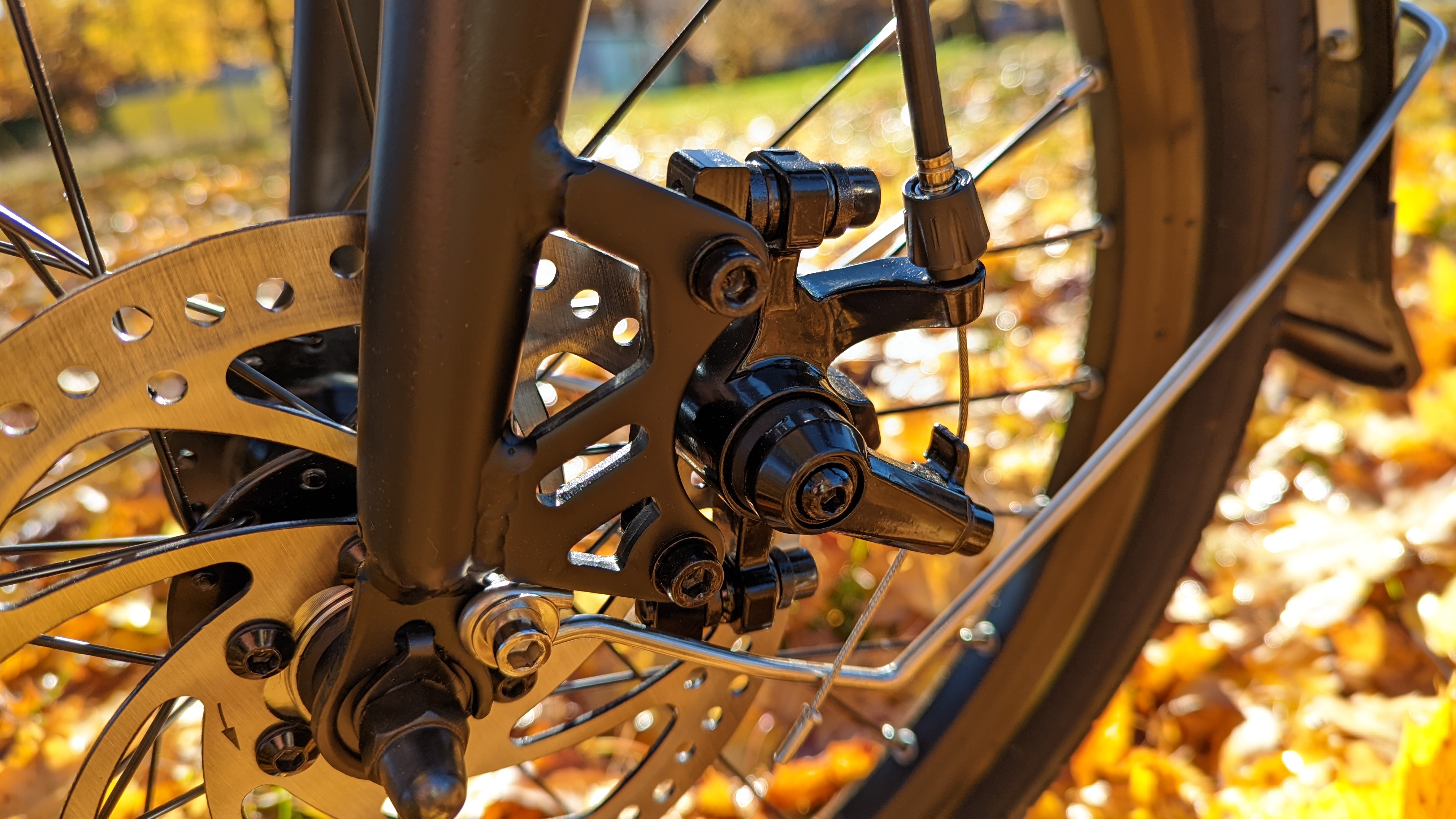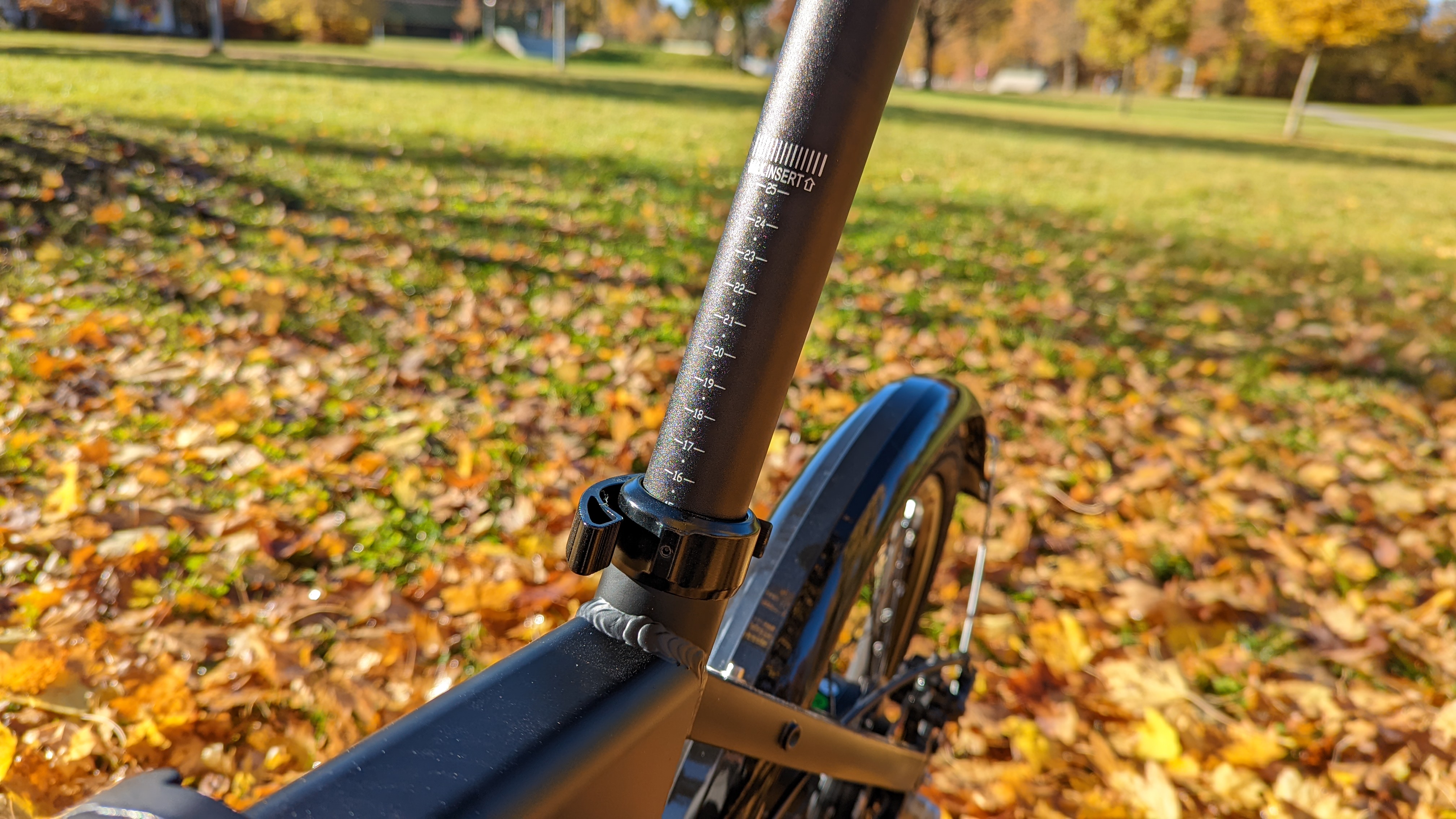 Der Klappmechanismus ist gegenüber dem Vorgänger praktisch unverändert. Das ist in dem Fall okay, war er doch bereits nahezu ausgereift. Wieder sichert ein großer gusseiserner Hebel die breite Rahmenstange. Nach dem zusätzlichen Umlegen der Lenkstange klappt das Fahrrad so zusammen, dass es danach problemlos auch in kleine Kofferräume passt. Die stabilen Pedale sind nicht anlegbar, dafür kann die Sattelstange komplett einfahren oder auch entnommen werden.