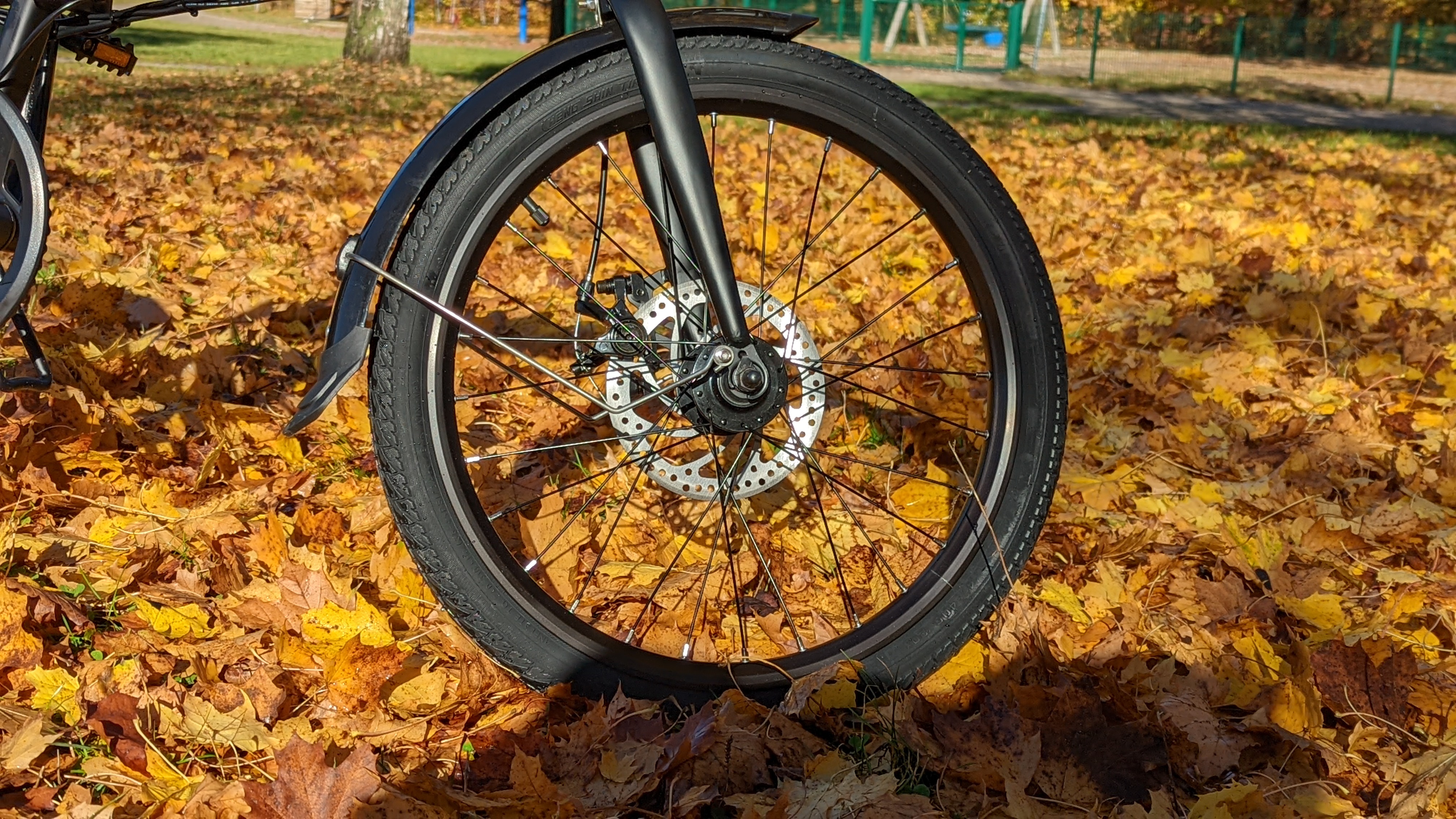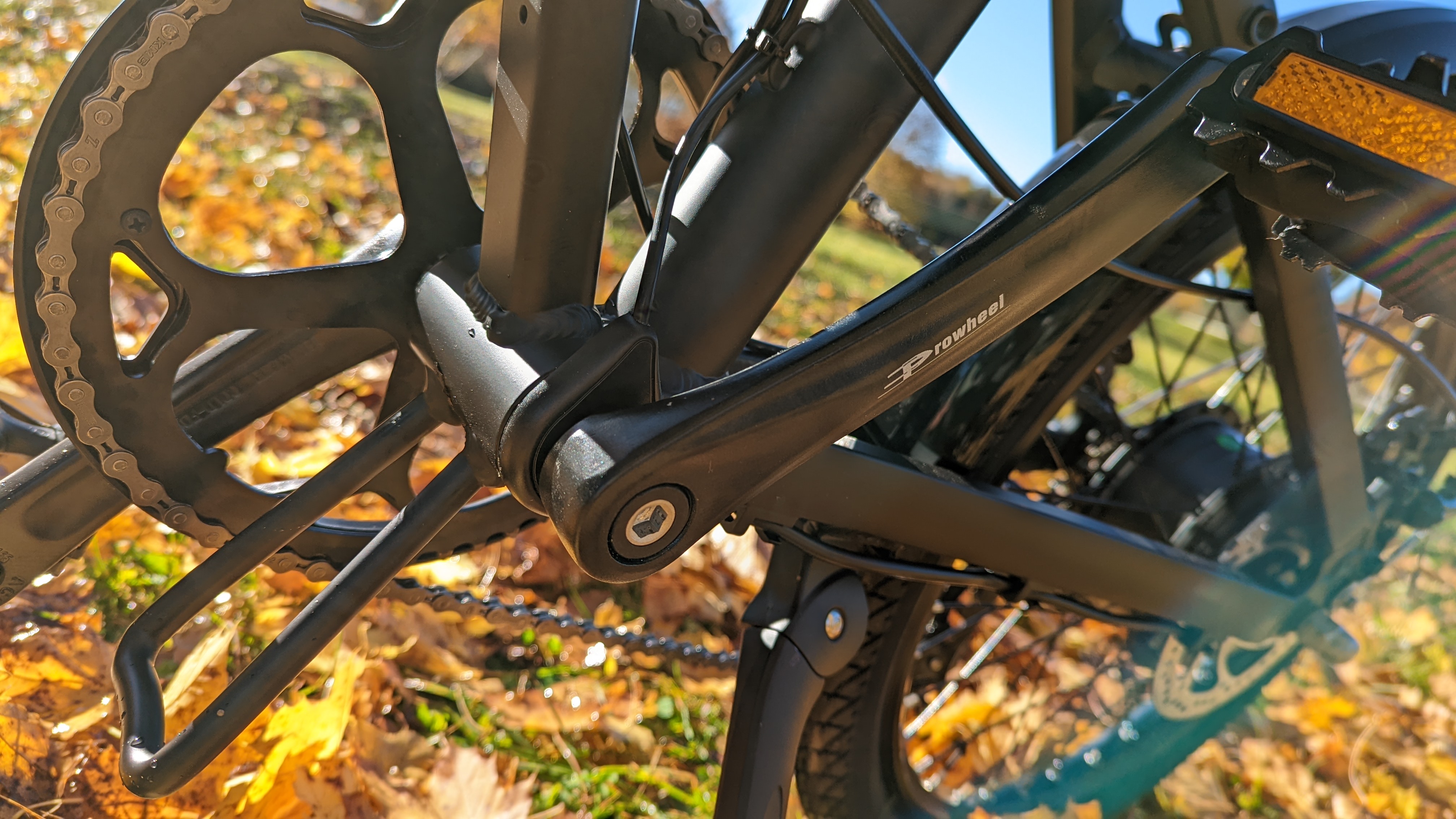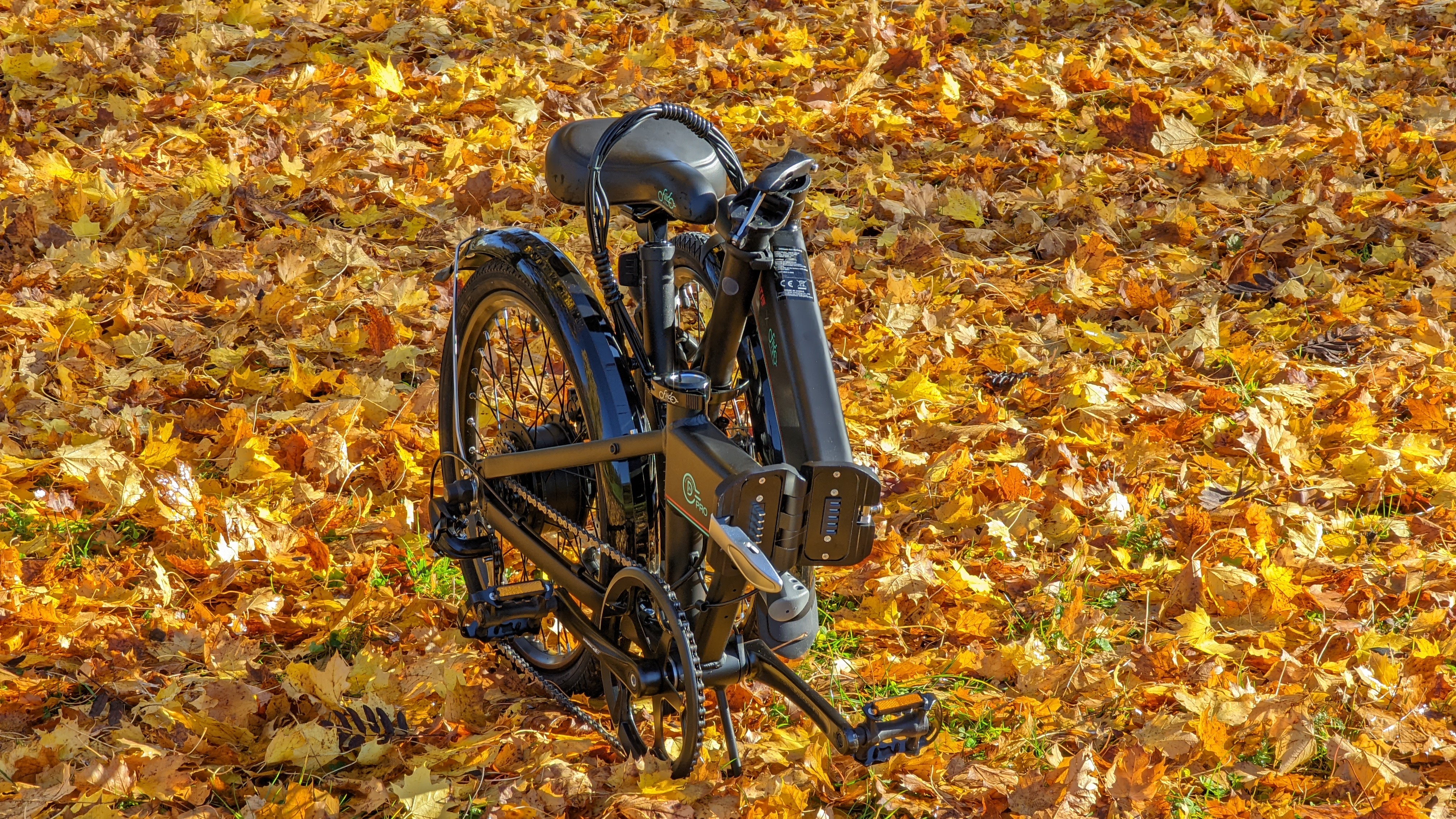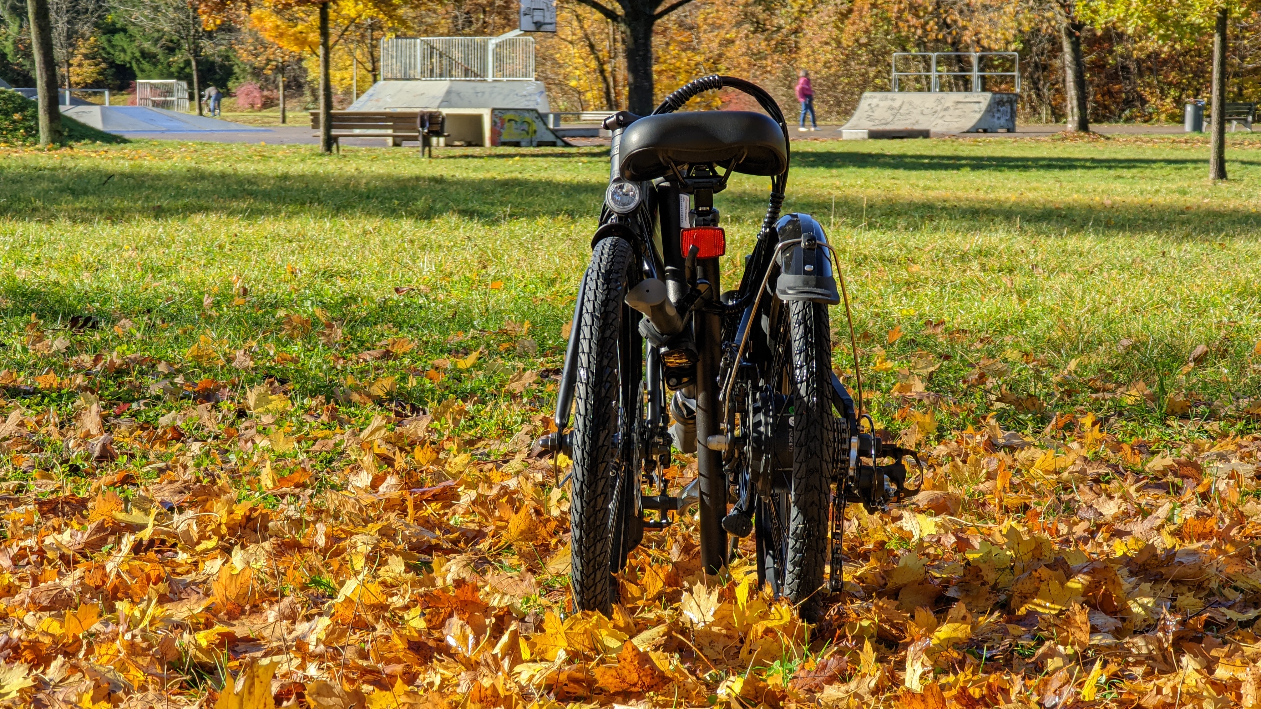 Die Kapazität des Akkus ist von 374 Wattstunden auf 418 Wattstunden gestiegen. Damit erhöht sich auch die maximale Reichweite etwas. Der Hersteller gibt 90 Kilometer im Assistenzmodus an. Wir kommen mit gut 80 Kilogramm Zuladung, 15 Grad Außentemperatur, überwiegend gerader Strecke mit Asphalt, gelegentlichen Stopps und Nutzung des Gashebels mit zusätzlicher Pedalunterstützung auf gut 50 Kilometer. Allerdings beeinflussen derart viele Faktoren die tatsächliche Reichweite, dass dieser Wert nur als Anhaltspunkt dienen kann. Trotzdem ist die Reichweite höher, als man es von einem E-Klapprad in dieser Preiskategorie erwarten darf.