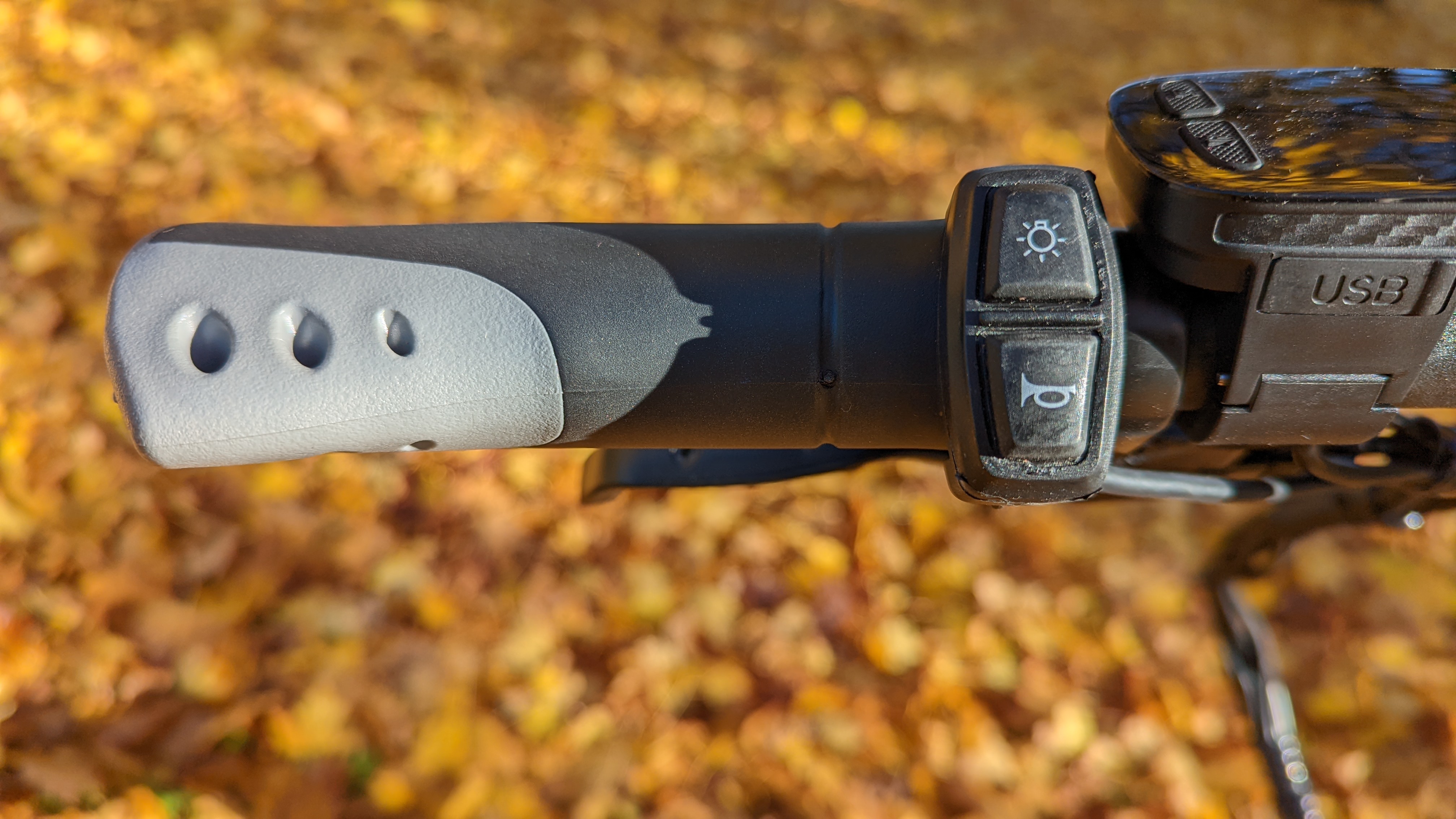 Sehr schade, dass Fiido den Gasring nicht optional hält und auf die Hupe verzichtet. Dann hätte nicht viel dagegengesprochen, das Pedelec auch legal in Deutschland fahren zu können. Das E-Mountainbike Eleglide M1 Plus (Testbericht) für 750 Euro löst das Problem eleganter. Neu ist das zwar gleich große, in seiner Darstellung jedoch schickere und bei hellem Licht besser ablesbare Display. Unter dem Display versteckt sich ein USB-A-Port zum Laden von Smartphones und anderen mobilen Geräten.