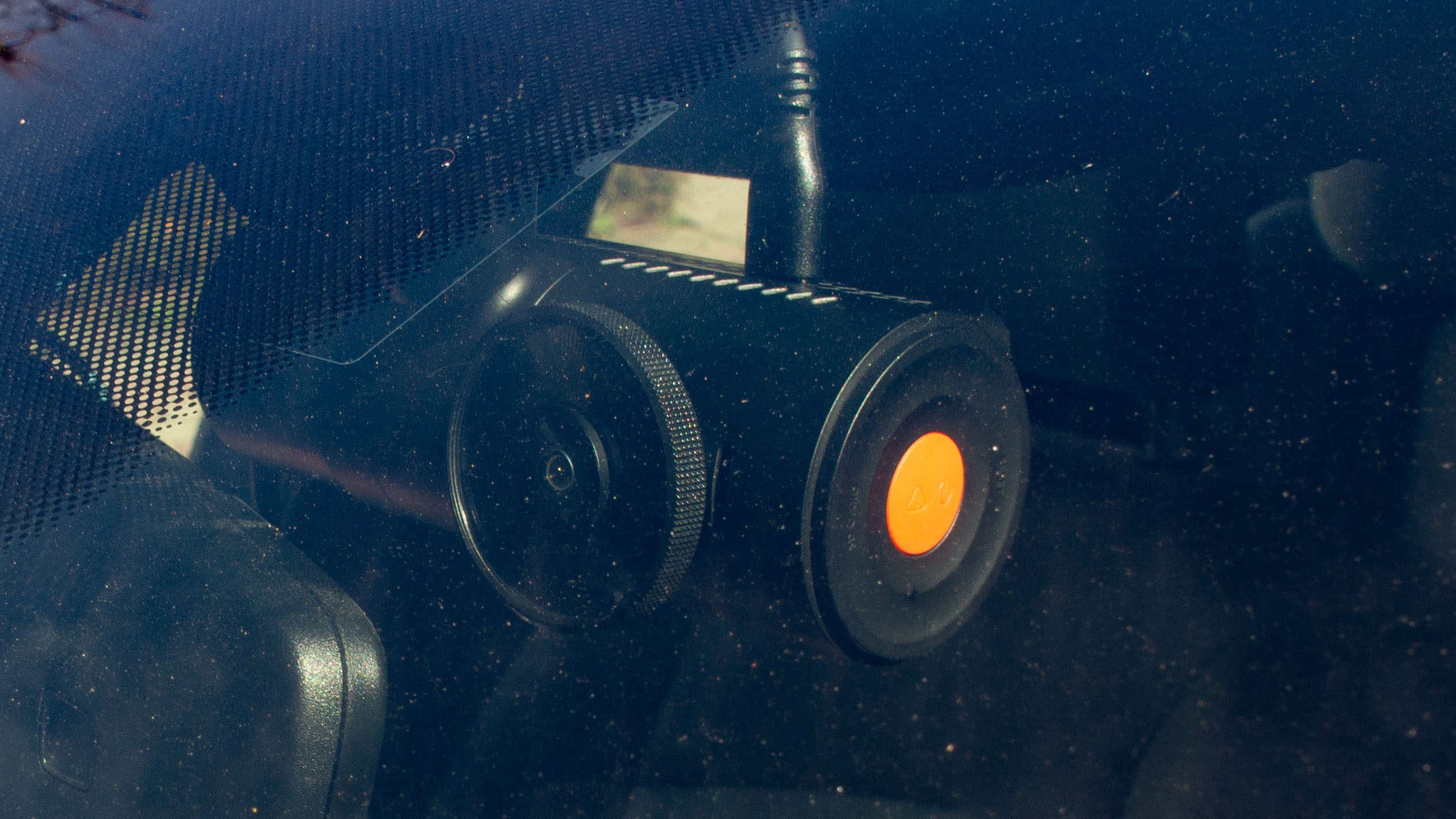Wichtig ist allerdings der richtige Montageort – je nach Auto gibt es diesen auch gar nicht. Vorn sollte man den GPS-Fuß auf der entsprechend mit dunklen Punkten markierten und für Funkwellen durchlässigen Fläche hinter dem Rückspiegel montieren – dann stört die Kamera auch nicht die normale Sicht. Angesichts des Weitwinkelobjektivs kommen dann aber unter Umständen die bewussten dunklen Punkte mit ins Bild. Montiert man den GPS-Fuß dagegen außerhalb der Markierung, ist der GPS-Empfang nicht so gut.