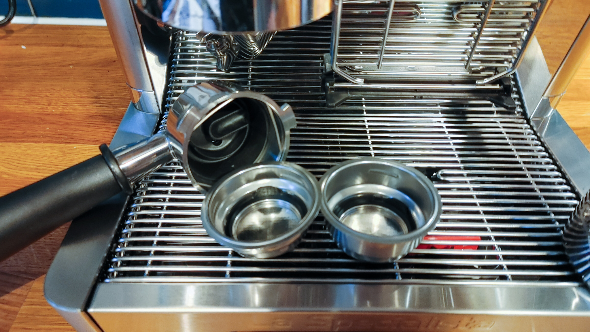 Wer möchte, der kann mit dem zweiten Siebträgereinsatz gleich die doppelte Menge Kaffee oder Espresso ziehen. Dazu muss man nur die “x2”-Taste drücken. Der Umbau des Einsatzes ist einfach, man sollte aber gute Fingernägel oder ein Messer griffbereit haben, um den Einsatz zu wechseln.