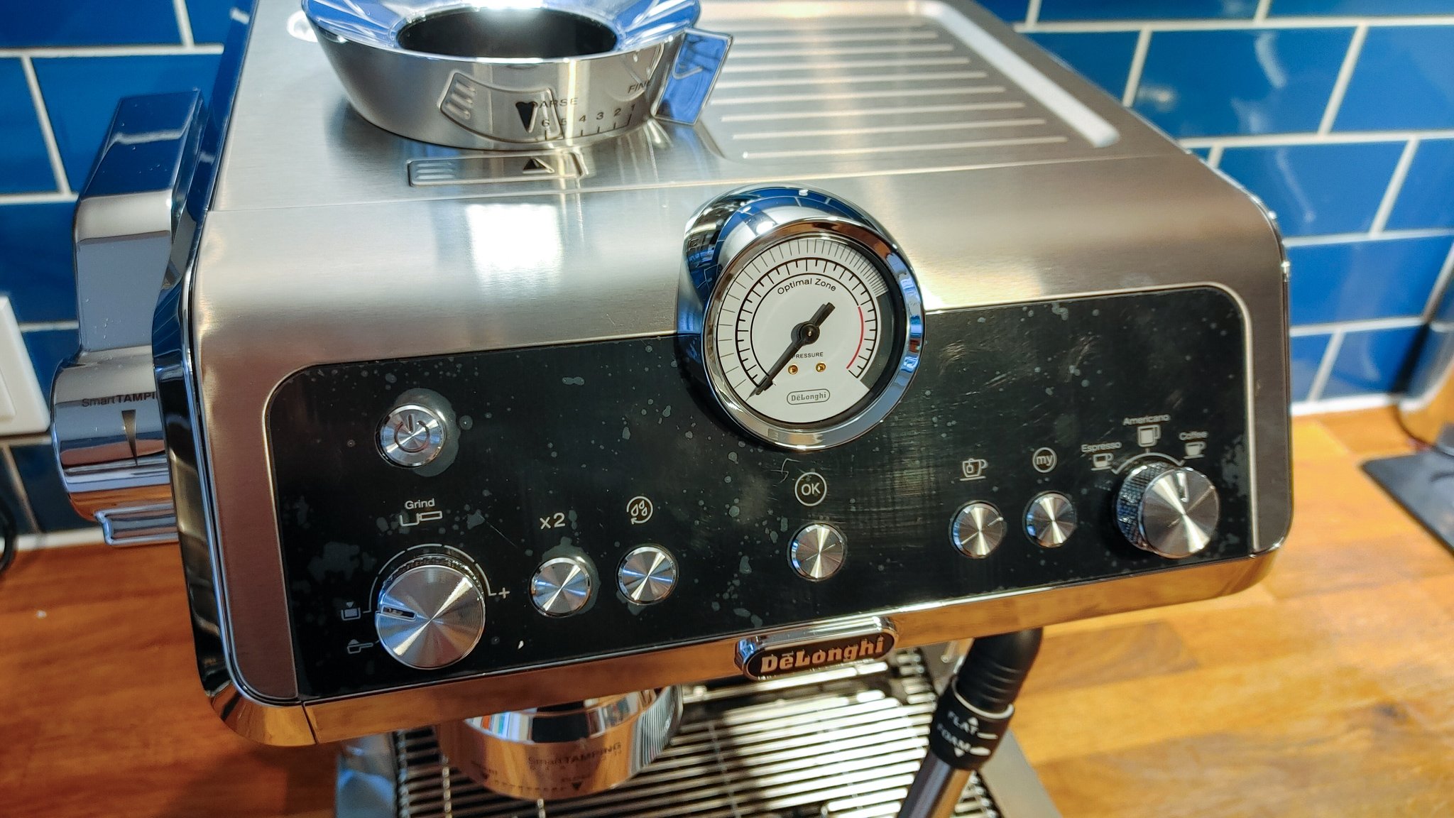 Einen Touchscreen oder ein anderes Infodisplay hat die La Specialista nicht. Stattdessen beleuchtet sie kleine Icons. Diese warnen vor zu wenig Wasser, melden, ob der gemahlene Kaffee bereits angepresst wurde oder ob die Maschine gerade aufwärmt.