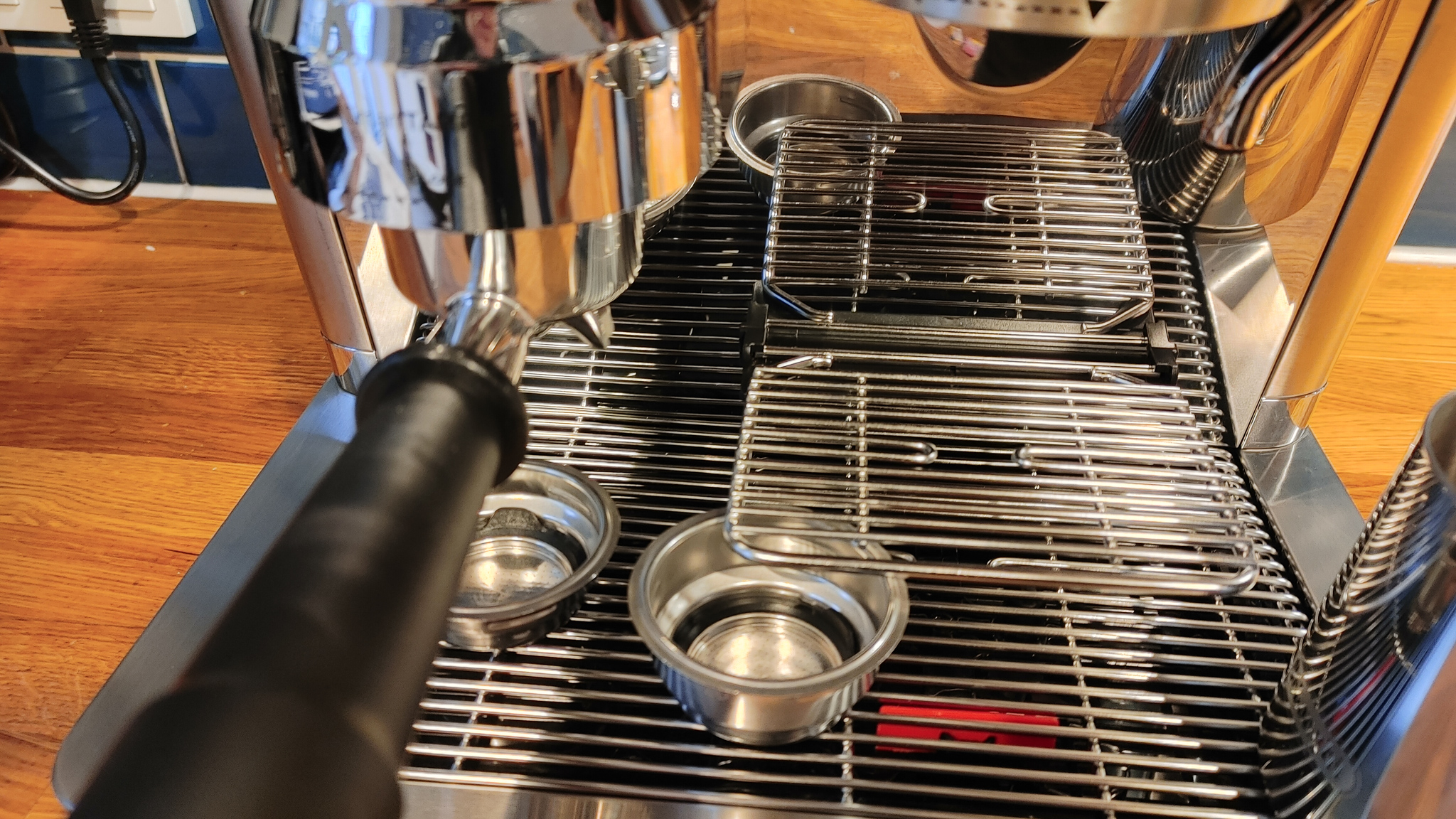 Das Kaffeemehl sollte knapp unterhalb einer Markierung im Siebträger sitzen. Falls zu wenig oder zu viel Kaffee im Träger ist, kann man die Menge mit einem Drehregler anpassen. Tatsächlich klingt das alles aufwendiger als es ist, im Test hatten wir sehr schnell den richtigen Mahlgrad und die korrekte Menge. Damit ist der Aufbau abgeschlossen, er dauert rund 20 bis 30 Minuten. Die längste Zeit nimmt dabei der Spülvorgang in Anspruch.