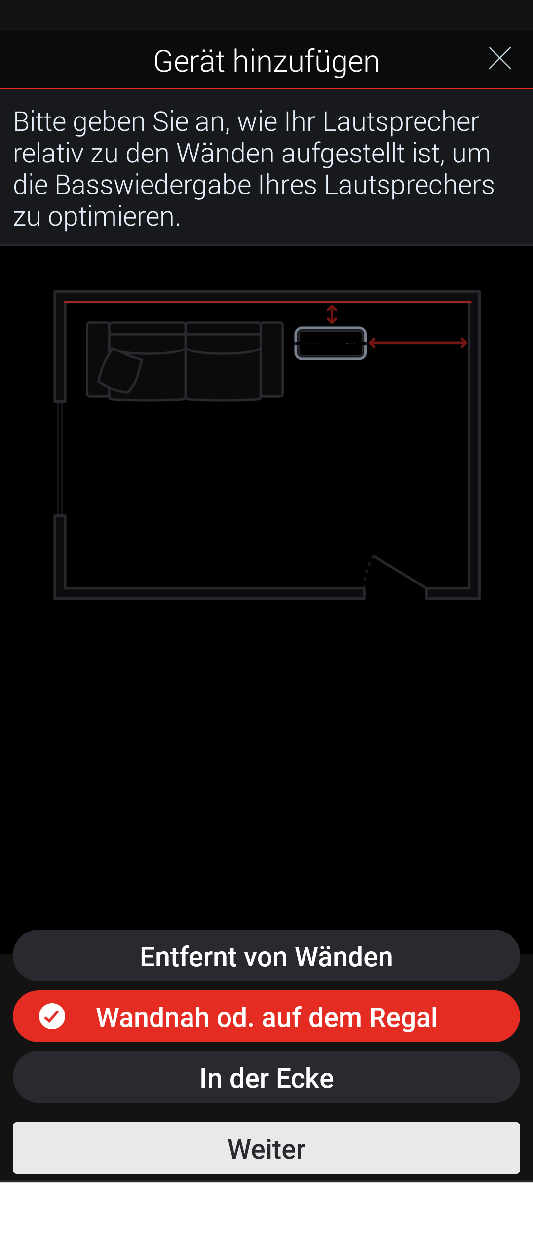 Verbaut sind ein 89-mm-Tieftöner und ein 26-mm-Hochtöner. Der Sound des Denon Home 150 hat keine aufdringlichen Mätzchen nötig: Die bassreflex-typischen Tiefen sind vorhanden, doch erträglich, zumal in der App eingestellt werden kann, ob der Lautsprecher frei stehend platziert ist (also beim Bass voll reinhauen darf), in einem Regal steht (wo dies schon weniger angebracht ist) oder gar in einer Ecke (wo es fürchterlich dröhnt, wenn die Bässe nicht reduziert werden).