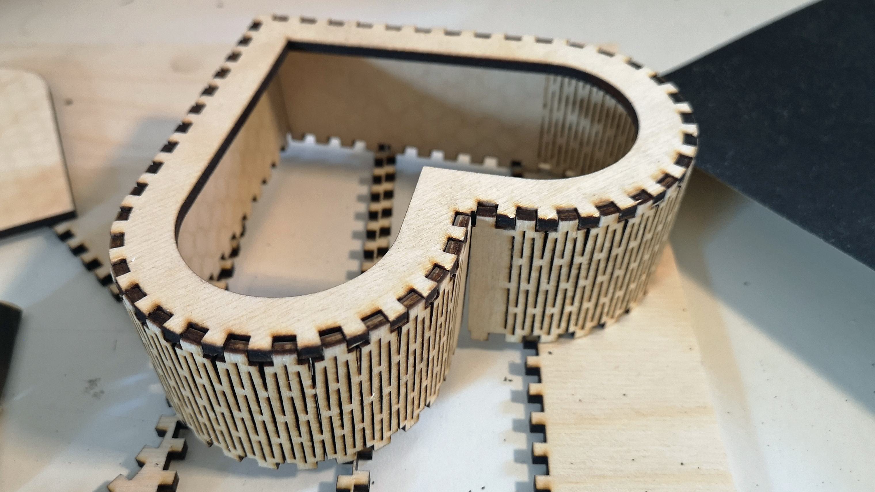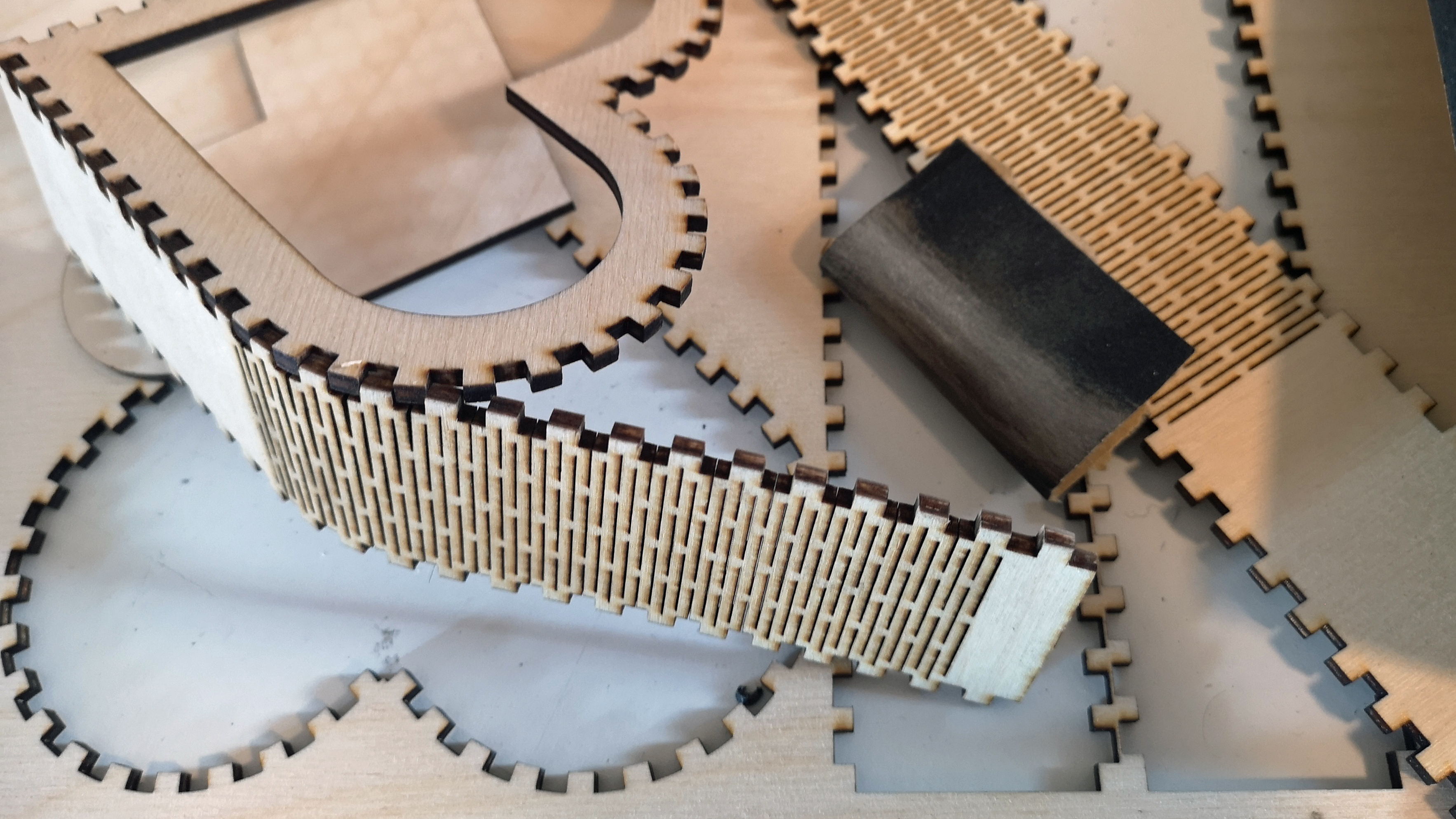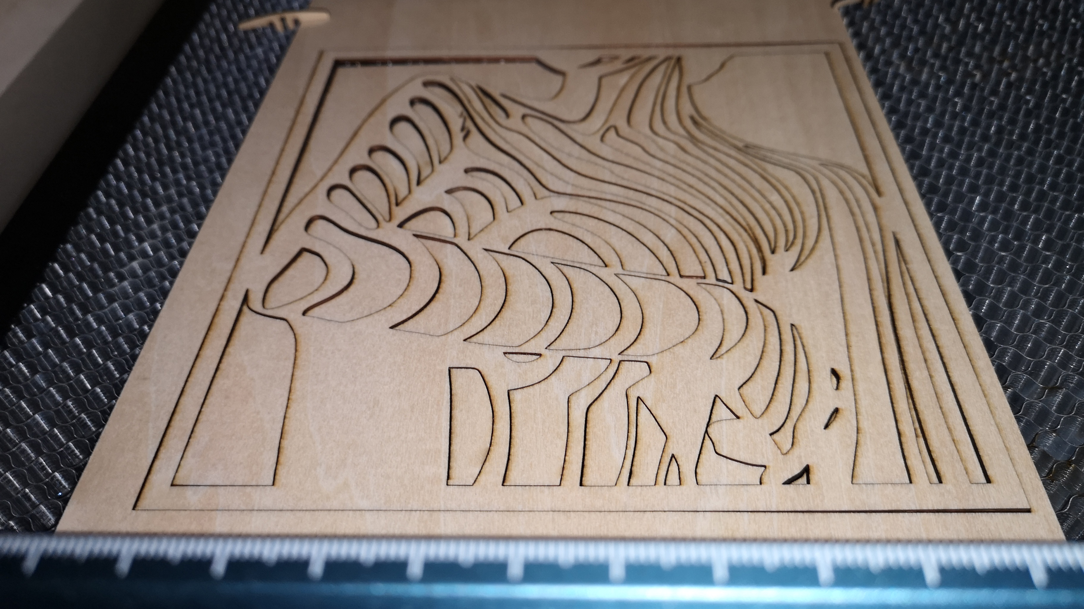 2 mm dickes Bastelholz schneidet der S9 bei 280 bis 300 mm/min und einer Leistung von 80 Prozent in nur einem einzigen Durchgang. Sehr beeindruckend und eine extreme Zeitersparnis gegenüber anderen Modellen. Mit dem Totem S sind hier etwa drei bis fünf Durchgänge notwendig. Mit dem A5 waren sogar zehn und mehr Durchläufe nötig. Das anspruchsvollere 3-mm-Sperrholz schneidet der S9 mit identischen Einstellungen in insgesamt drei Durchgängen. Zwar kommt der Laser stellenweise auch schon nach dem zweiten Durchlauf durch das Material, aber eben nicht durchgehend. Hier könnte man noch mit Tempo und Laserpower herumexperimentieren.