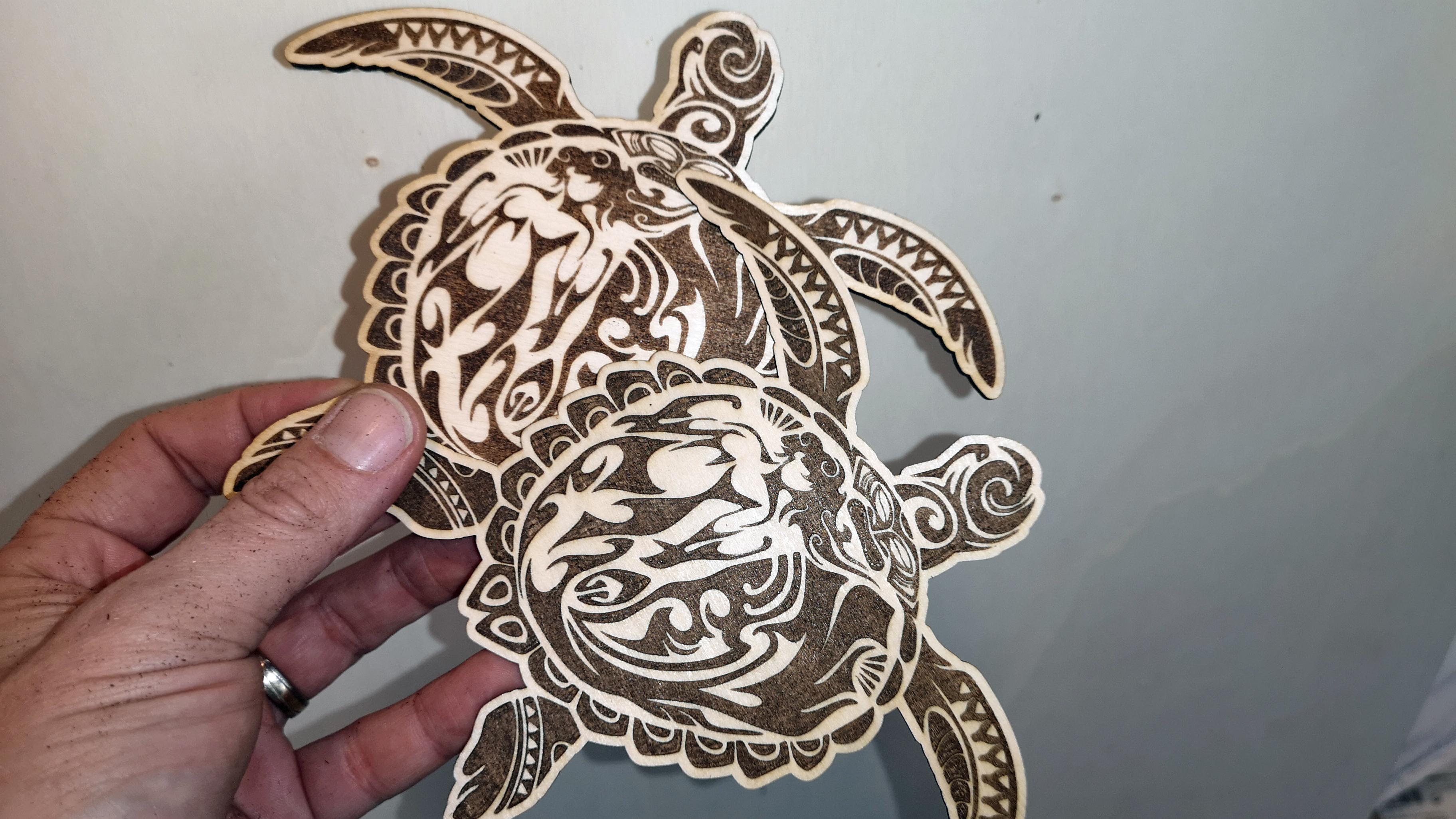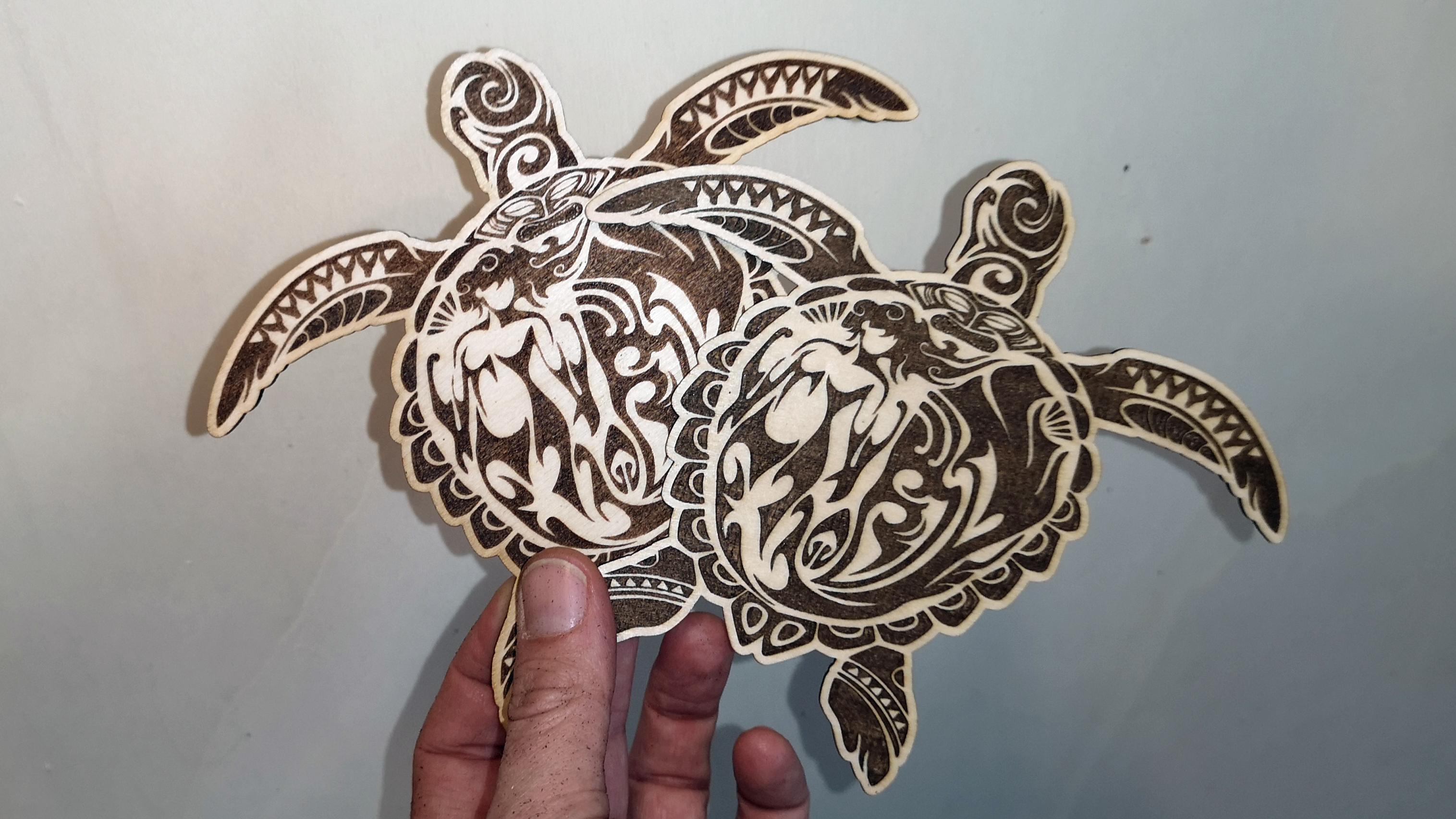 Auf dem benutzten 2 bis 3 mm starken Bastelholz sind Kontraste und Graustufen gut zu erkennen und zu unterscheiden. Wir testen für die Gravur Geschwindigkeiten zwischen 800 und 2000 mm/min und 30 bis 80 Prozent Leistung. Während wir beim Totem S für Grafiken mit 1200 mm/min und 60 Prozent ausgezeichnete Ergebnisse erzielt haben, reichen uns beim S9 2000 mm/min bei 55 Prozent Leistung. Wer es eilig hat, kann noch schneller fahren, aber das geht zulasten der Qualität.
