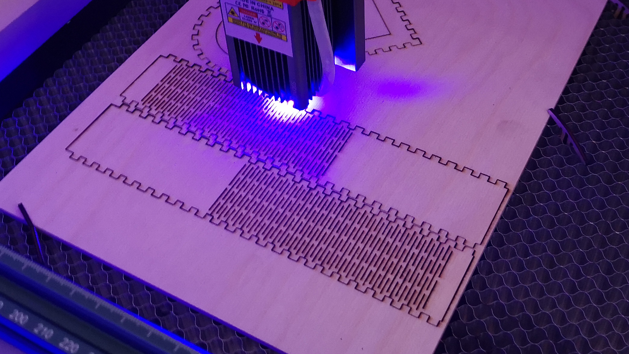 Allerdings sind Laser nicht gerade ungefährlich für die Augen, weswegen man während der Arbeit mit dem Gerät immer eine Schutzbrille tragen sollte. Hochpreisige Modelle verfügen zwar über einen geschlossenen Bauraum, der vor dem Laserlicht schützt – in der Einsteigerklasse mit großer Arbeitsfläche sucht man so ein Gehäuse aber vergeblich. Wir haben uns mittlerweile eine Umbauung inklusive Webcam und Abluftventilator gebastelt und sind damit sehr zufrieden.