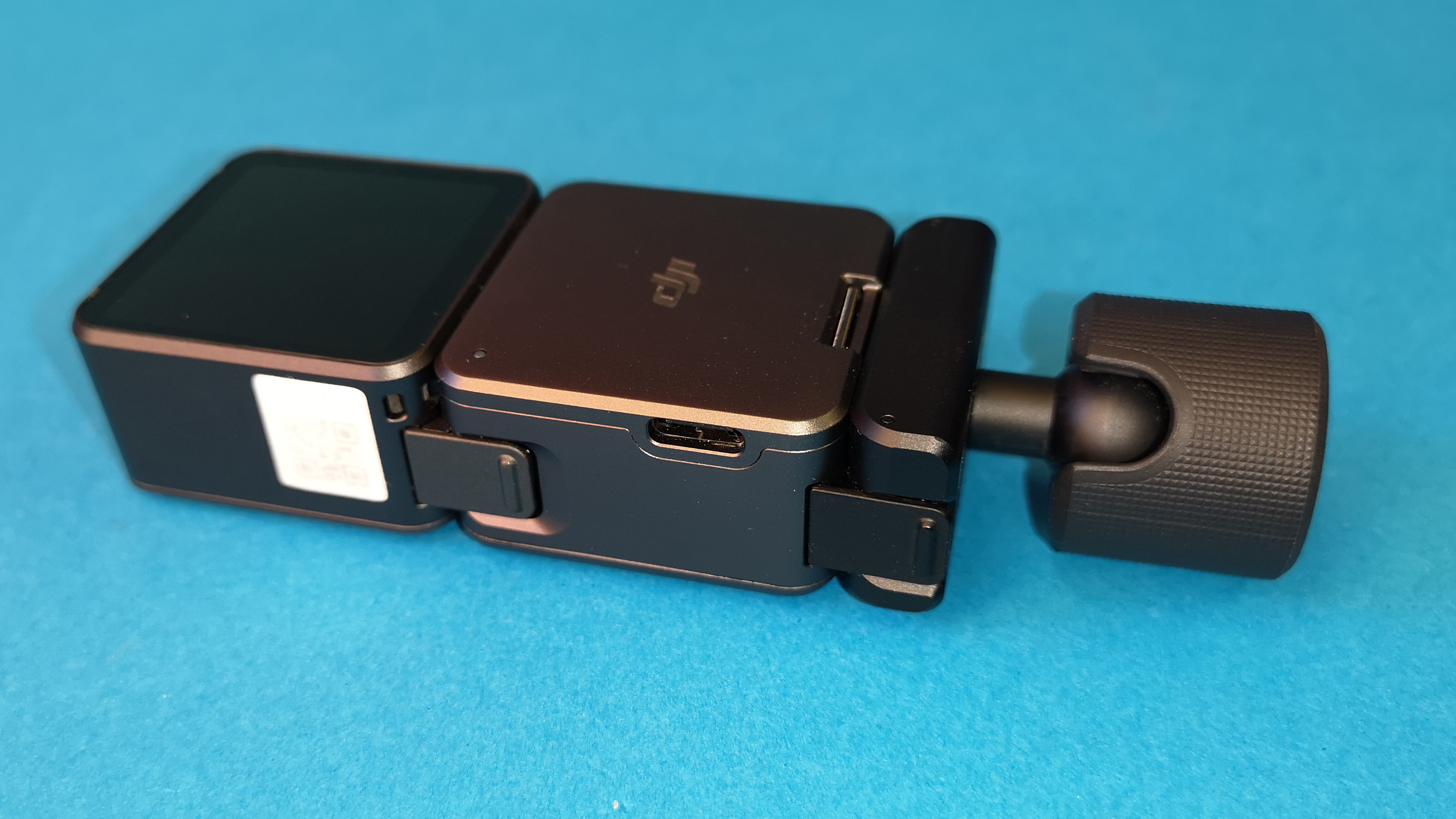 Einen Speicherkarteneinschub oder einen USB-C-Port zum Laden sucht man an der eigentlichen Kamera vergeblich. Hier kommen die Module ins Spiel. Die Action 2 wird jeweils im Bundle mit einem Akku-Modul oder einem Modul mit zusätzlichem Front-Display vertrieben. Diese Aufsätze sind durch eine Kombination aus magnetischer Kontaktfläche und einer Verriegelung mit der eigentlichen Kamera verbunden. Neben dem USB-Ladeport, einem zweiten Auslöse-Taster sowie zusätzlicher Akkukapazität steht ein Micro-SD-Slot zur Verfügung. Dieser erweitert die internen 32 GByte Speicher um bis zu 256 GByte. Dank der geschlossenen Bauform ist die Kamera ohne Modul bis zu einer Tiefe von 10 Meter wasserdicht. Bei anderen Kameras funktioniert das zwar auch, allerdings bleibt durch die dort verwendeten Gummidichtungen immer ein Restrisiko.