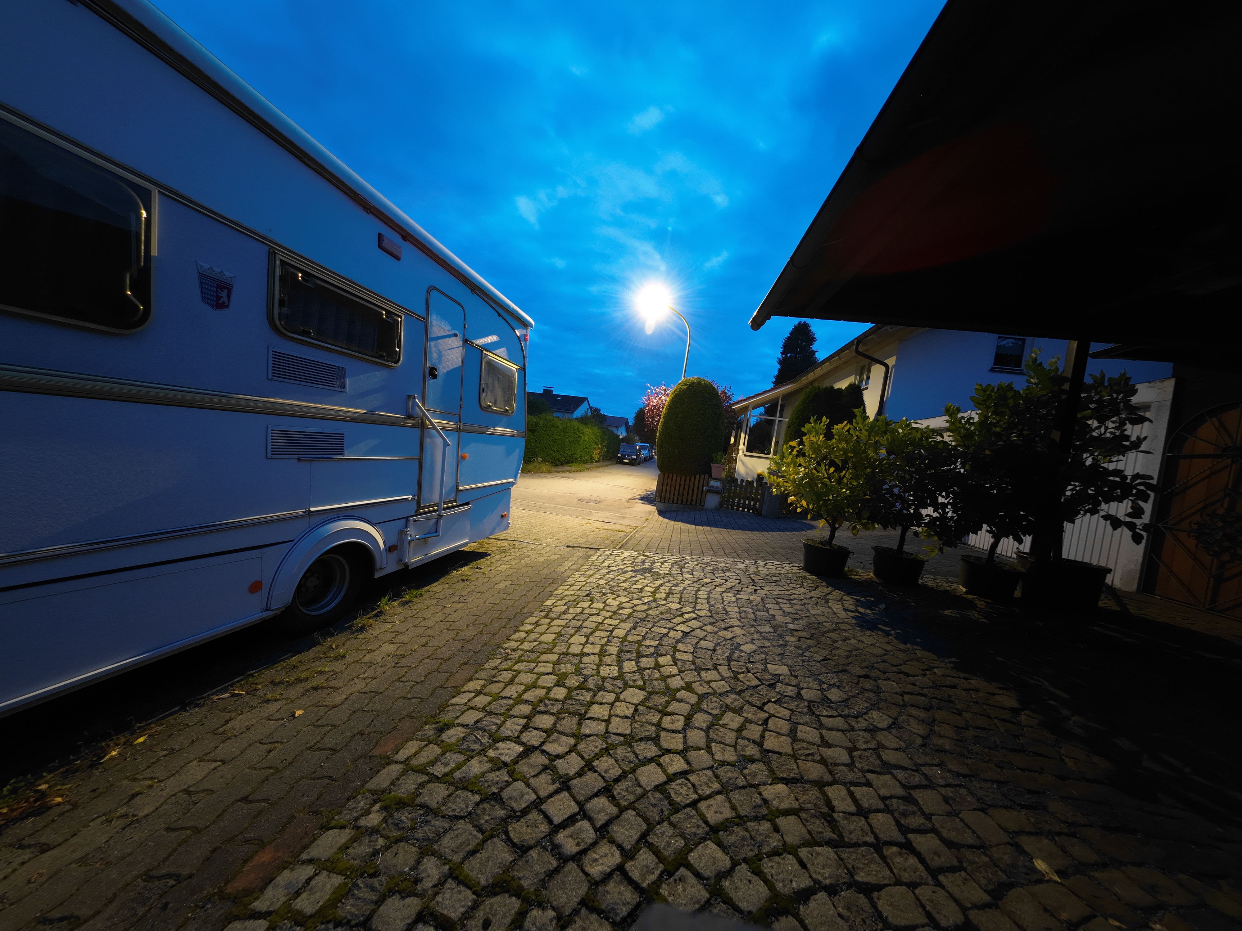 Erst bei wenig Licht kommt der 1/1,7-Zoll-Bildsensor sichtbar an seine Grenzen. Je dunkler die Umgebung wird, desto stärker wird auch das Bildrauschen. Hier schneiden allerdings nur Kameras mit größerem Bildsensor, wie die Insta360 One R mit dem 1-Zoll-Modul (Testbericht), spürbar besser ab.