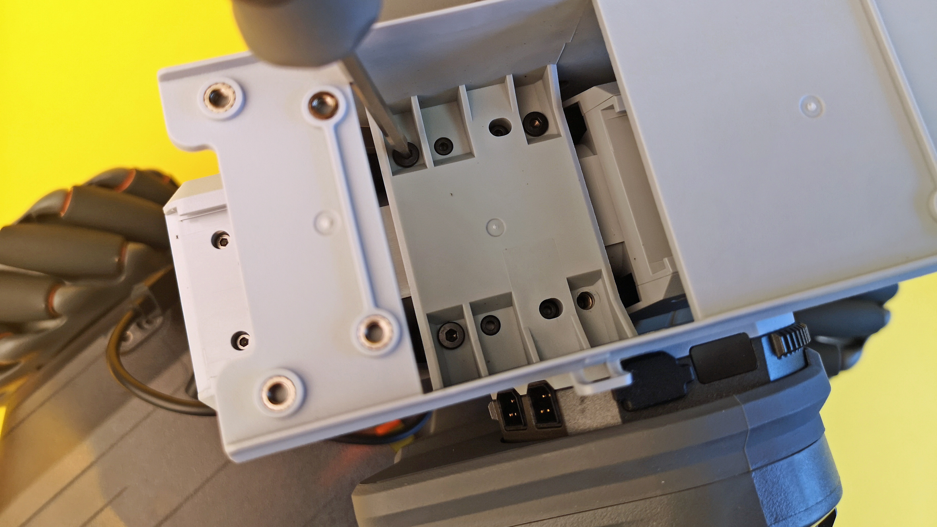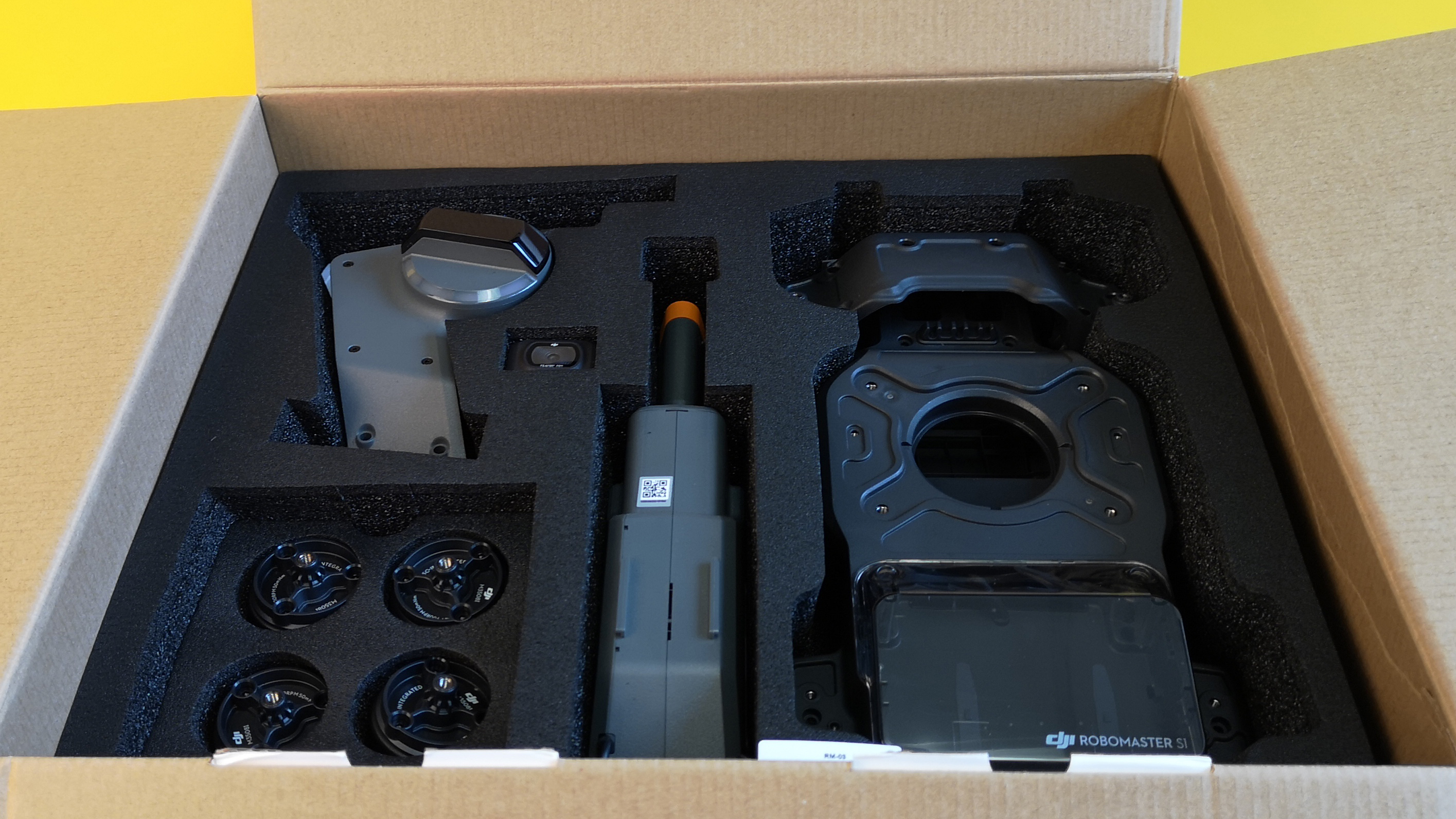 Der Robomaster S1 kommt als Bausatz zum Kunden. Zwar sind einige Teile bereits vormontiert, trotzdem dauert der Zusammenbau gut zwei bis zweieinhalb Stunden. Vorkenntnisse sind nicht nötig, bei dem Roboter handelt es sich um ein komfortables Plug&Play-Sytem in Baukastenmanier. Die Kabel werden ausnahmslos gesteckt und müssen nicht verlötet werden. Außer dem beigelegten Schraubendreher ist keinerlei zusätzliches Werkzeug notwendig.