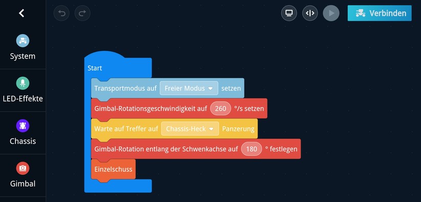 Gerade am Anfang ist erstmal der Solo-Modus interessant. Hier kann der Nutzer seinen Robomaster einfach durch die Gegend fahren und sich mit der Steuerung vertraut machen.