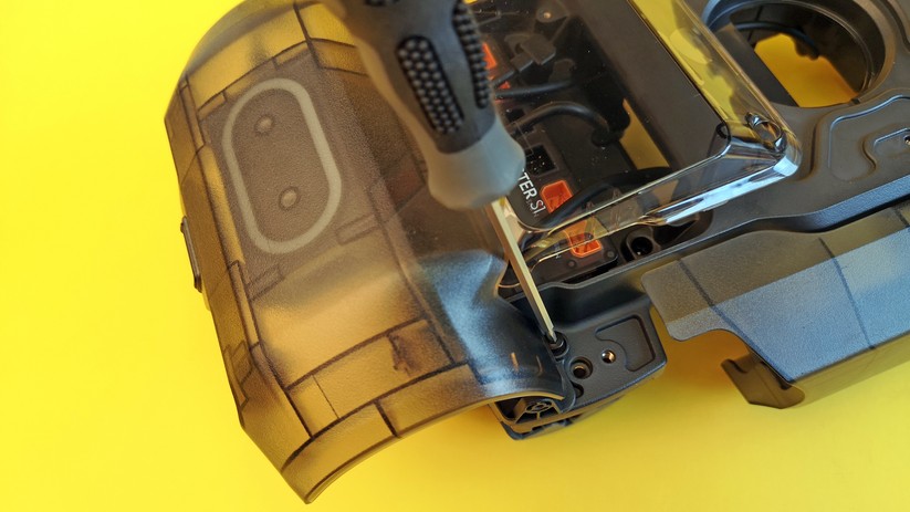 Deutlich spannender ist der Kampf-Modi, für den man allerdings mindestens zwei der nicht ganz billigen Roboter braucht. Hier bekämpfen sich die Piloten gegenseitig. Das funktioniert entweder rein virtuell mittels Infrarot-Kanone oder durchaus realistisch mit kleinen runden Gel-Kügelchen. Diese muss man allerdings rechtzeitig selbst herstellen. Dazu wird das im Lieferumfang enthaltene Granulat in Wasser geschüttet, wo sich die winzigen Kügelchen dann langsam vollsaugen. Die so entstehenden Gel-Kugeln sind elastisch und zerplatzen beim Aufprall. Falls sie heil bleiben, springen sie in Flummi-Manier kreuz und quer durch die Gegend. Gefechte mit den Kugeln sind ein riesen Spaß und hinterlassen eine noch viel größere Sauerei. Wir empfehlen in geschlossenen Räumen deshalb die Nutzung der Infrarot-Kanone. Zum Schutz des Piloten packt DJI eine Schutzbrille in den Lieferumfang. Zusätzlich wirft der S1standardmäßig keine Gelkugeln aus, sobald der Turm über zehn Grad nach oben gerichtet ist – Schüsse auf Augenhöhe sind so nicht möglich; allerdings lässt sich diese Einschränkung aushebeln. Statt Kämpfe um Lebenspunkte sind auch Rennen untereinander möglich.