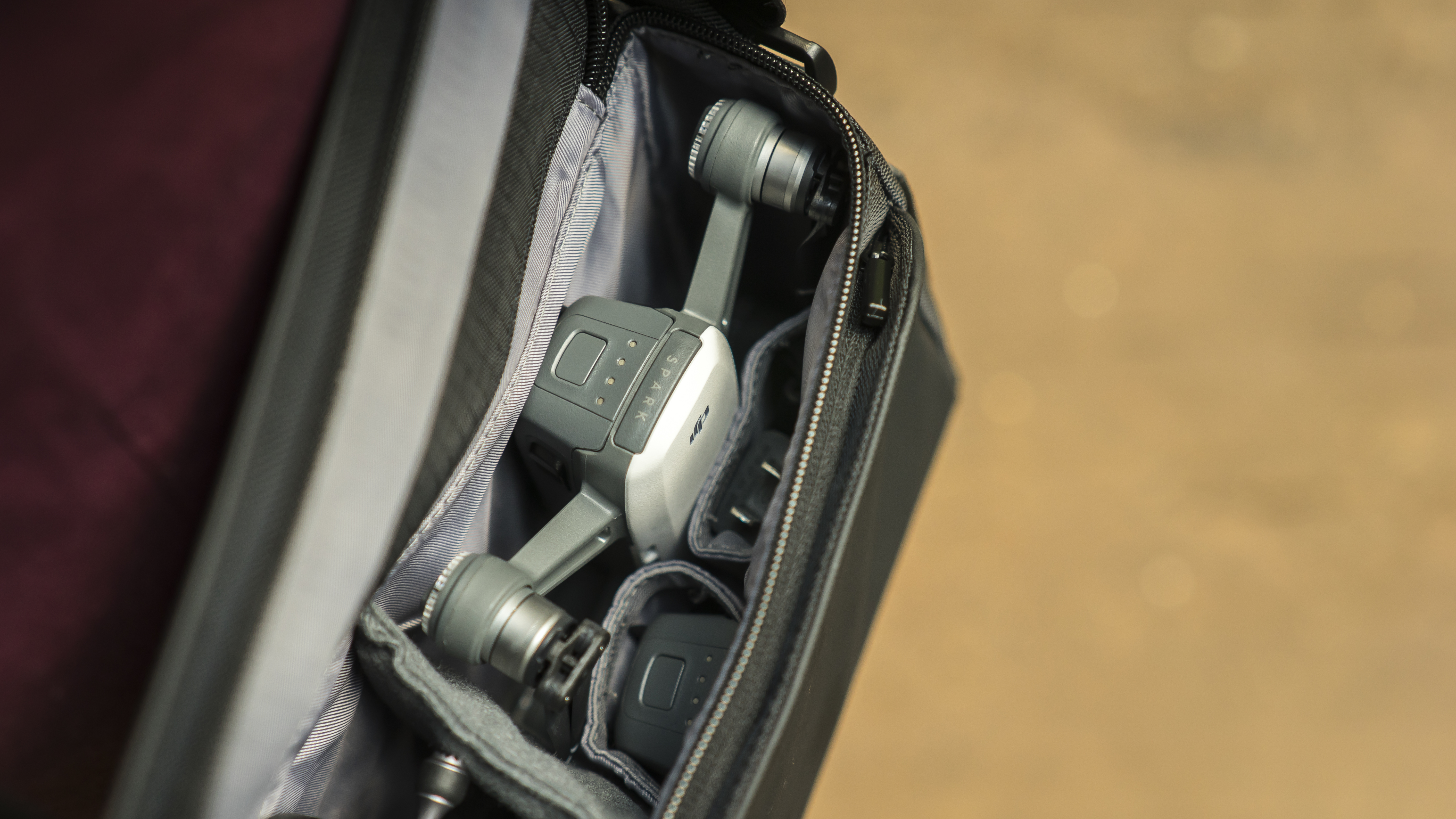 „Ergreif’ den Moment“ – mit diesem Motto bewirbt der chinesische Hersteller seine Spark. Die Größe des Fluggerätes spielt eine große Rolle: Man soll sie überall mitnehmen und fliegen können. Tatsächlich ist das Transportieren der Spark keine schwierige Angelegenheit. Ob im Rucksack oder im Reisekoffer, der Fußabdruck der 300 Gramm leichten Spark macht sich kaum bemerkbar.