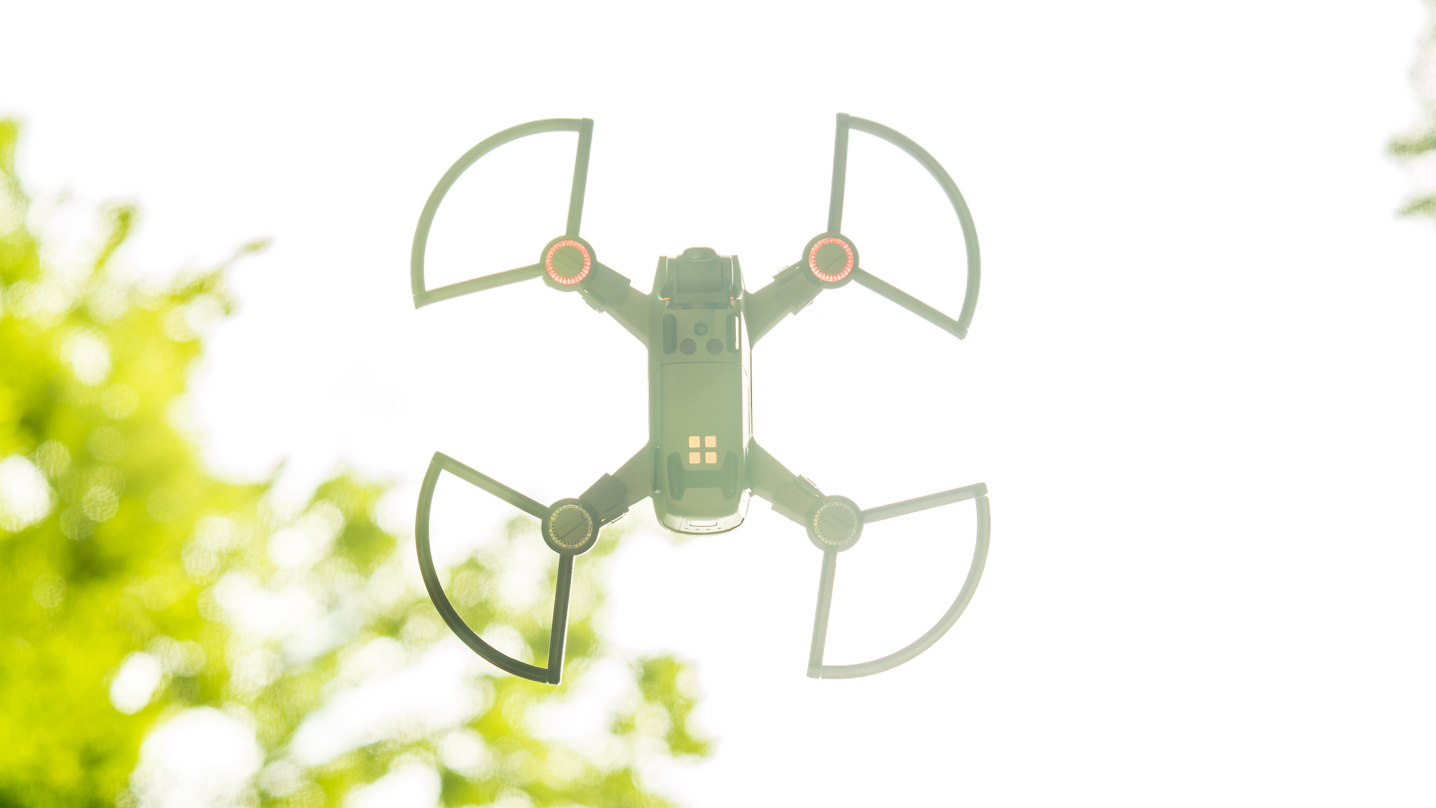 Praktisch für Erstlinge: Für den Schutz Rotoren liegen sogenannte Propeller Guards (kurz Propguards) bei. Sie werden mit einem Klammersystem an die vier Arme der Drohne montiert und tragen zur Flugsicherheit bei. So kommen einzelne Äste nicht so schnell in die Propeller und führen zum Absturz – und bei einer Kollision brechen die Rotoren nicht sofort.