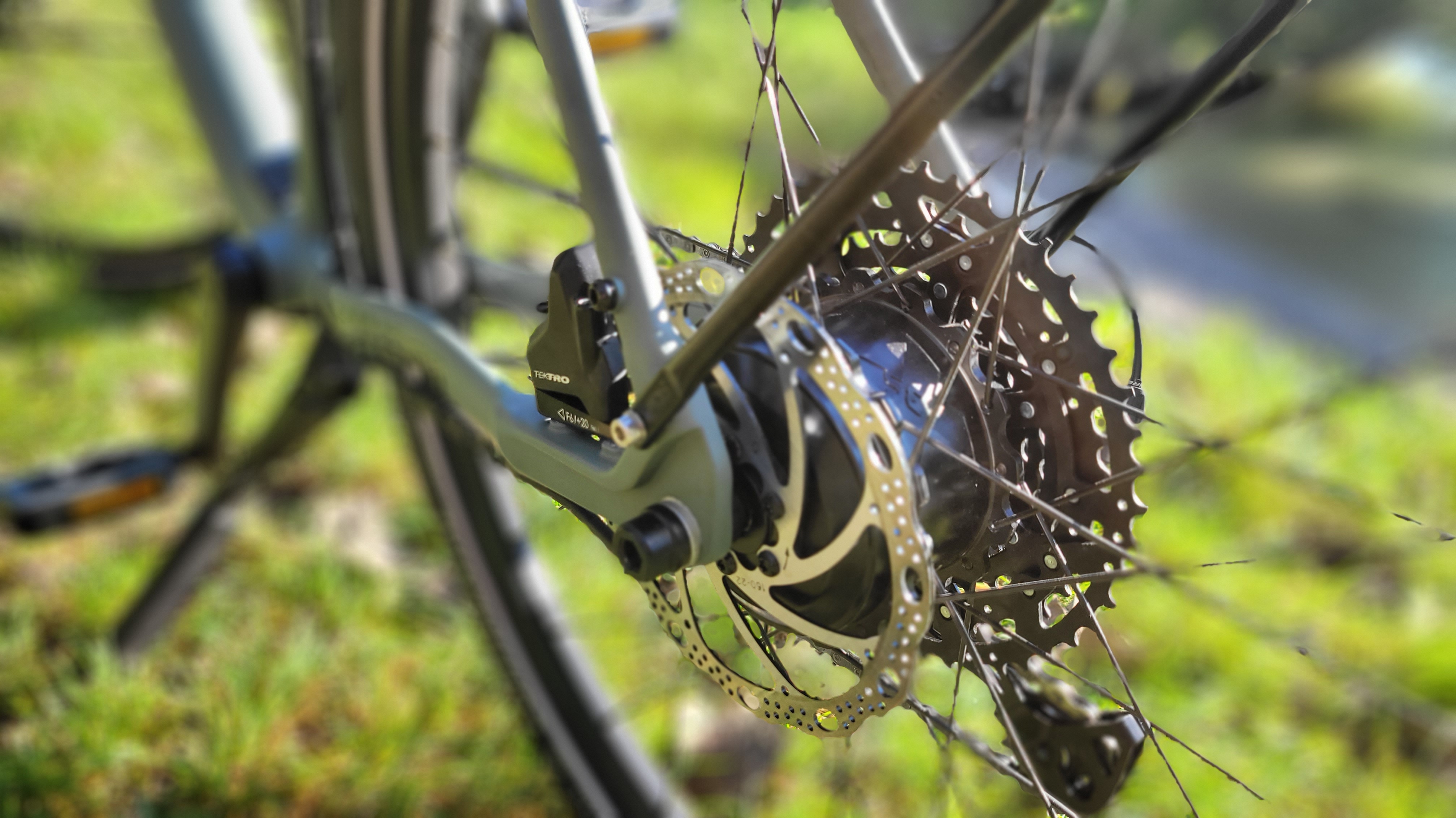 Die hydraulischen Tektro-Scheibenbremsen mit 160 mm großen Bremsscheiben vorn und hinten geben kein Anlass zu Kritik. Sie packen gut zu und lassen sich gut dosieren. Auch die Deore-Gangschaltung von Shimano funktioniert im Test einwandfrei. Die schwarzen Schutzbleche passen nicht nur zum Design des E-Bikes, sondern erfüllen auch ihren Zweck und verhindern bei feuchter Fahrbahnunterlage, dass der Fahrer nass wird. Praktisch ist auch der Gepäckträger SKS Urban GT, den man mit bis zu 15 kg schwerem Gepäck in Form von klickbaren Satteltaschen beladen kann.