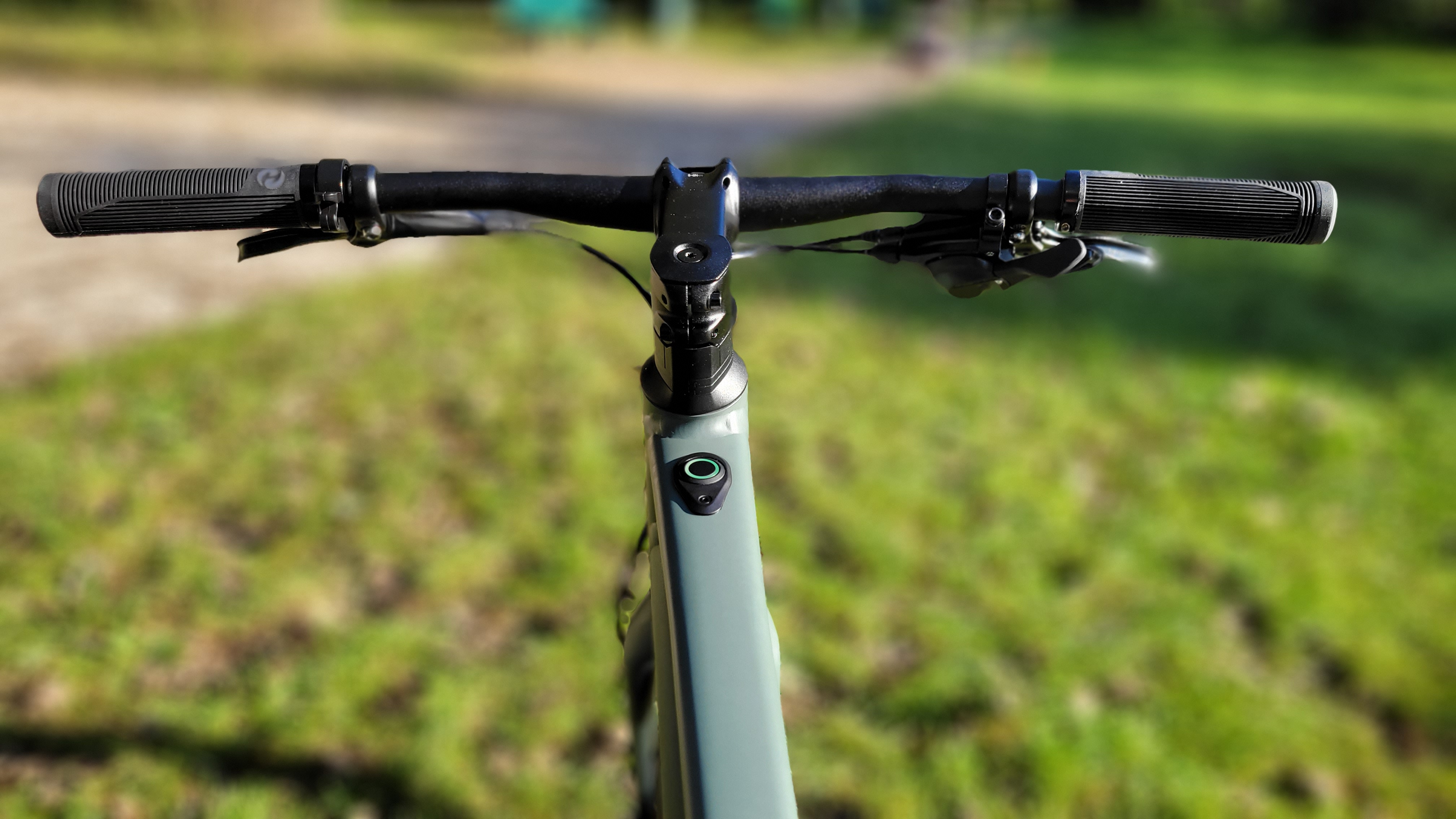 Eingeschaltet wird das Pedelec über das im vorderen Bereich der oberen Querstange integrierten Bedienknopf Iwoc, der wie ein Home-Button aussieht. Auch die Lichtanlage schaltet man damit ein und auch die verschiedenen Unterstützungsstufen des X35-Motors von Mahle wählt man damit aus (Weiß = keine Unterstützung, Stufe 1 = Grün, Stufe 2 = Orange). Je nachdem, welche davon gewählt ist, blinkt ein um den Bedienknopf verlaufender LED-Streifen in unterschiedlichen Farben kurz auf, bevor er dauerhaft leuchtend den Batteriestatus in unterschiedlichen Farben anzeigt (Weiß mehr als 75 Prozent, Grün 50 bis 75 Prozent, Rot weniger als 25 Prozent). Sobald der Ladezustand der Batterie unter 15 Prozent fällt, beginnt die der LED-Ring rot zu blinken.