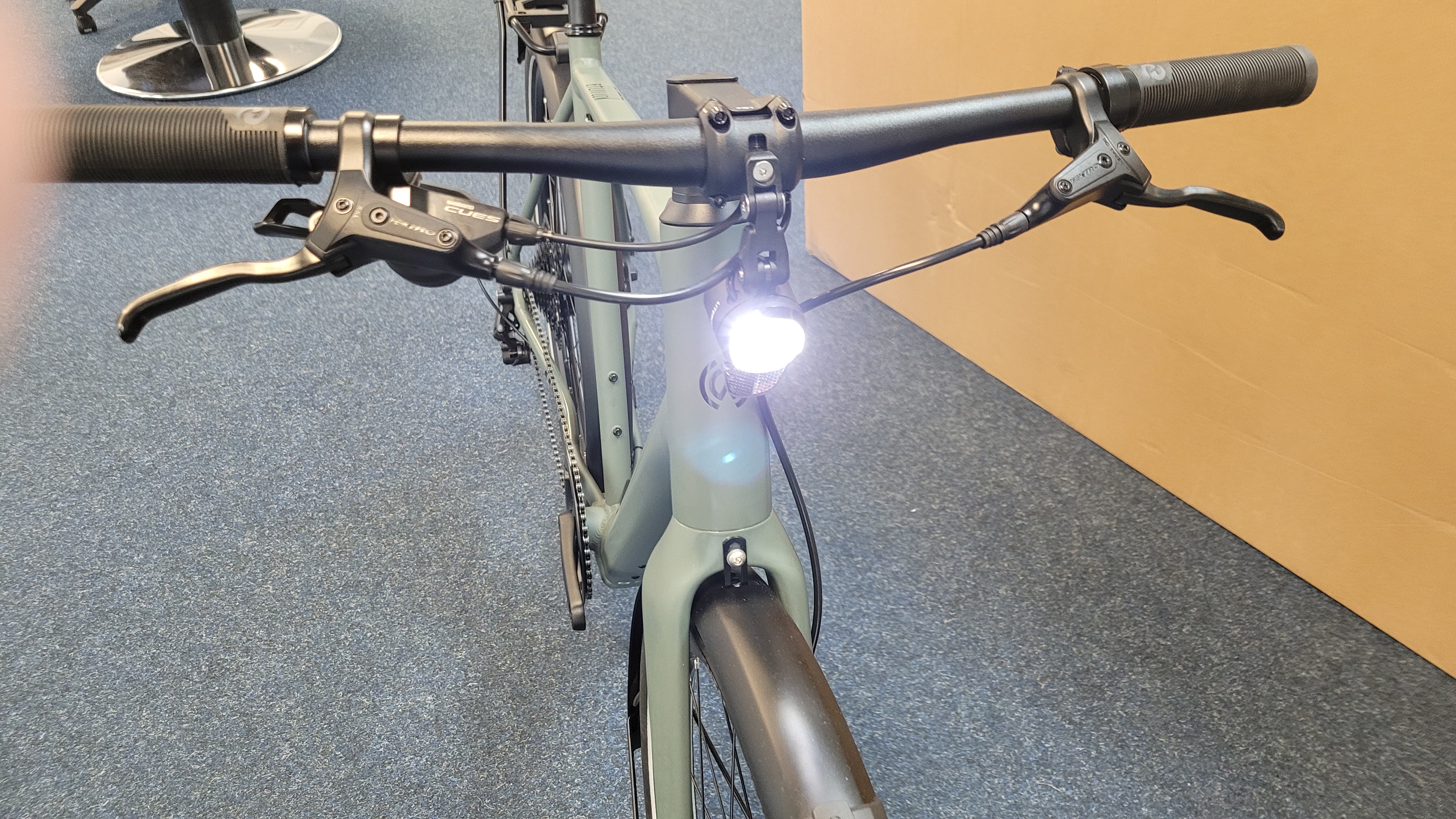 Wie bei den zuletzt getesteten Pedelecs Diamant 365 (Testbericht) und Cannondale Canvas Neo 1 (Testbericht) ist der Montageaufwand im Unterschied zu preiswerten China-E-Bikes nicht sehr groß. Das Winora E-Flitzer kommt in einem großen Karton und ist fast vollständig montiert. Man muss lediglich Lenker sowie Vorderlicht ausrichten und festziehen und die Pedale anschrauben. Zuvor entfernen wir allerdings einige zum Schutz vor Transportschäden angebrachten und von Klebestreifen gehaltenen Plastikpolsterungen.