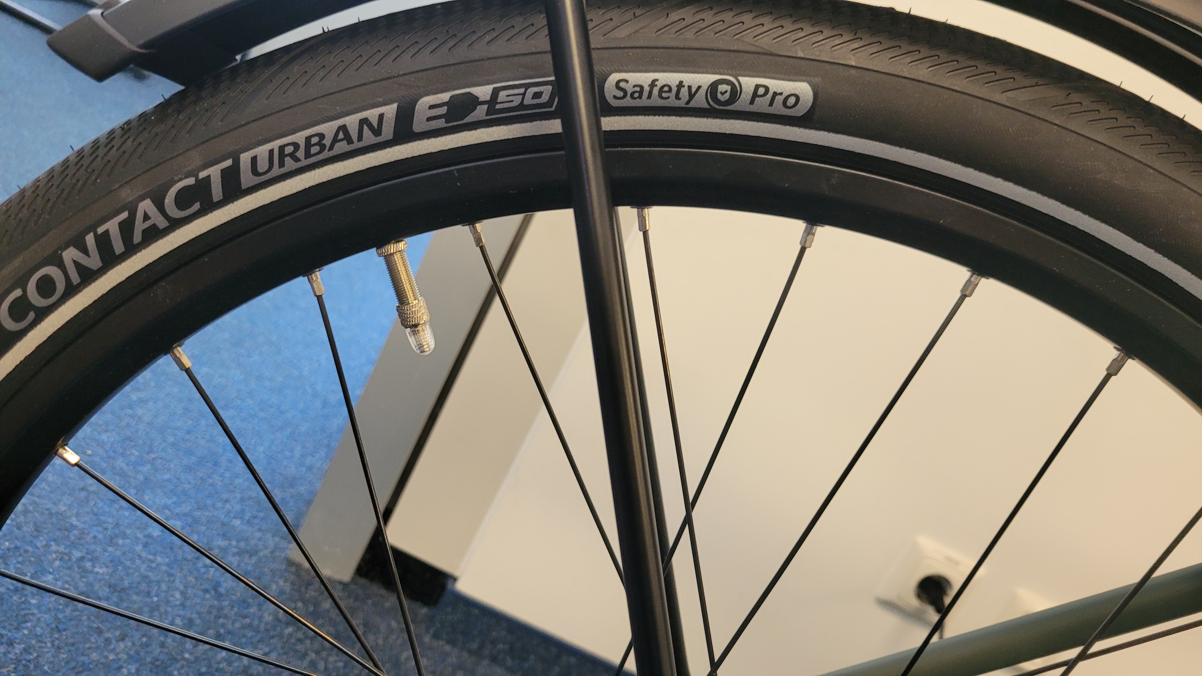 Aufgrund der starren Gabel spürt man Unebenheiten auf der Fahrbahn deutlicher als bei Rädern mit einem gefederten Vorderrad. Anderseits vermittelt das Winora E-Flitzer mit seinen 27,5 Zoll großen und 5 cm breiten Reifen (Continental Contact Urban Sfaety Pro 50) einen direkten Straßenkontakt. Es fährt sich in nahezu jeder Situation sicher. Für eine bessere Federung kann man den Reifendruck etwas unter die maximal möglichen 73 psi (5 Bar) einstellen. Im Zusammenspiel mit dem gepolsterten Selle-Royal-Sattel Vivo Ergo bietet das Winora E-Flitzer einen guten Fahrkomfort. Auch Ausflüge abseits der Straße durch den Park auf Schotterwegen sind für das Urban E-Bike kein Problem.