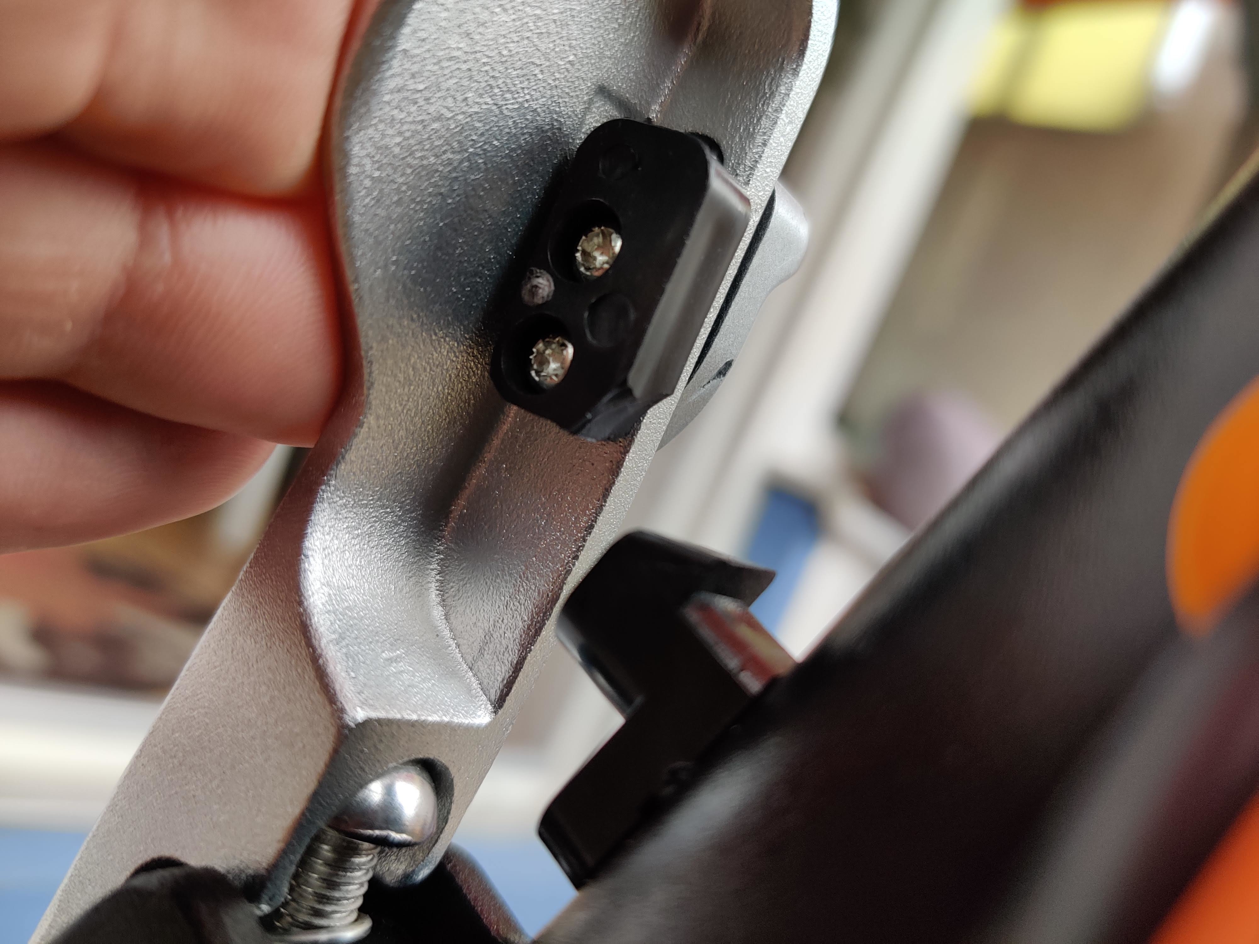 In unserem Fall war die dicke Sicherungsschraube nicht richtig justiert. Dadurch wirkten zu starke Kräfte auf den Kunststoffhaken, der nach etwa 25 km abbrach. Das kann richtig gefährlich werden, wenn bei 20 km/h auf einmal die Lenkstange umklappt.