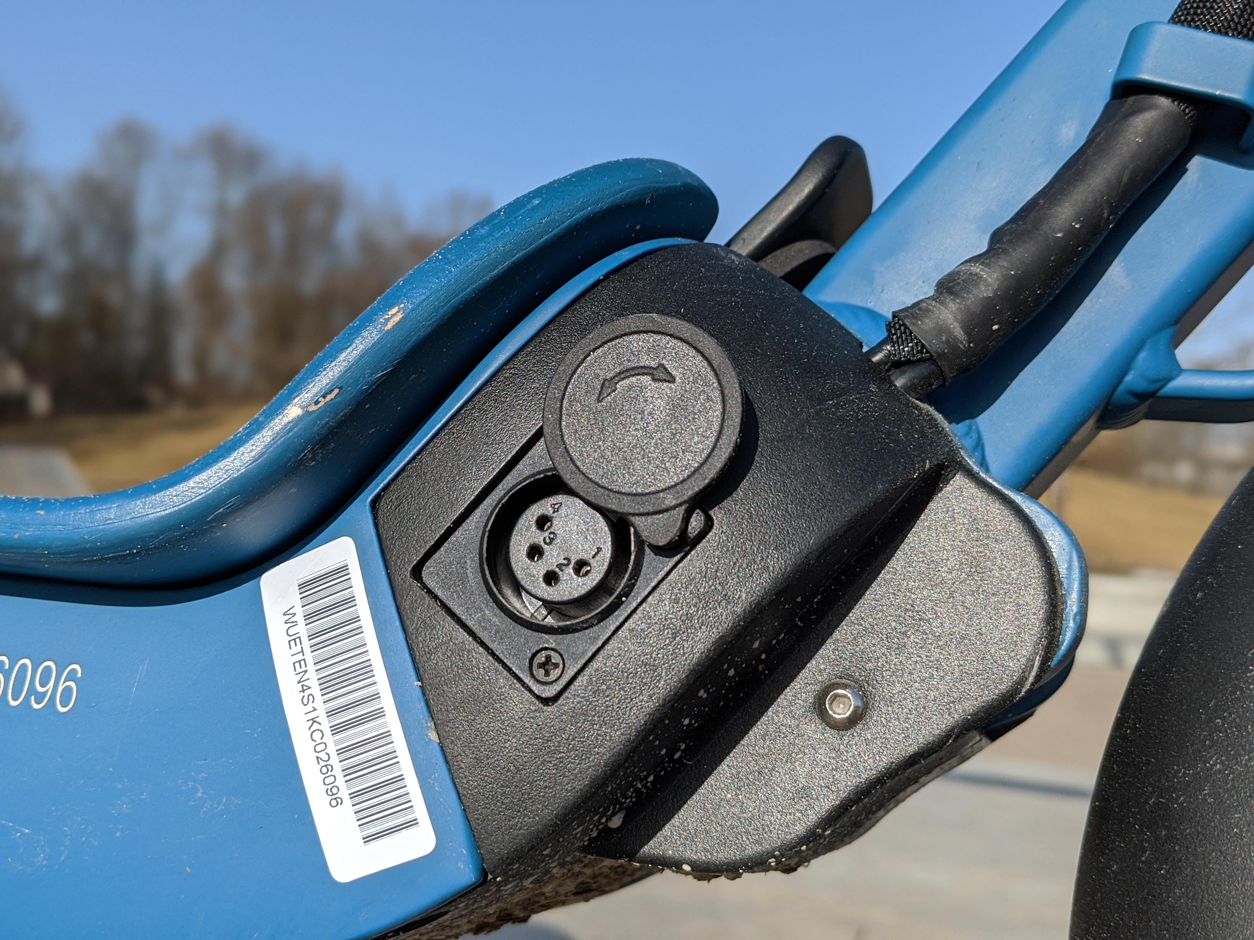 Der Egret Ten V4 ist ein Akkumonster! Sein 48-Volt-Li-Ion-Akku ist mit einer Kapazität von 11,6 Ah und der daraus resultierenden Leistung von 557 Wh sogar größer als der 461-Wh-Akku des Mytier E-Scooter (Testbericht) . Er kommt bei uns im Test mit knapp 30 Kilometer deutlich weiter als der generalüberholte Tier. Das liegt unter anderem am sehr geringen Rollwiderstand des Egret Ten V4.