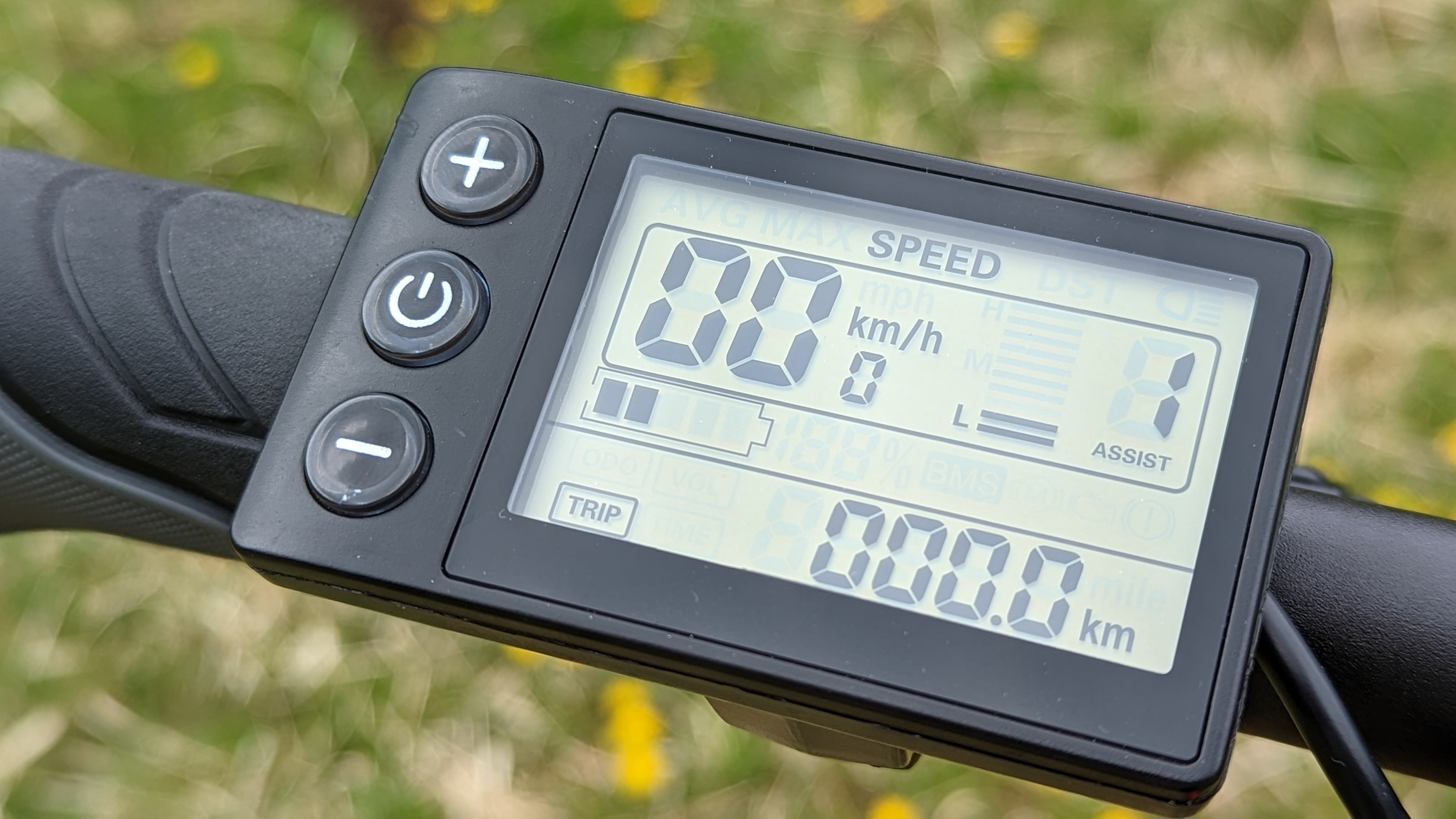 Der Bordcomputer hat drei Tasten und zeigt auf seinem gut ablesbaren Display neben der aktuellen Geschwindigkeit außerdem den Akkustand in fünf Balken, die gewählte Unterstützungsstufe, die Gesamtkilometer, die Trip-Kilometer und einen Trip-Timer an. Einen USB-A-Port zum Laden mobiler Geräte gibt es nicht.